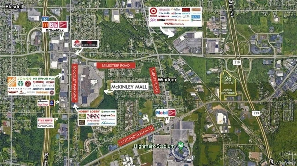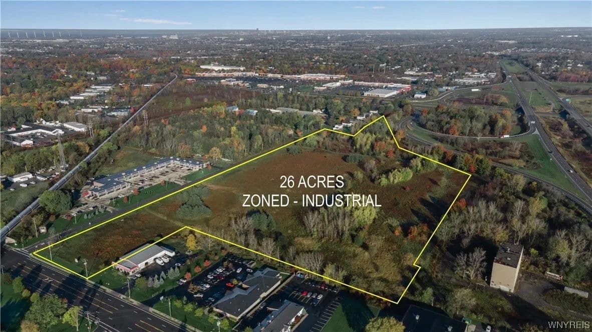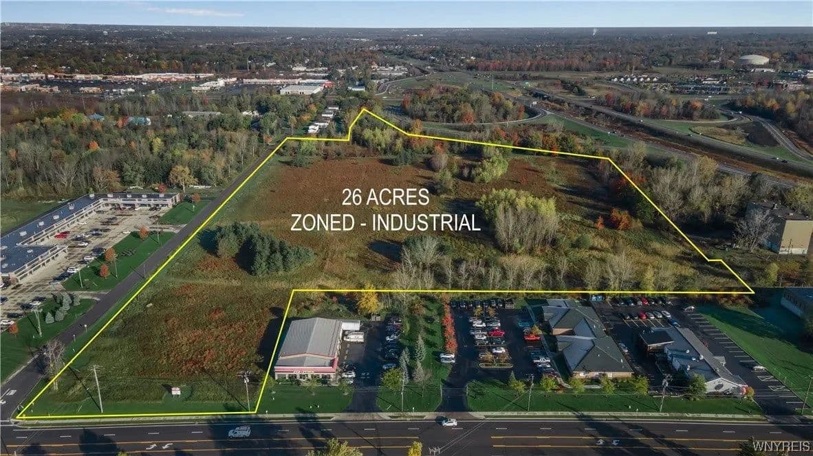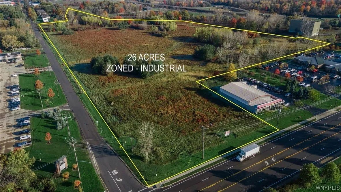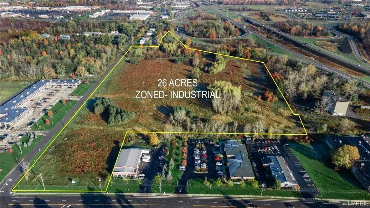 Phenomenal location on US-20 in Orchard Park, New York, also known as Southwestern Blvd- the busiest thoroughfare in the area. Zoned industrial, walking distance to Highmark Stadium, home of the Buffalo Bills. Endless opportunities. Wetlands are present, with Sackett vs. EPA, most of the land may become buildable. Willing to divide into smaller parcels.