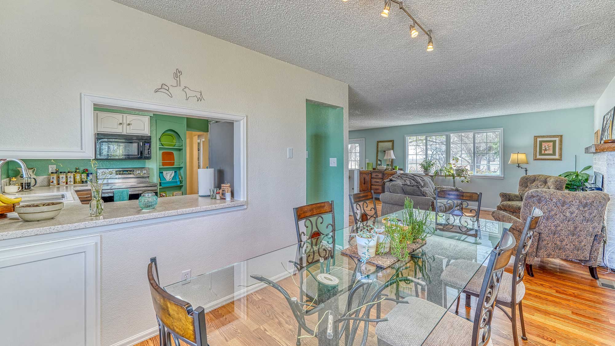 Continuing up the lane, the primary residence and a guest house perch atop, offering unobstructed views stretching from Pikes Peak to the Sangre de Cristo Mountains and the Spanish Peaks. The main ranch house embodies the rustic charm of a traditional western home, boasting four bedrooms and two bathrooms. Inside, a welcoming living area with a brick fireplace and expansive windows framing majestic sunsets invite relaxation. The park-like surroundings of the main house foster a serene ambiance, ideal for communing with nature.