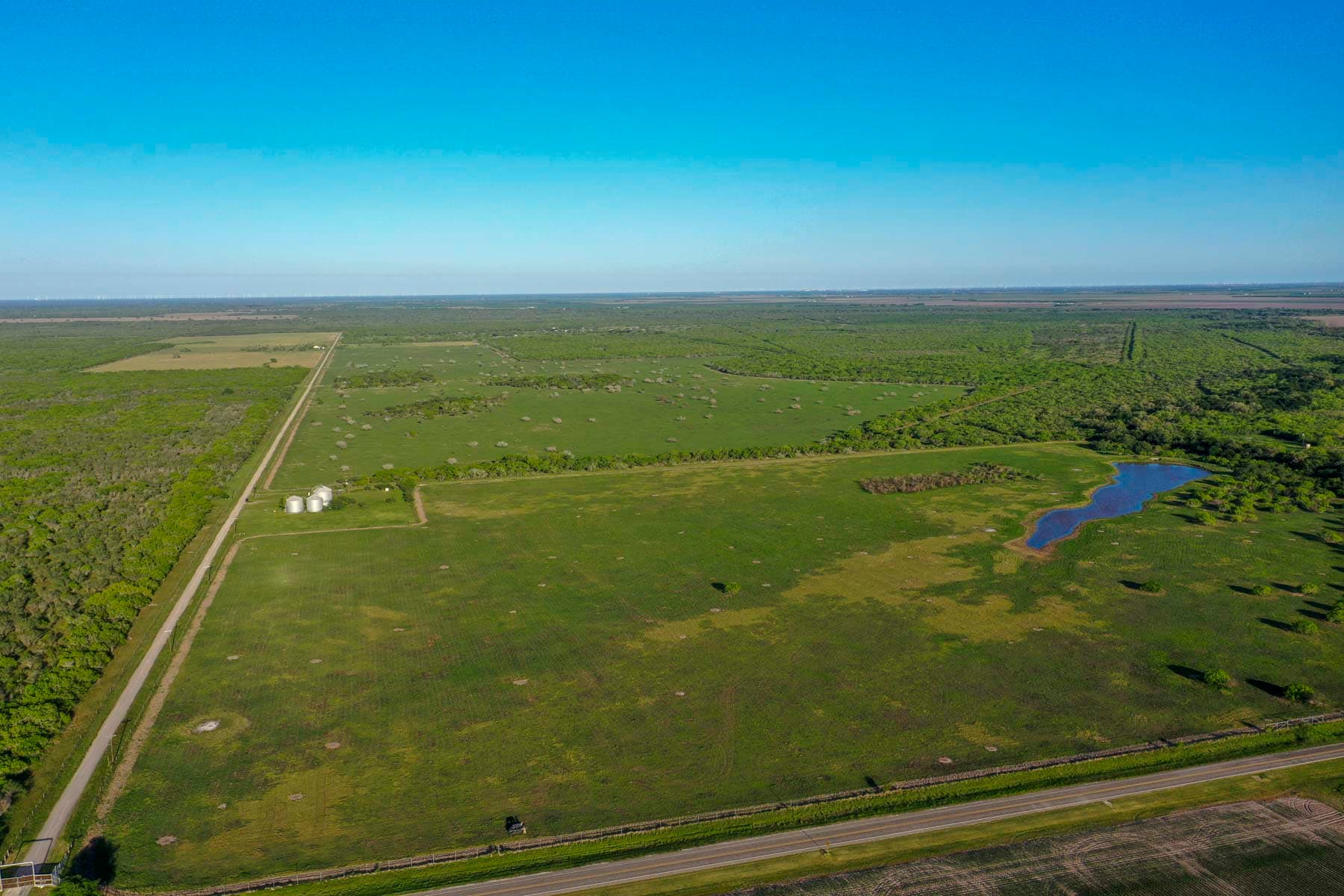 The O | W Ranch, an expansive 6,041+/- acre property located in Bee and San Patricio counties near Corpus Christi, Texas, exemplifies a premier agricultural and recreational estate. This ranch boasts a well-established infrastructure that supports diverse operations including hunting, cattle, horse, and farming activities. The property headquarters is accessed by a paved private two-mile road from the main gate off Farm to Market Road 796.