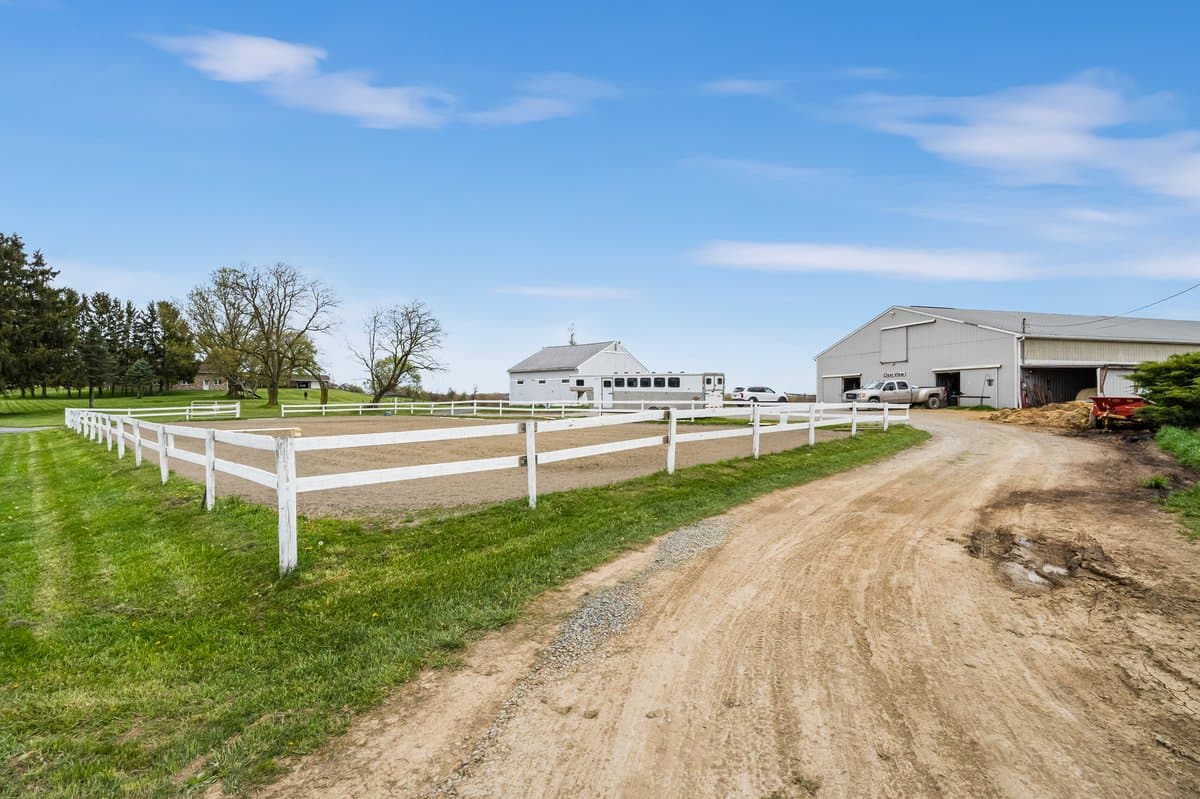 Welcome to your dream equestrian estate! Nestled on 57 acres, this property blends luxury living & equestrian excellence. New Roof(2022). Step inside to discover a spacious & inviting interior featuring 3 beds & 3 Baths. The sunroom, w/ handmade cedar walls, provides a cozy retreat, while the guest bedroom offers a private 3 person Sauna w/ electric infrared light technology & Bluetooth. The gourmet kitchen, a chef's delight, boasts a new Electric double oven(2024), electric stove top, stainless steel vent fan, a built-in bbq grill & an illuminated ceiling. Outside, a 20x40 pool awaits, complete w/ all the piping for heating & a solar cover. For equestrian enthusiasts, the property has a 60x180 indoor area w/ a heated lounge, 2 barns: 1 w/ 20 stalls, a wash stall, & a seed room, & another w/ 4 stalls & a seed room. Outside, there's a 70x140 regulation small dressage arena. Parking features a 2-car attached & a 3-bay commercial detached garage. New Heating System in Basement.