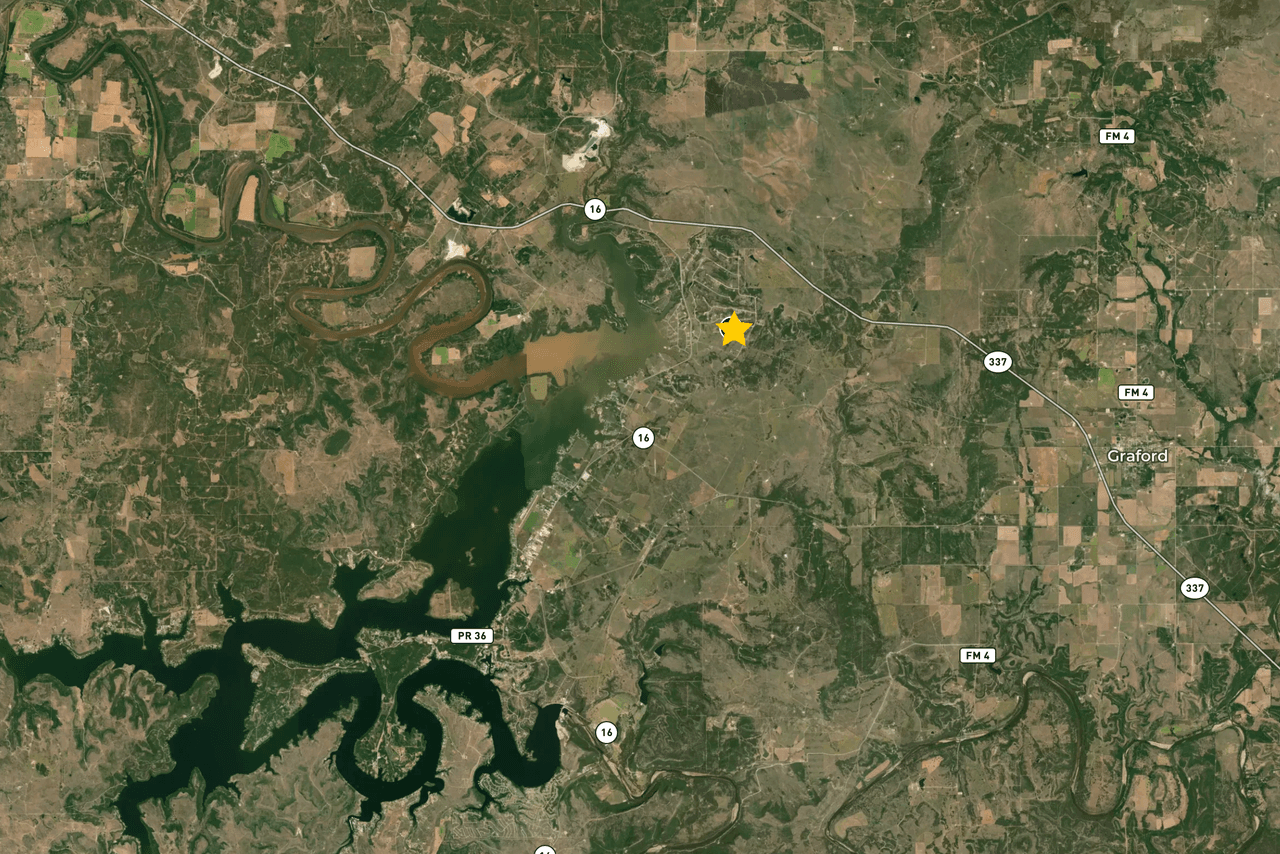 Head north on State Highway 337 from Graford. Turn left onto State highway 16 southbound and about 2 miles take a left the entrance to the community will be gated.