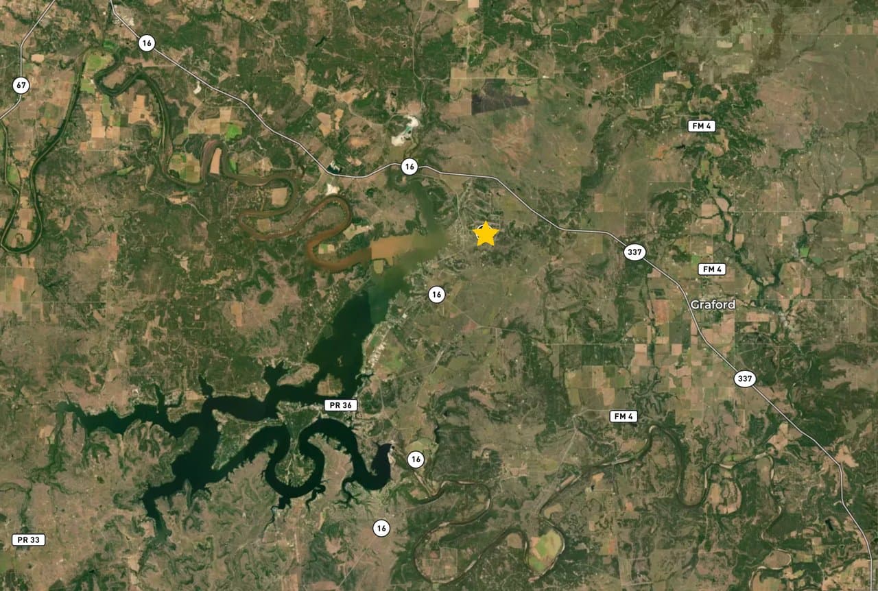 Head north on State Highway 337 from Graford. Turn left onto State highway 16 southbound and about 2 miles take a left the entrance to the community will be gated.
