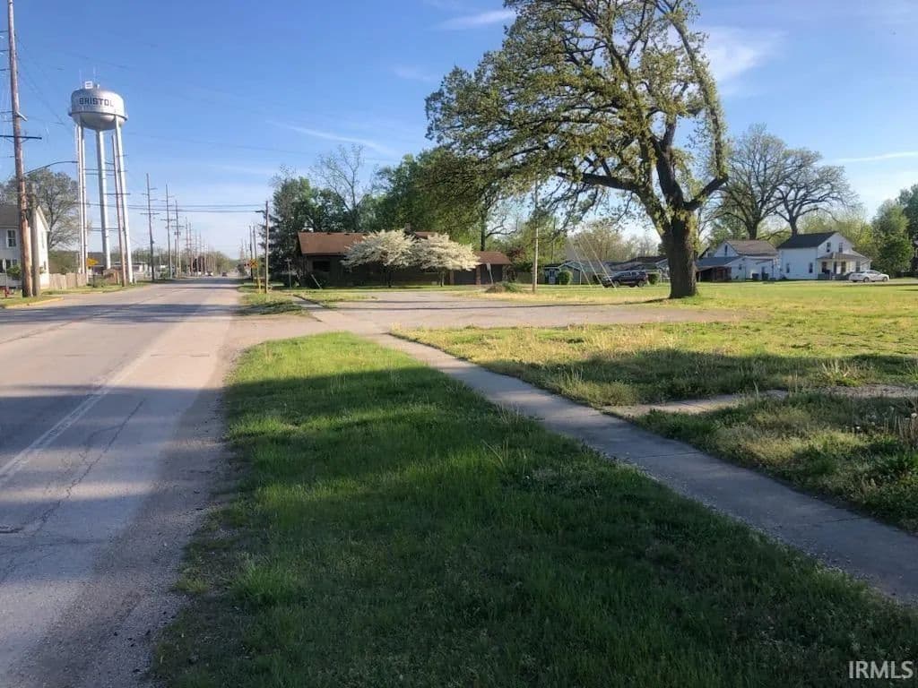 Prime Property Business site zoned B 2 with endless possibilities. Be part of the exciting remaking of the Town of Bristol street scape improvements. Can be used for small business, medium intensity, dining, cafe, coffee shop, entertainment, community building, day care, Government, medical and many more uses. Corner lot with double access and flexibility for ease of ingress and egress. New improvements are underway. There is a temporary lease with INDOT only until they complete their project est. 2025. The lease will be prorated to new owners. There are so many new possibilities for this land in the heart of this charming town!