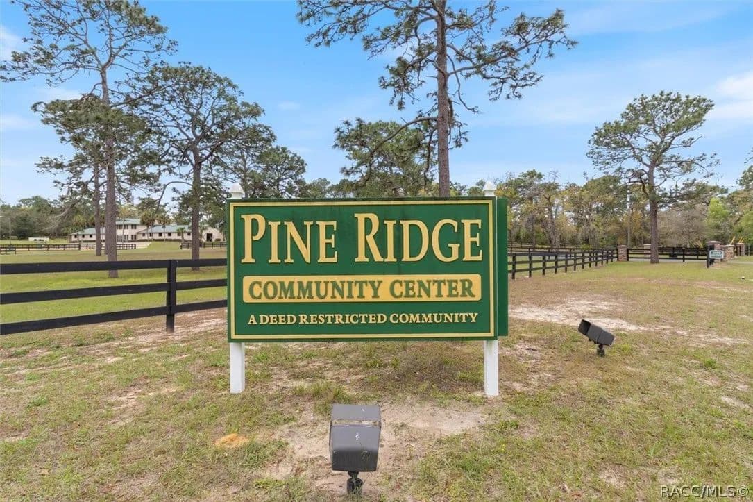 Looking for Horse property to build your dream Florida home in a community with tons of amenities? Then look no further! This 2.75 acre lot is situated in the sought after Pine Ridge Estates. This community includes 28 miles of horseback and walking trails, a 94-acre complex with a community barn to accommodate up to 17 property owner’s horses during the building process. It boasts a large show arena, regulation dressage ring, jumping ring, trail arena, round pen and a small cross country area. The complex has lighted tennis and pickleball courts, shuffleboard, a dog park, a radio controlled plane flying field with airstrip and shade pavilion, a state-of-the-art playground with shade cover, swings and a gazebo. There are two meeting rooms. One larger for private events with a commercial kitchen and a smaller room with a full kitchen. This lot is centrally located in Citrus County on the Nature Coast with it being in proximity of the Gulf of Mexico, Tsala Apoka Chain of Lakes, Withlacoochee River, Citrus Memorial Hospital, Bravera Health, and all the resources Citrus has to offer. Also in vicinity of the Veterans Expressway Giving you a commutable distance to Tampa.