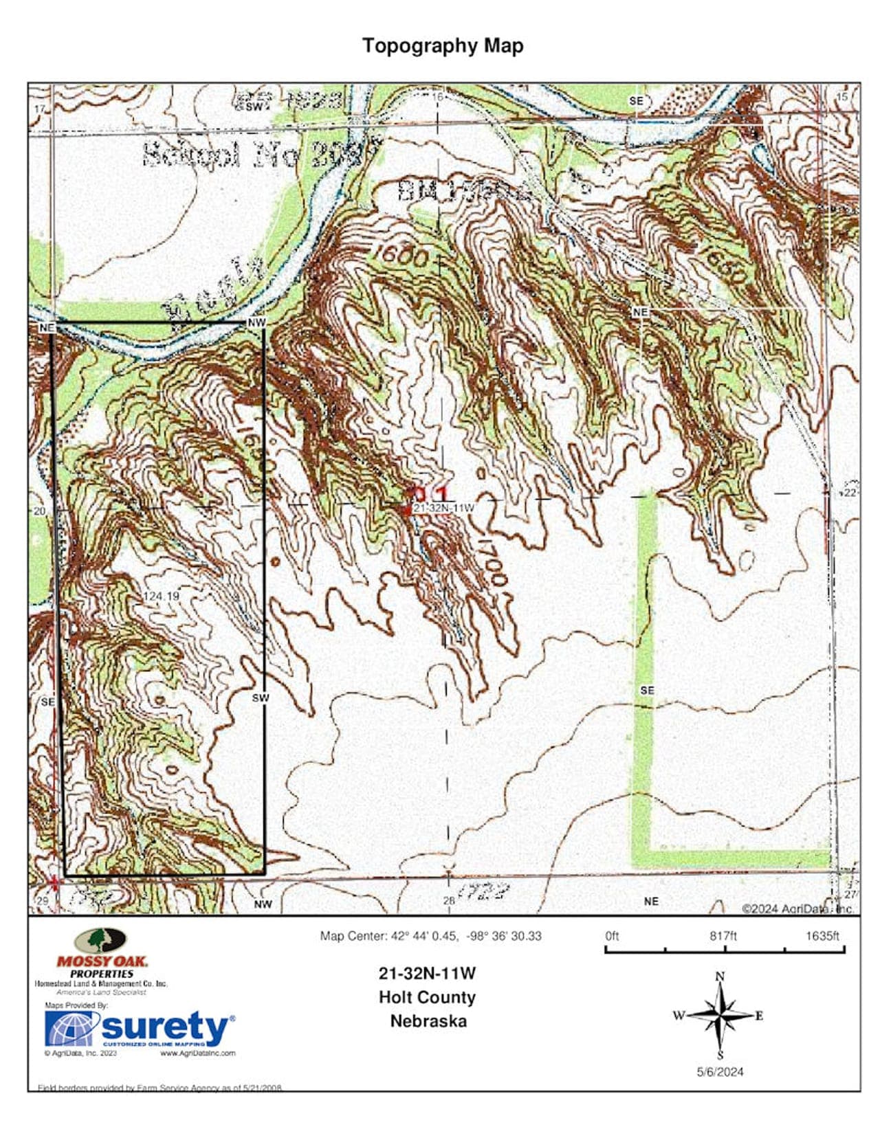 Legal Description: SW 1/4 of the NW 1/4 and the W 1/2 of the SW 1/4, ALL in Sec. 21, Twp. 32N, Rg. 11W, Holt County, NE