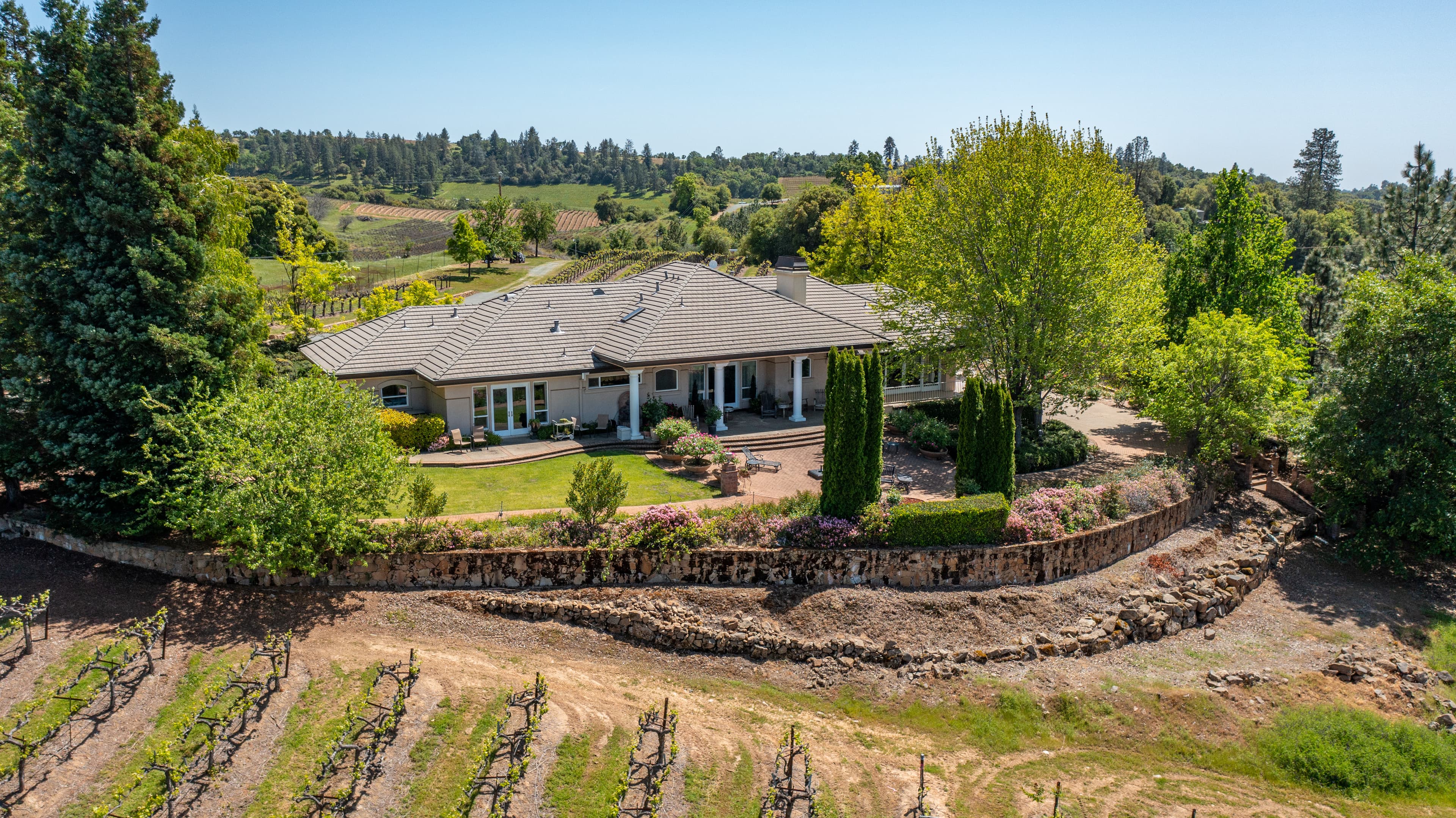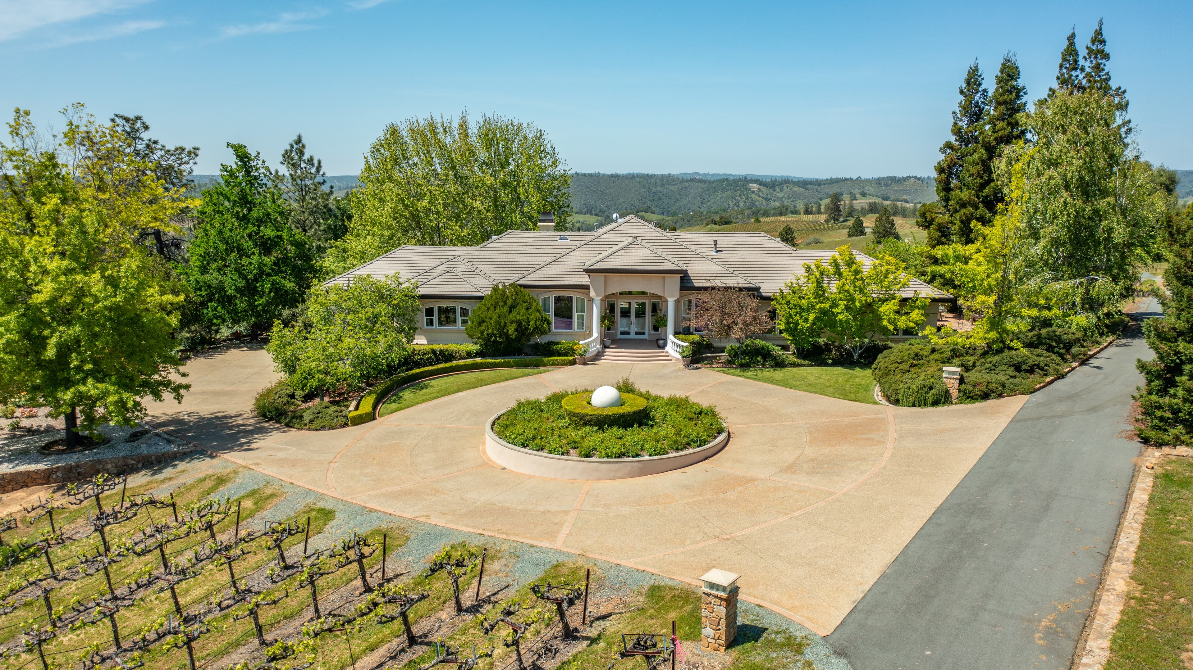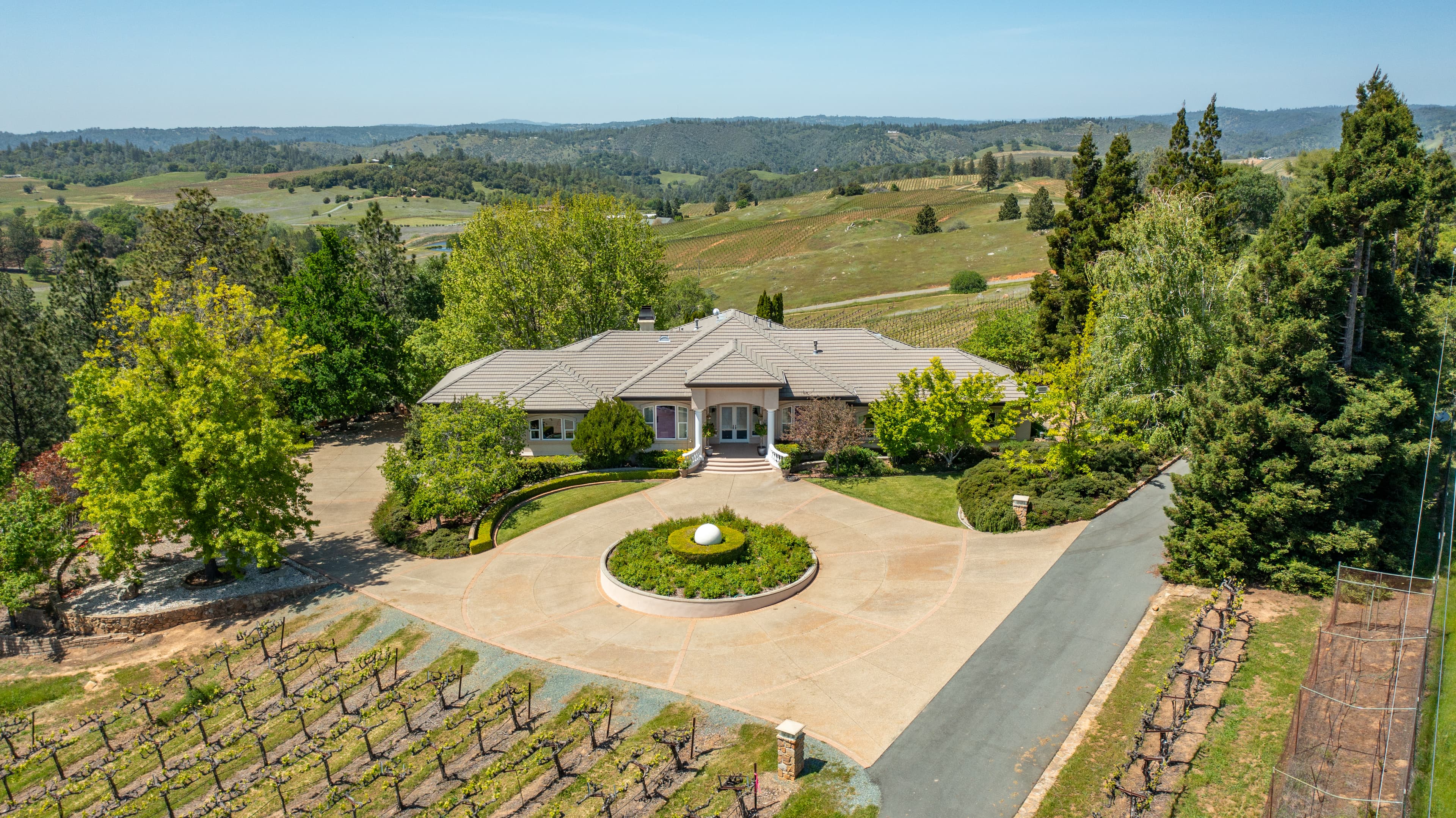 Welcome to this exquisite luxury vineyard estate, where the essence of California's finest grape varietals flourish, consistently earning multi-year awards for their excellence. Perched majestically, this estate offers breathtaking views of the picturesque Shenandoah Valley vineyards, the majestic Sierras, and the sprawling Sacramento Valley.