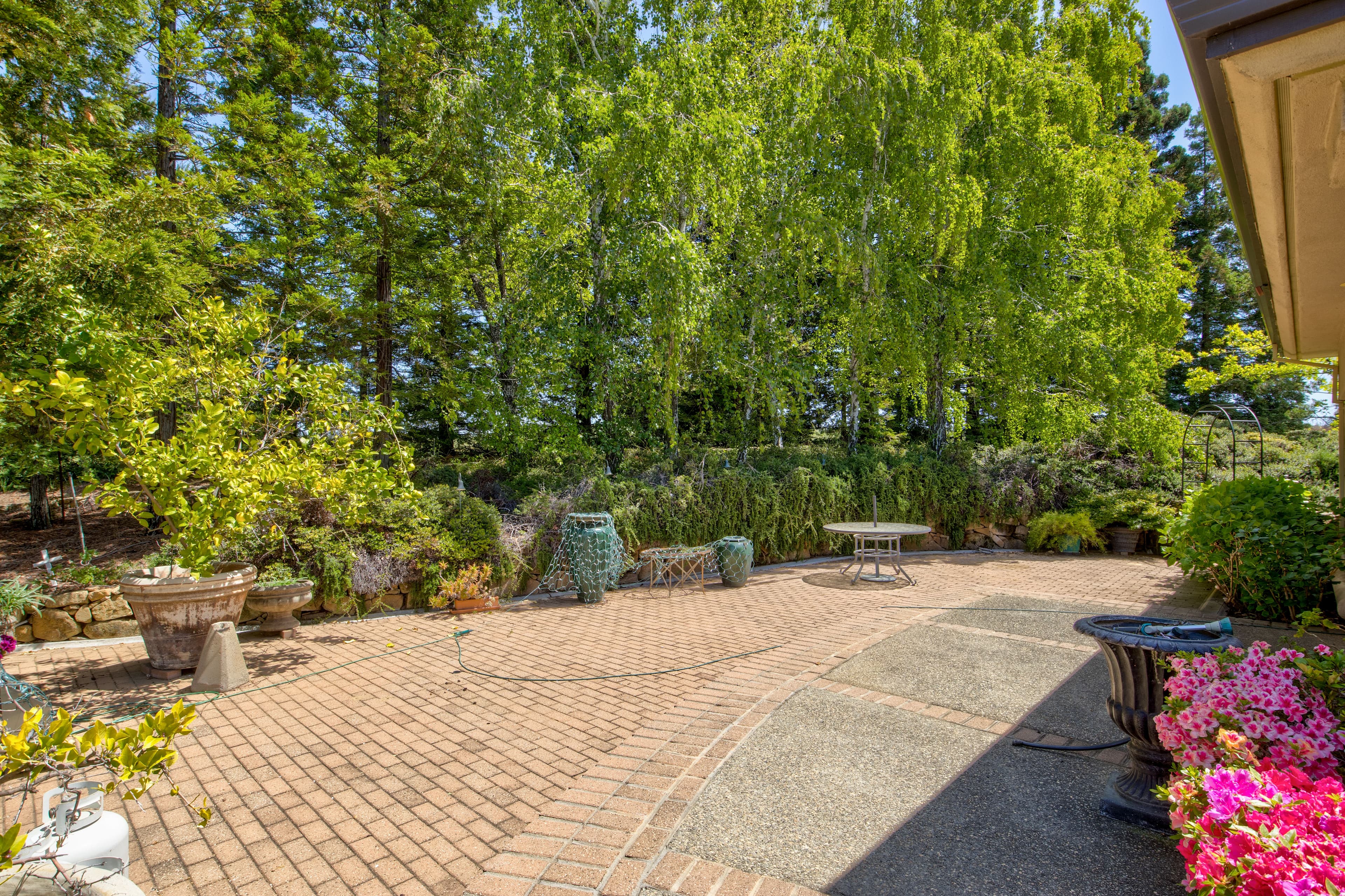 • Beautiful brick patios and walkways surrounding home with many rose varieties in bloom