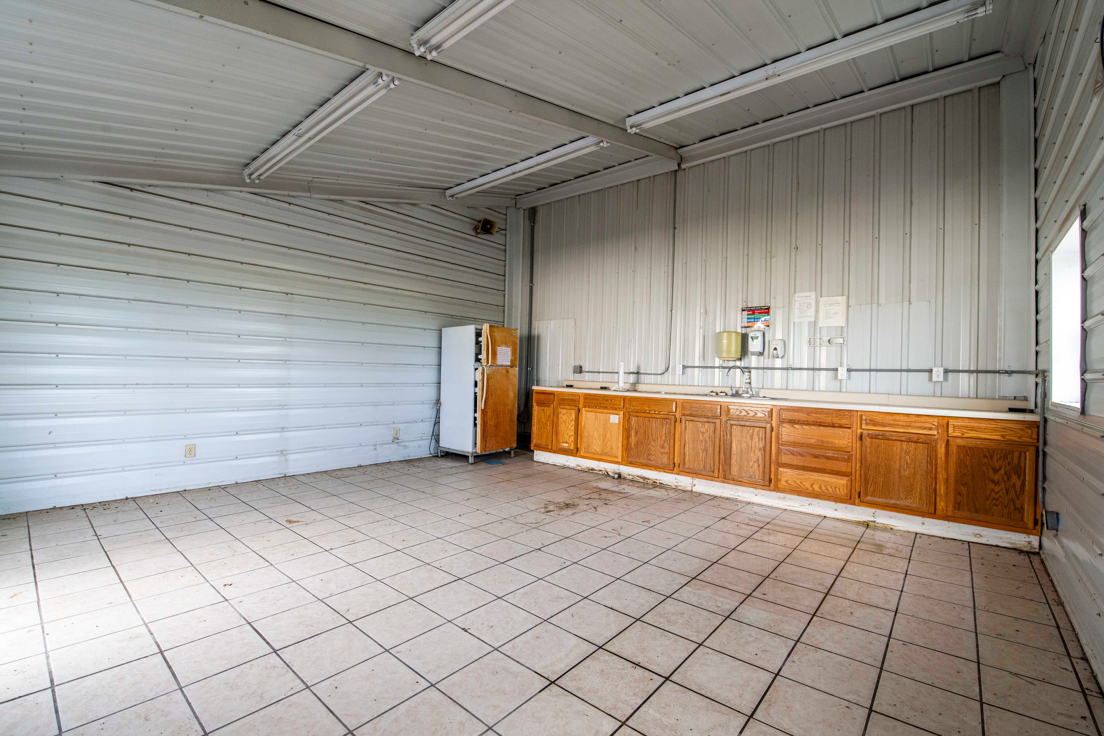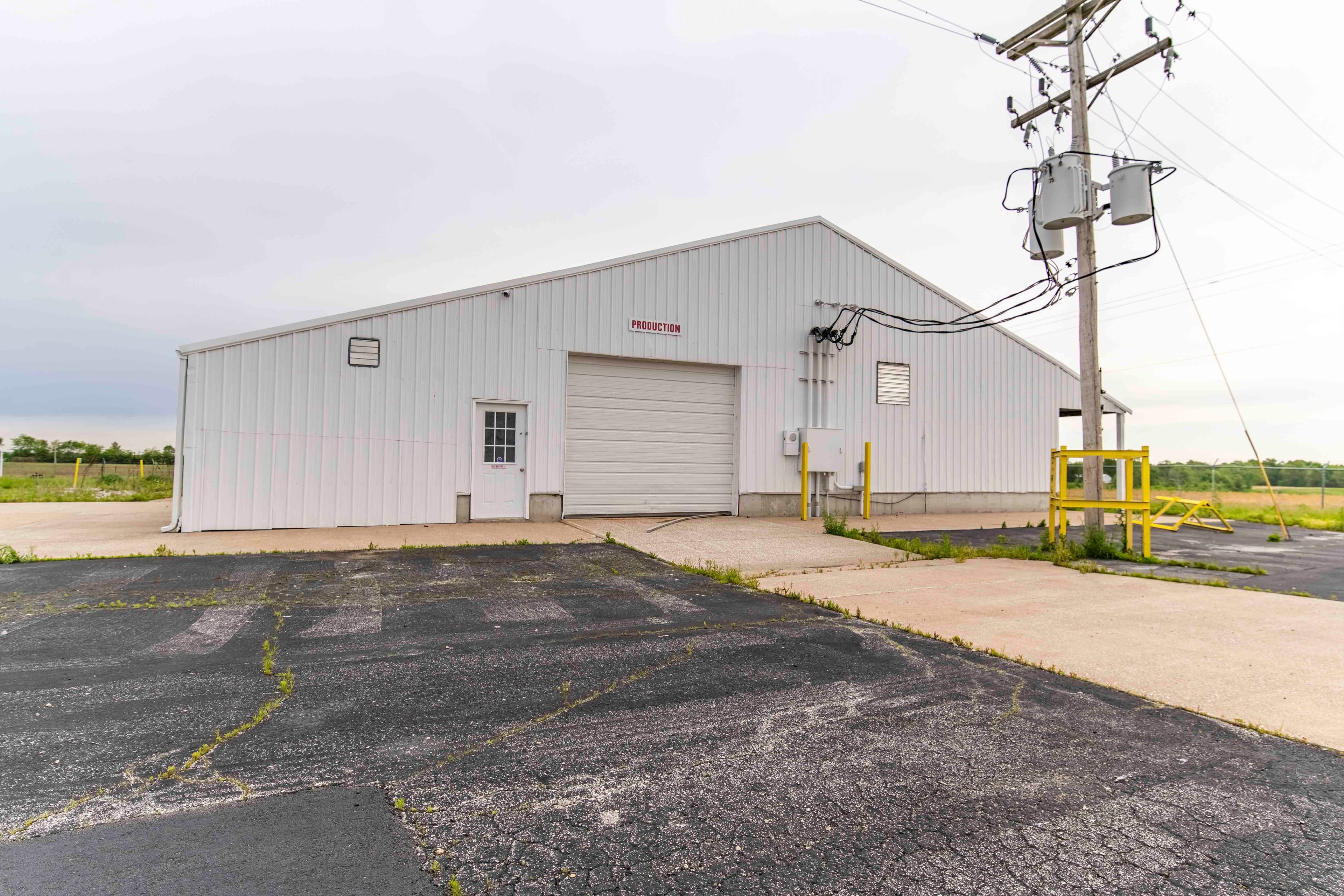 3 Phase power in this 70 ft x 50 ft building. It was previously used for production by the previous business. Building is set up for ventilation. There is a sink with an attached small water heater.