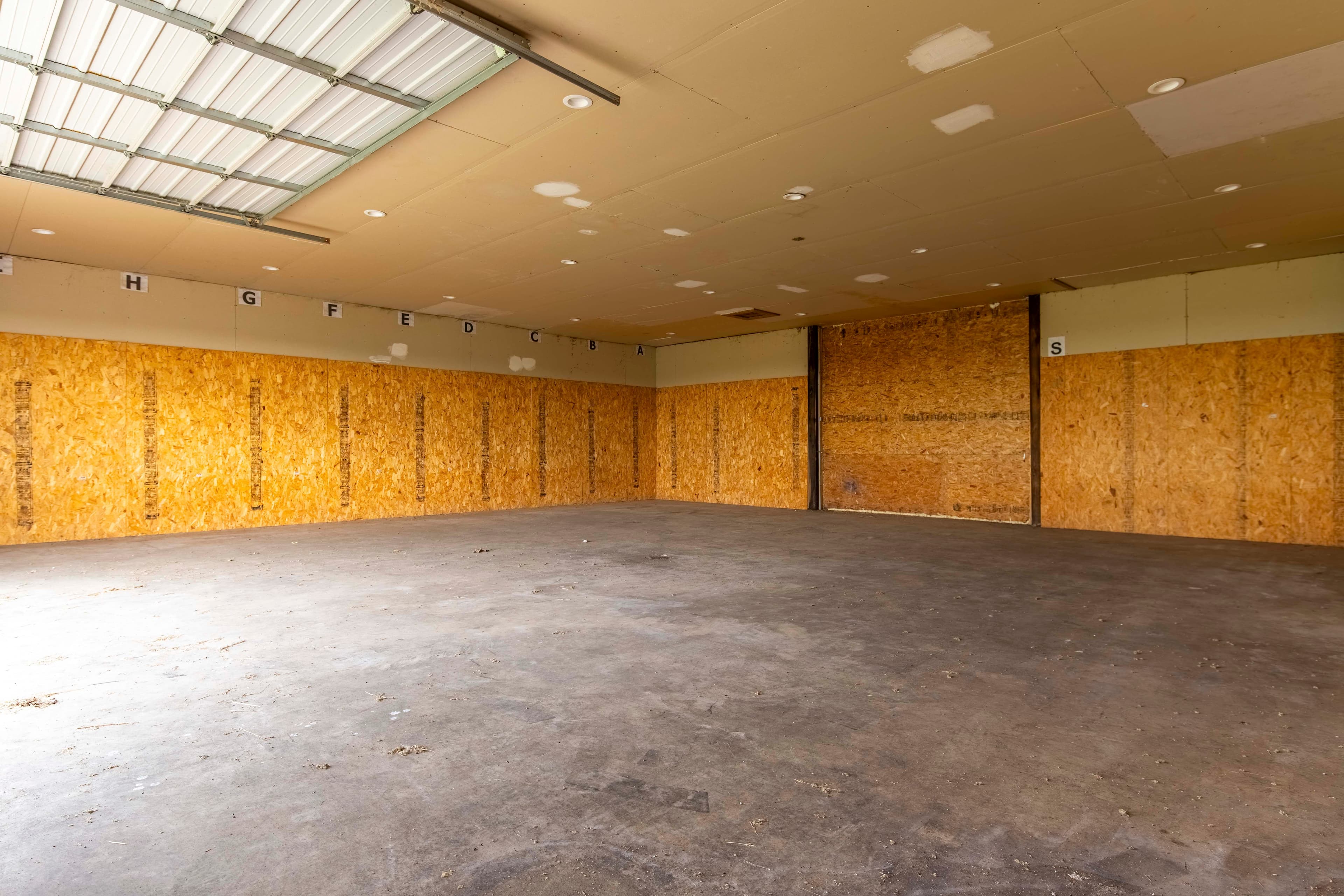 This is an open lean to type building. It measures approximately 24 ft x 16 ft. It is 3 sided with an open face. As with all buildings it has a concrete floor.