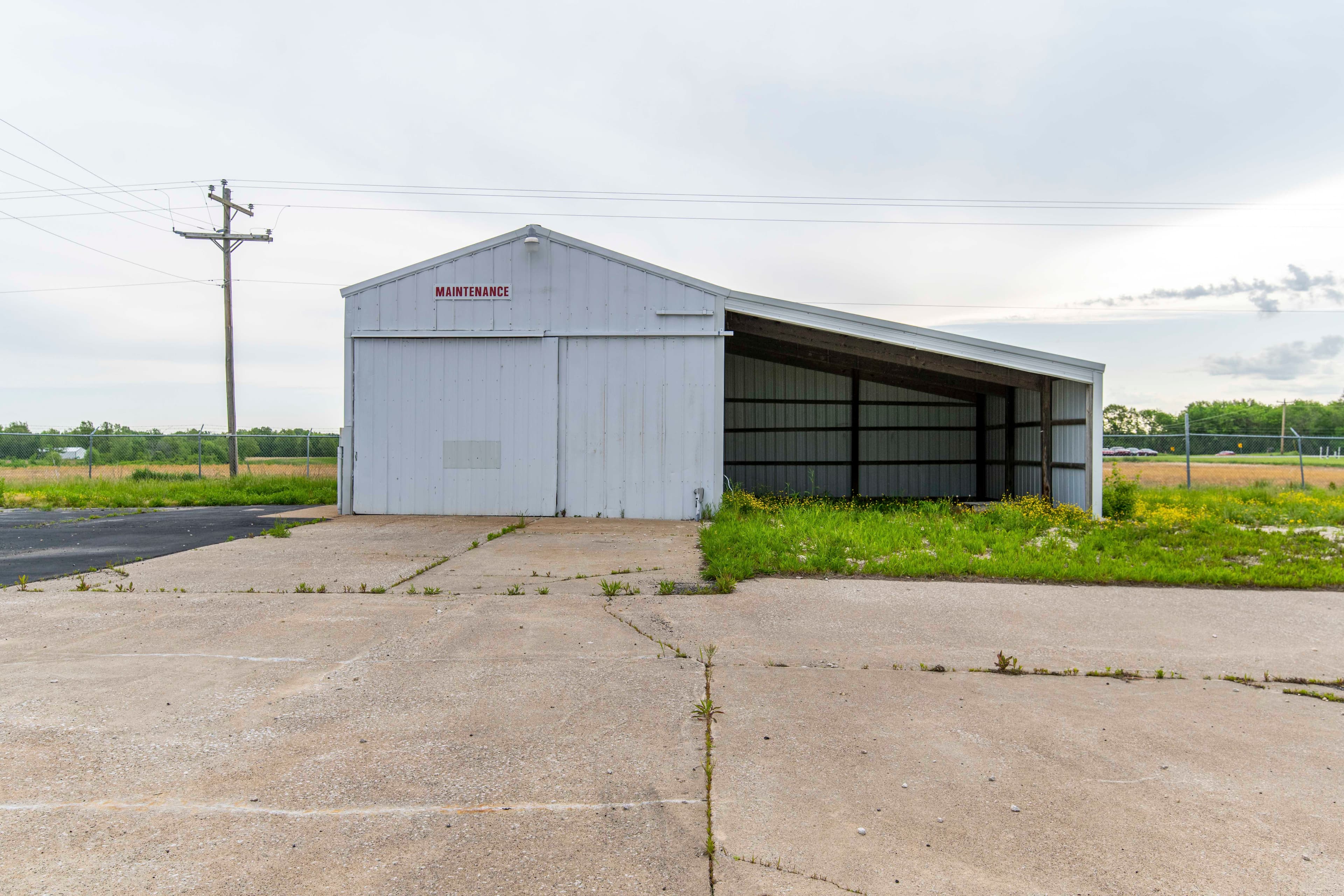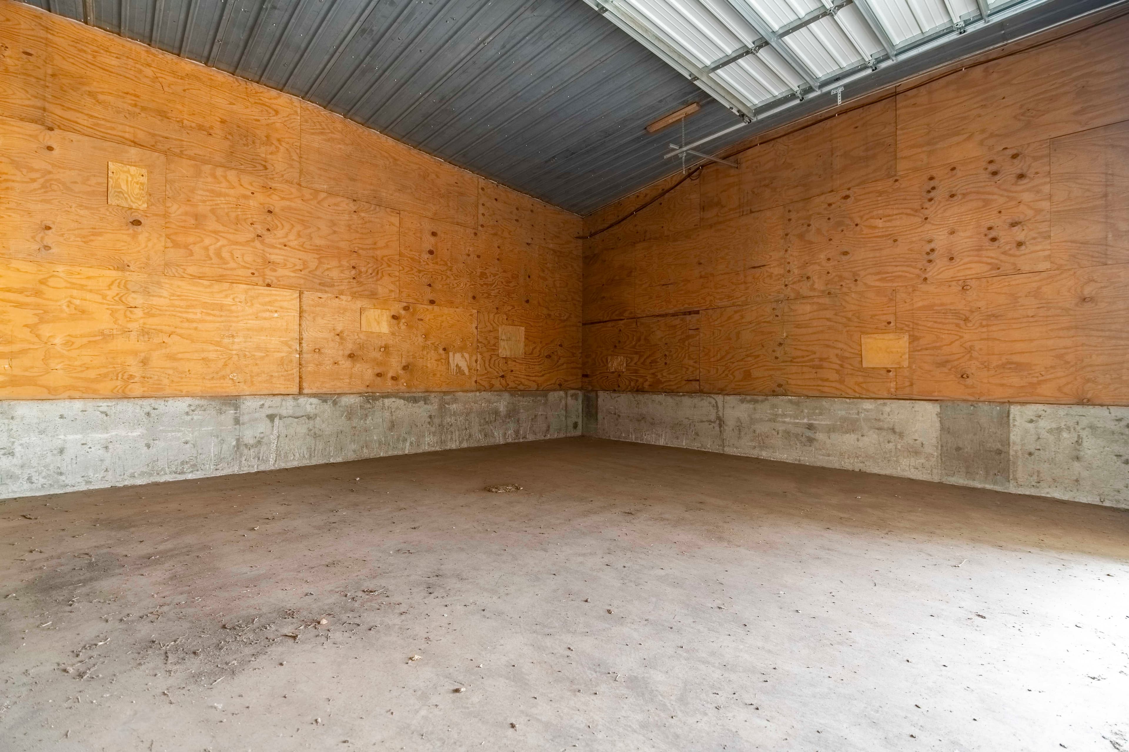 A partially enclosed 25 ft x 25 ft building that was previously used as the maintenance shed fits many needs. It has an open lean to style with an enclosed section for tools or whatever you may convert it to.