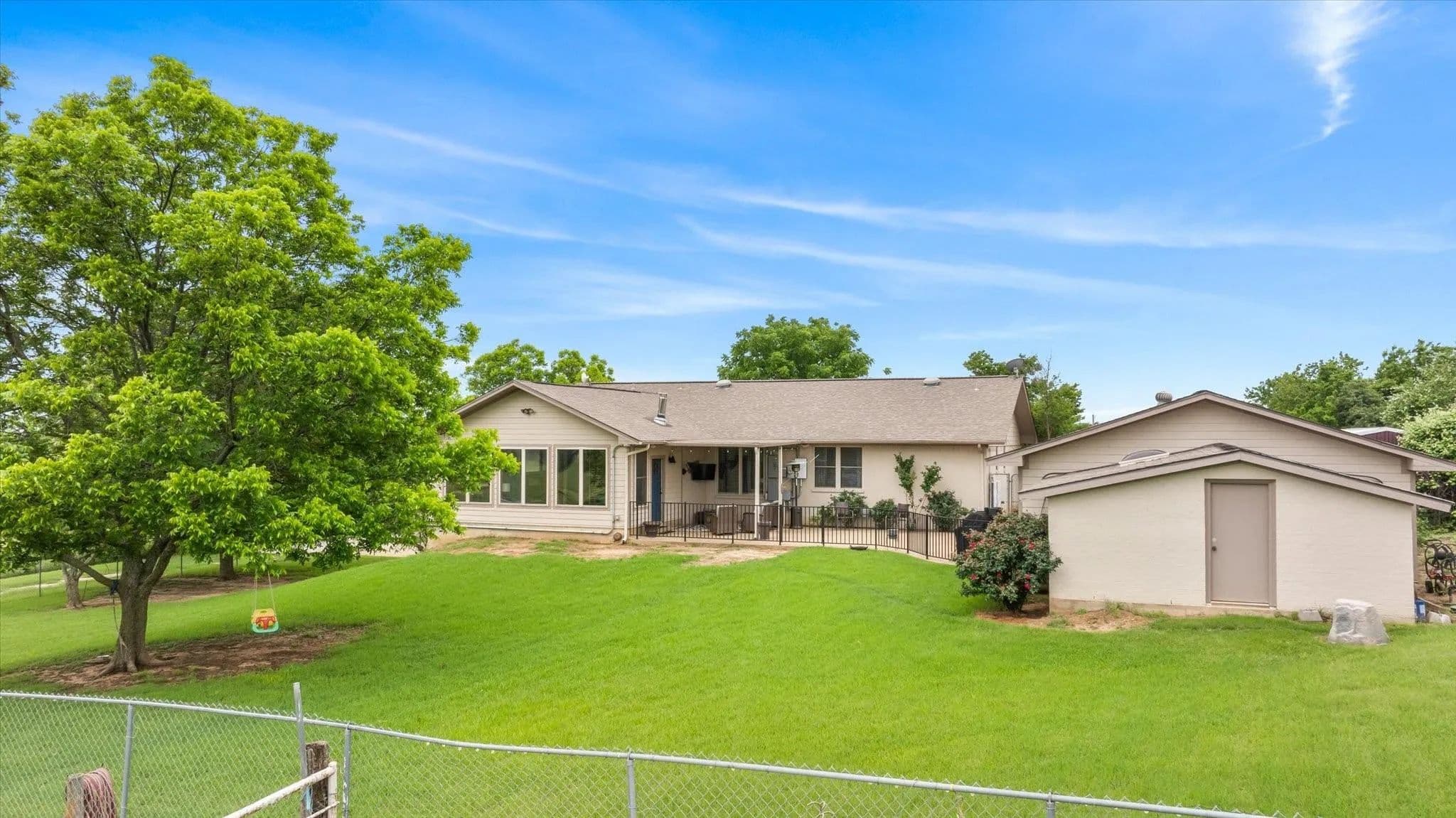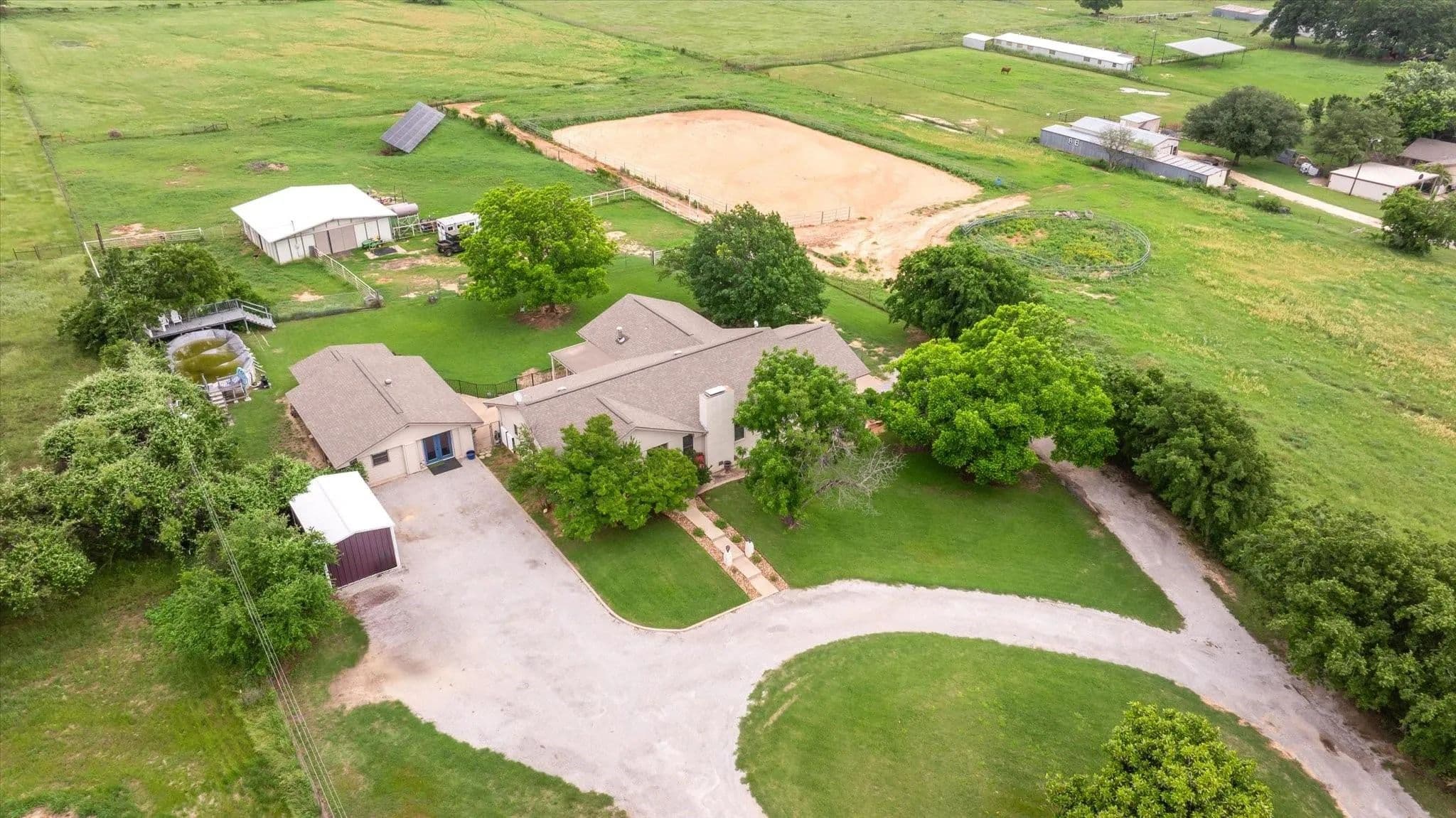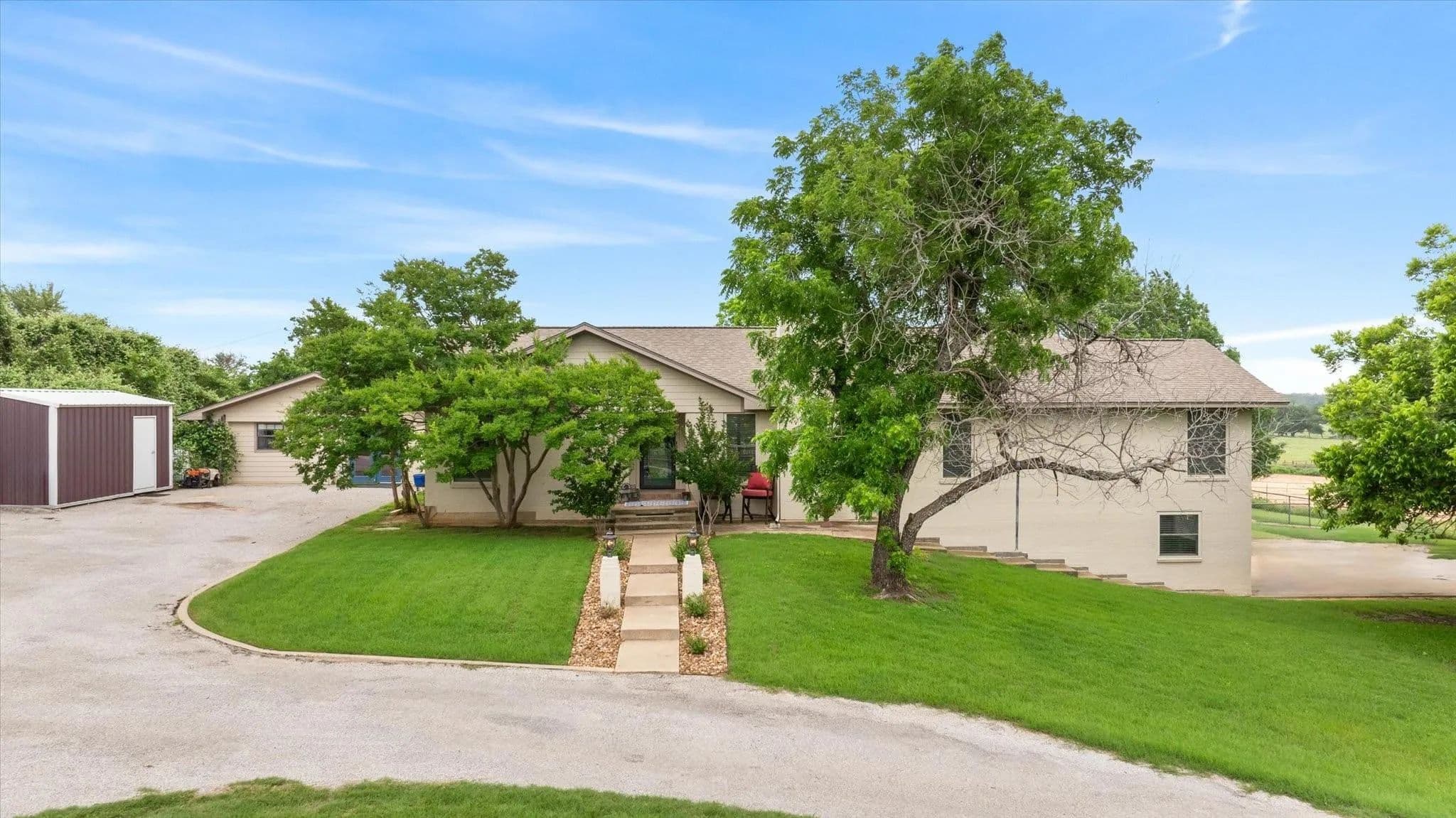 This 14-acre horse property is ideally located on a paved road just on the edge of Stephenville, TX. From the moment you step inside this beautifully remodeled, split-level home, you'll feel right at home. The owners spared no detail when updating the property. Featuring 4 bedrooms and 3 bathrooms, this home offers a comfortable and spacious layout, perfect for families or anyone needing room to spread out. The large living room boasts a wood-burning fireplace, and the expansive dining area is ideal for gatherings. An office provides a quiet space for those working from home. Three of the four bedrooms are located on the main level, including a generously sized master suite. Downstairs, you'll find a guest room with a full bath and a separate entrance. The converted garage serves as a workout gym with additional storage space. Enjoy cool evenings in the cozy sunroom or spend summer nights outside on the patio or in the above-ground pool. For horse enthusiasts, the property includes a 4-stall MD barn with a tack room and feed storage. The arena area offers plenty of space to expand or add roping boxes, or you can simply enjoy riding in the sandy soil. A separate entrance to the cross-fenced pastures, planted with improved coastal Bermuda grass, provides even more room for your horse operation. The owners cut hay from these pastures each year. Additionally, solar panels and backup batteries ensure you're prepared for any emergency. This property has everything you need to enjoy country living at its finest!