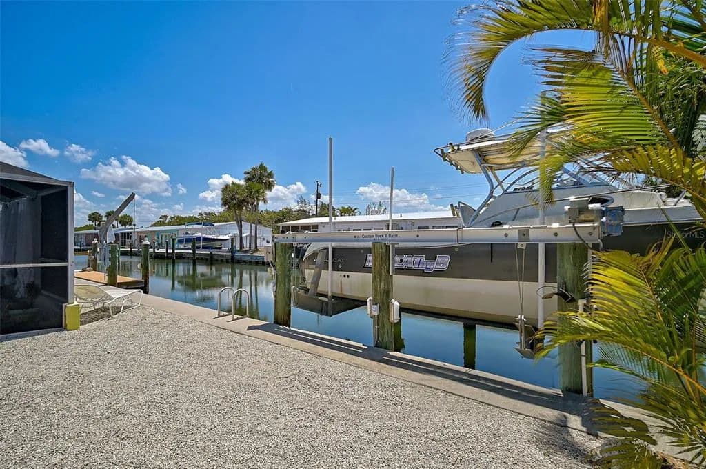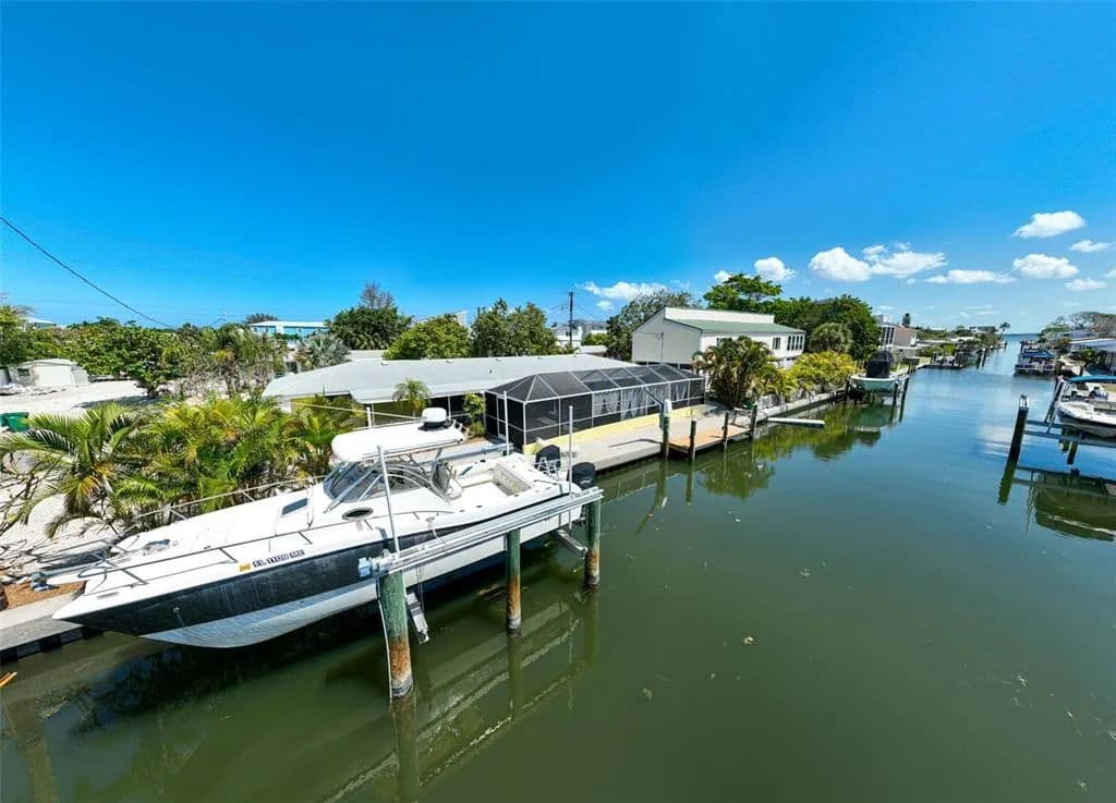 LOCATION, LOCATION, LOCATION! A rare find in Longboat Key! Now all there is to do is to create your perfect waterfront home! This corner lot has 100' of water frontage and comes complete with a private composite dock w/ water and electricity, davit and 16,000 lb boat lift! Build a wonderful getaway for your boating vacations as this property is less than 10 minutes from Jew Fish and Bridge Street by water. Deeded access to the exclusive, beautiful beaches of Longboat Key, access to Joan Durante Park and easy access to many dining and entertainment options. Just over 5 miles north of Publix. NOTE: 3bedroom/2bathroom residential structure and utility shed currently still standing on property. Owners have agreed to level the home and grade the land for a nominal fee.