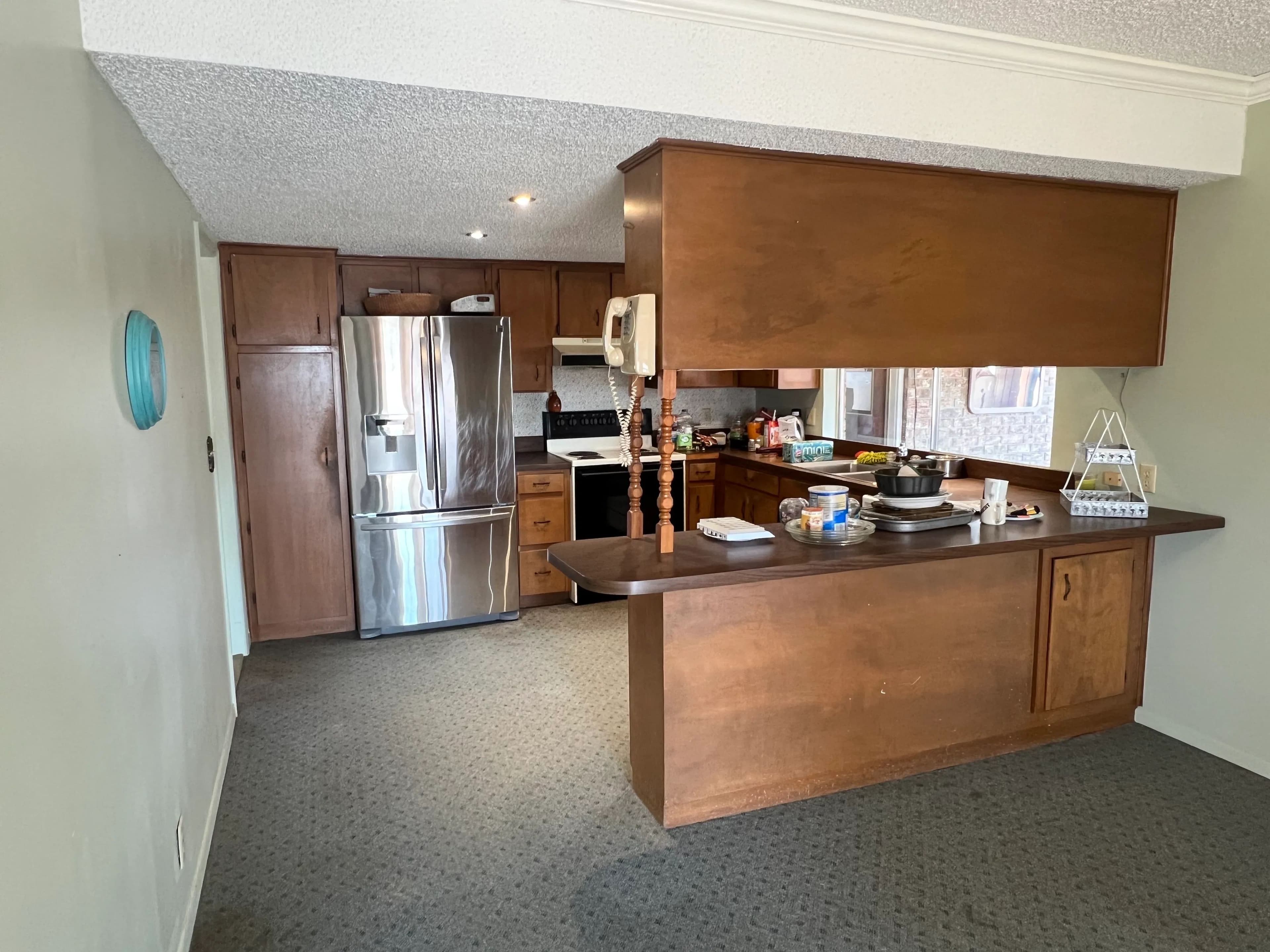 Gone now are many of the trinkets, quilts, and figurines but what remains is a wonderful opportunity with plenty of space to create your dreams of an indoor/outdoor kitchen, media room or marvelous game room.