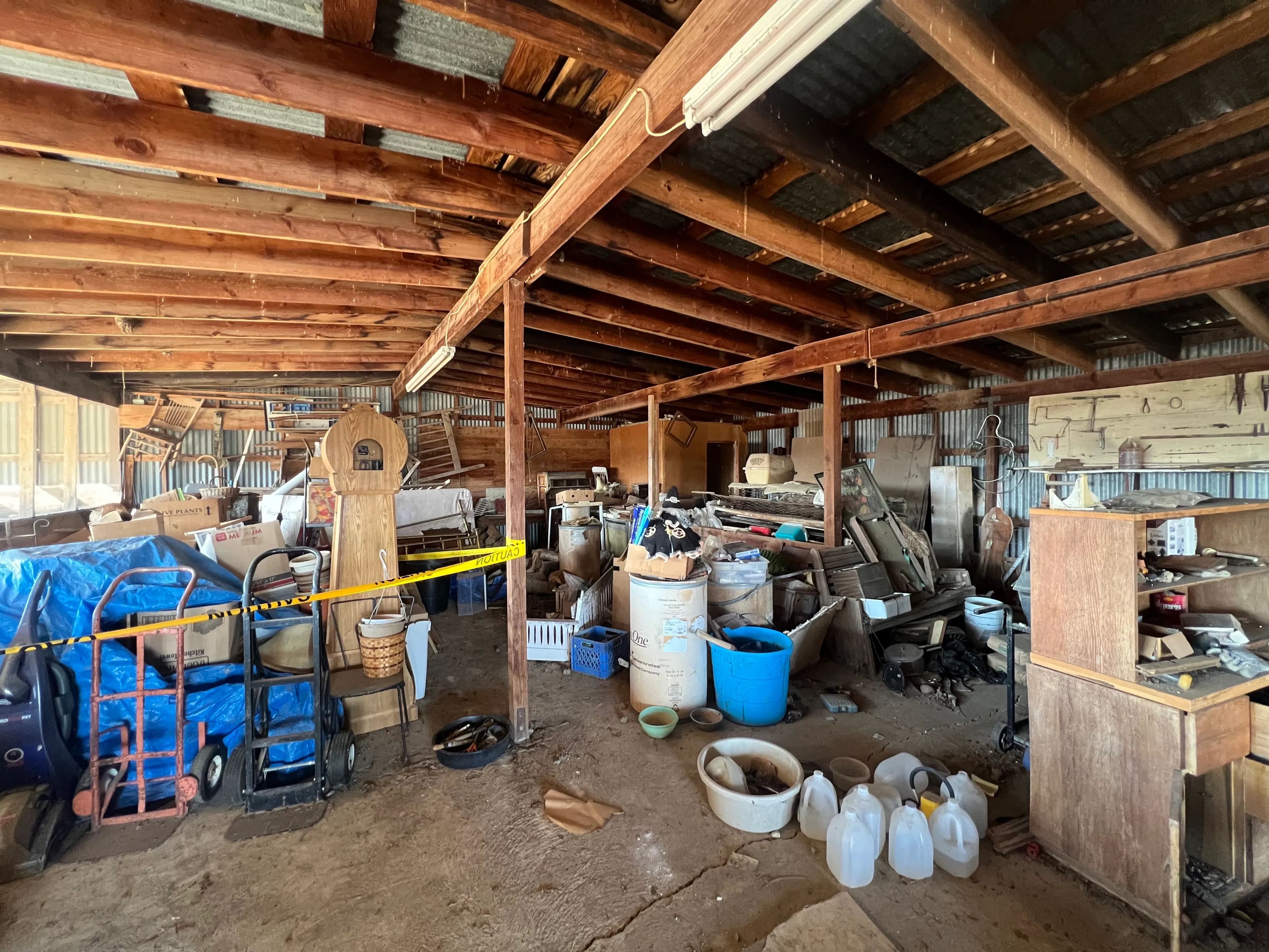 Then, there is the sturdy 3,000 + metal barn a bit further. Try to build one like that considering what inflation has done to material cost. Holding pens and chutes are top notch should you decide to run a few head on the place. On the back of the property are more water and power hookups that had been used by an RV