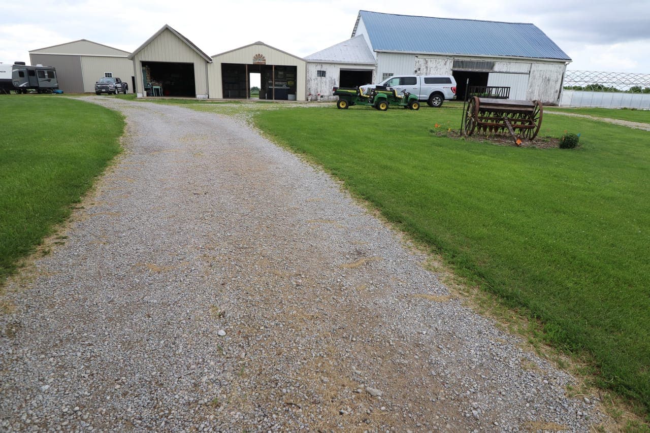 The charming 1994 sq ft, 3 bed/2bath Bedford stone home provides a comfortable retreat, featuring modern amenities and a newer all-season porch that overlooks the verdant landscape. With ample space for relaxation and entertainment, it serves as the perfect complement to the bustling activities of the produce business.
