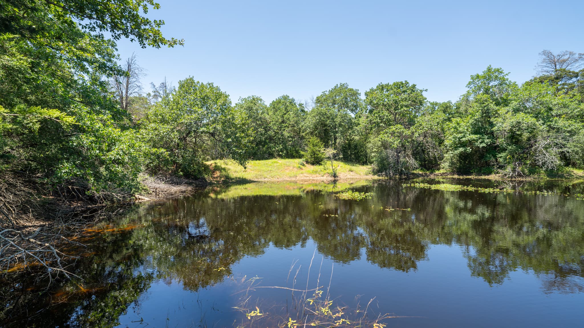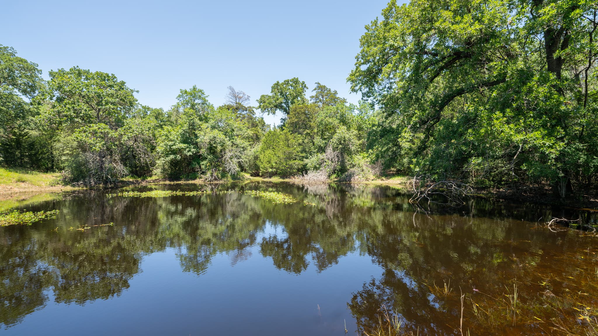 The property is level and about 80% wooded with large oaks, elms, cedars, and some mesquites. There are two ponds on the property and plenty of wildlife to enjoy. There are many trails to explore with horses or ATVs!