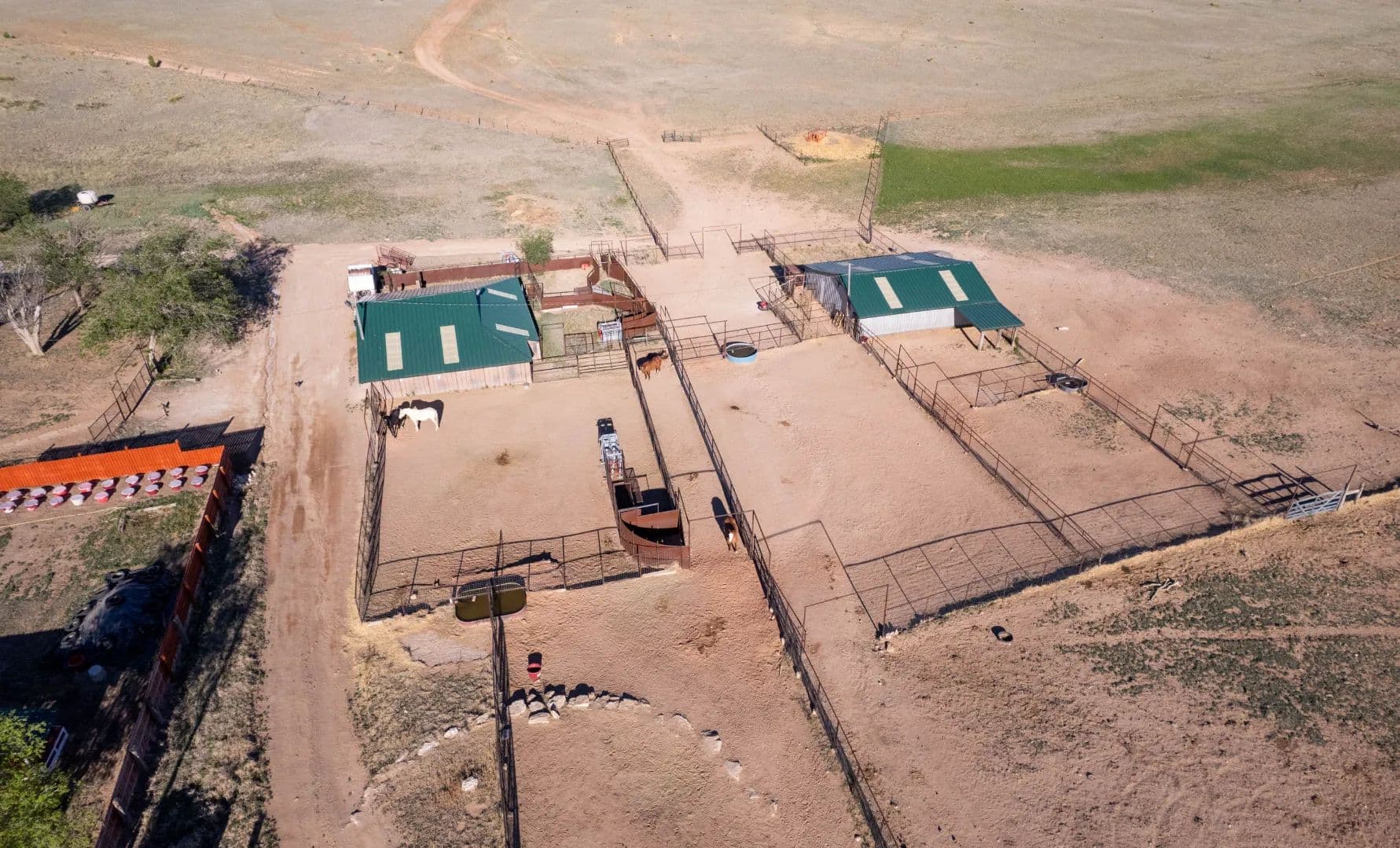 The ranch is located in Torrance County, New Mexico, between Corona and Vaughn, approximately 105 miles south of Santa Fe and 113 miles southeast of Albuquerque, providing reasonable convenience to services.