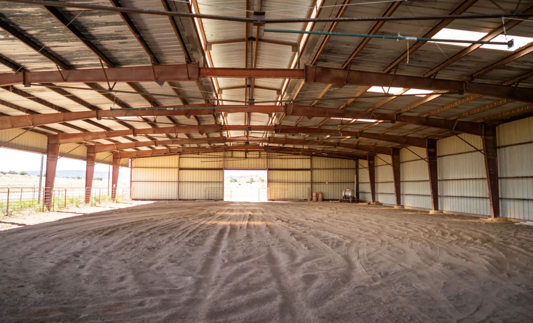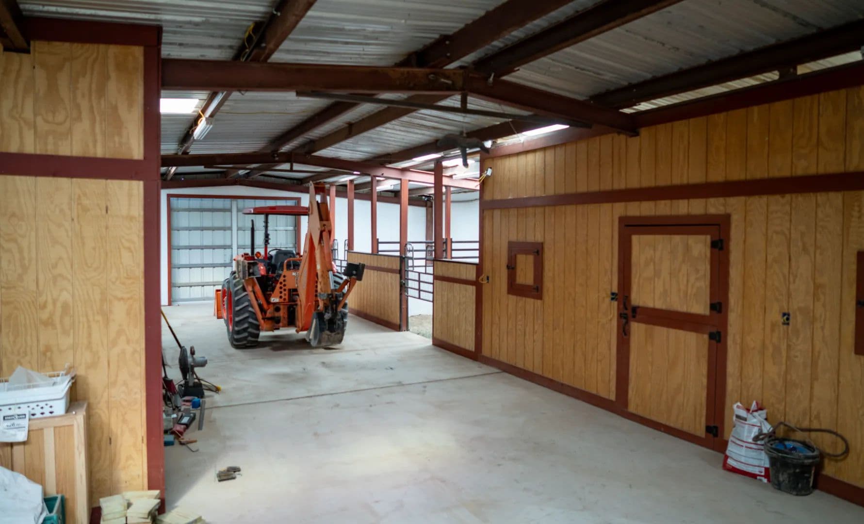 • A new insulated combination equipment and 4-stall horse barn with an attached covered arena.