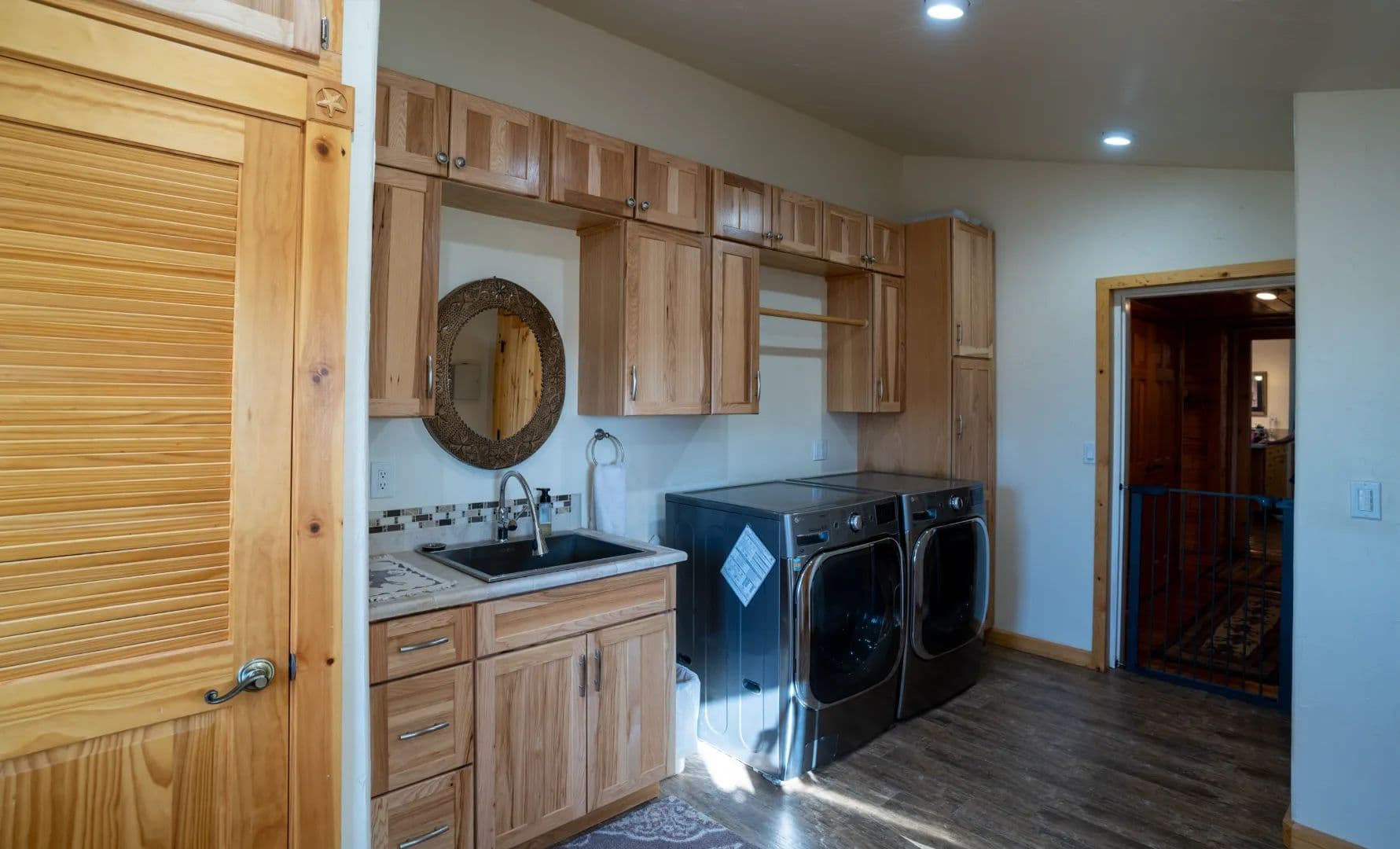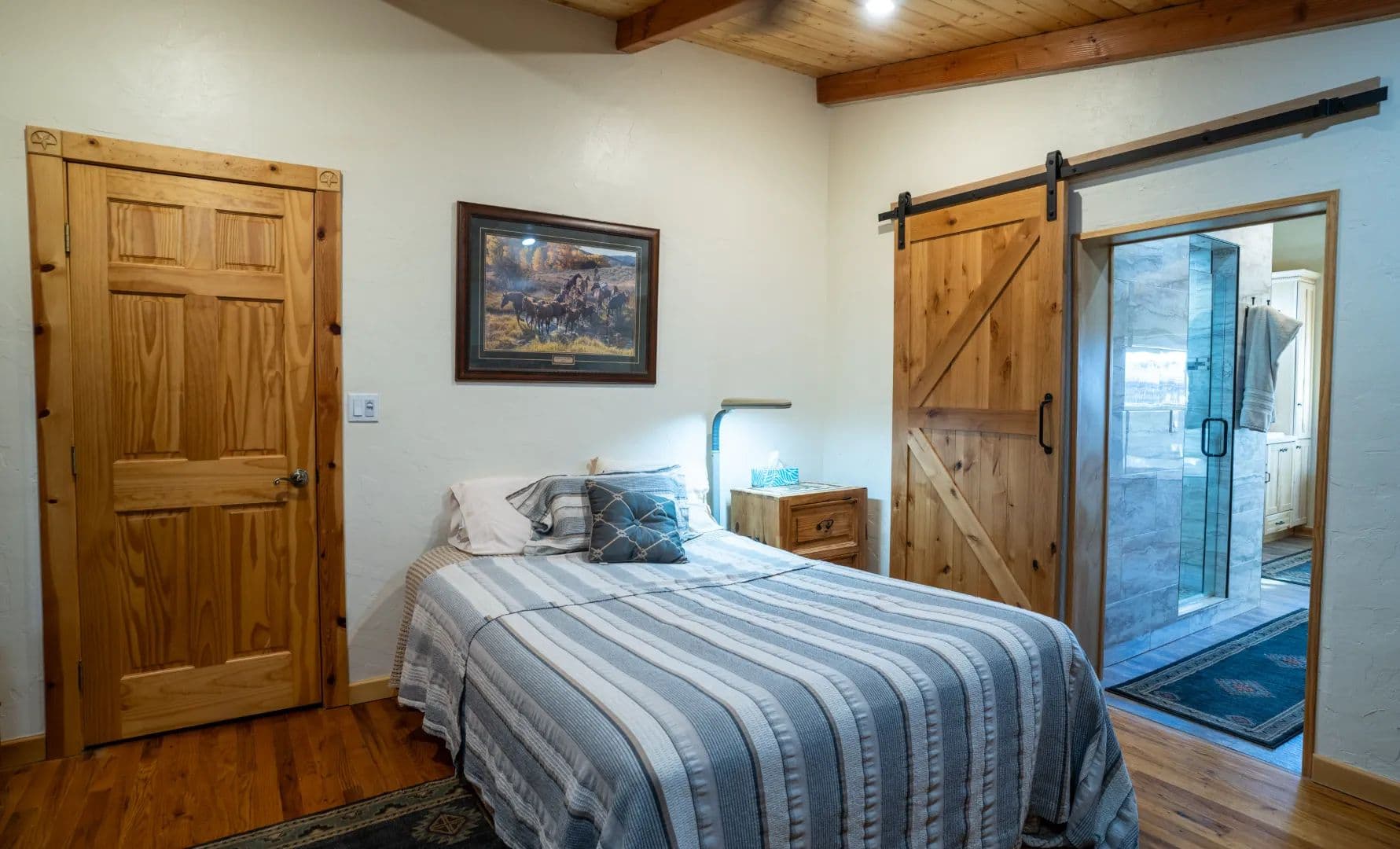 • A tastefully remodeled owner’s home with a ground floor and basement. The ground floor features a kitchen, living area, master and guest bedroom, office, master bath, ¾ bath, and ¼ bath. Beautiful wood floors, tongue-and-groove walls, and ceiling complement the upstairs. The finished basement includes an additional living area and a full bath.