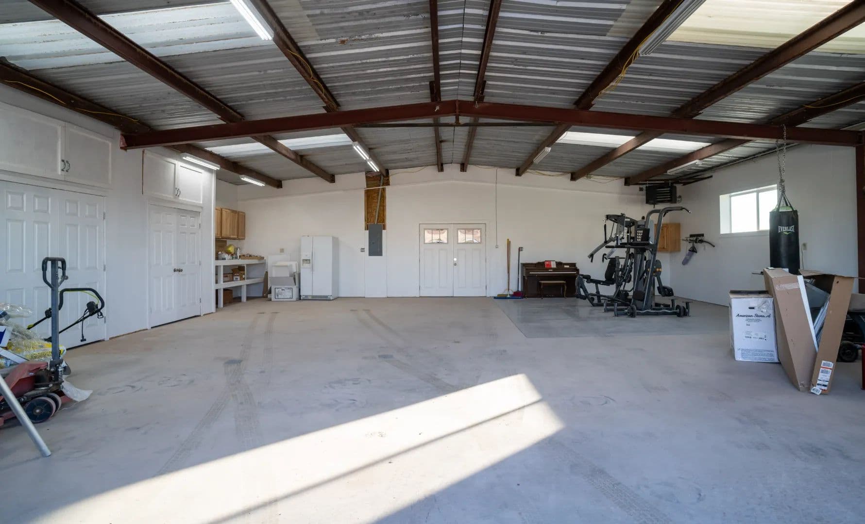 • A smaller horse barn with stalls and an attached 1-car garage.