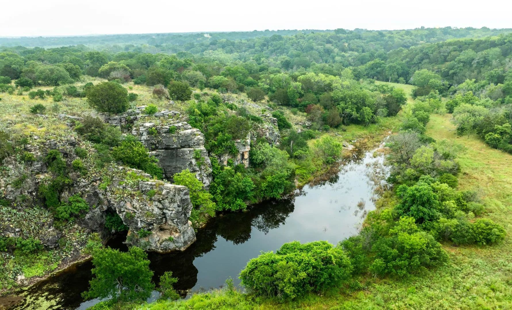 The approximately 700-acre ranch in north-central Burnet County boasts a 24-acre lake and features Pillar Bluff Creek stretching 2 miles through the property. With historic rock formations like Pillar Bluff and Owl Bluff, the landscape is rich and varied. This historic ranch has been in the same family since 1929.