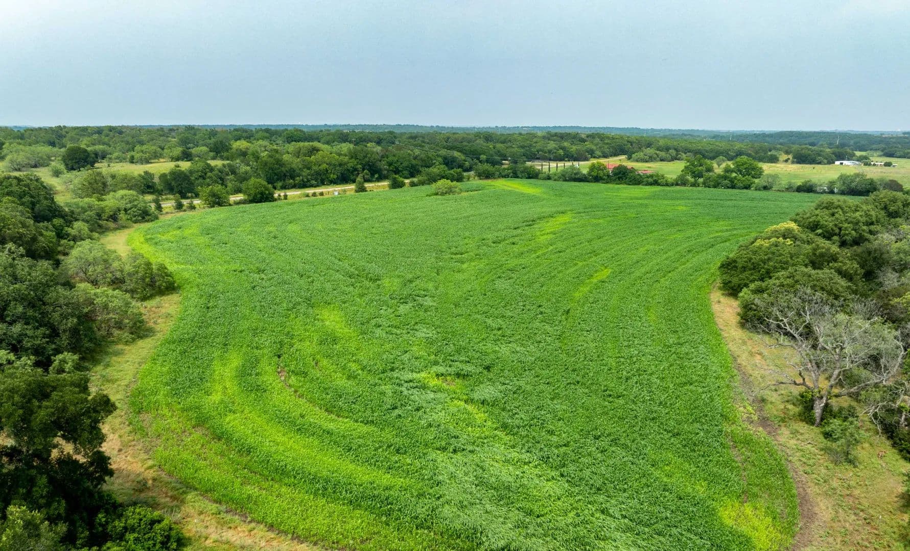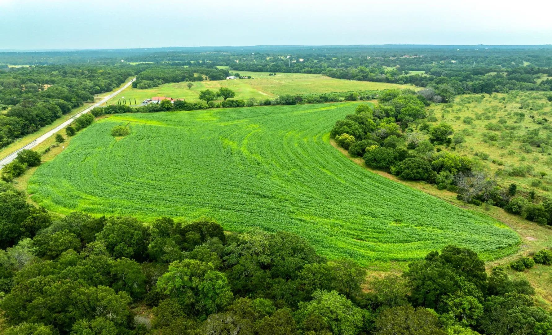 The ranch offers 1.6 miles of FM 1478 frontage, varying terrains from gentle slopes to fertile fields, and mature tree coverage including live oak, post oak, elm, and pecan. The ranch includes great hunting opportunities for deer, turkey, and more, plus fishing in the lake and stock tank. Electricity is on site along with a water well.