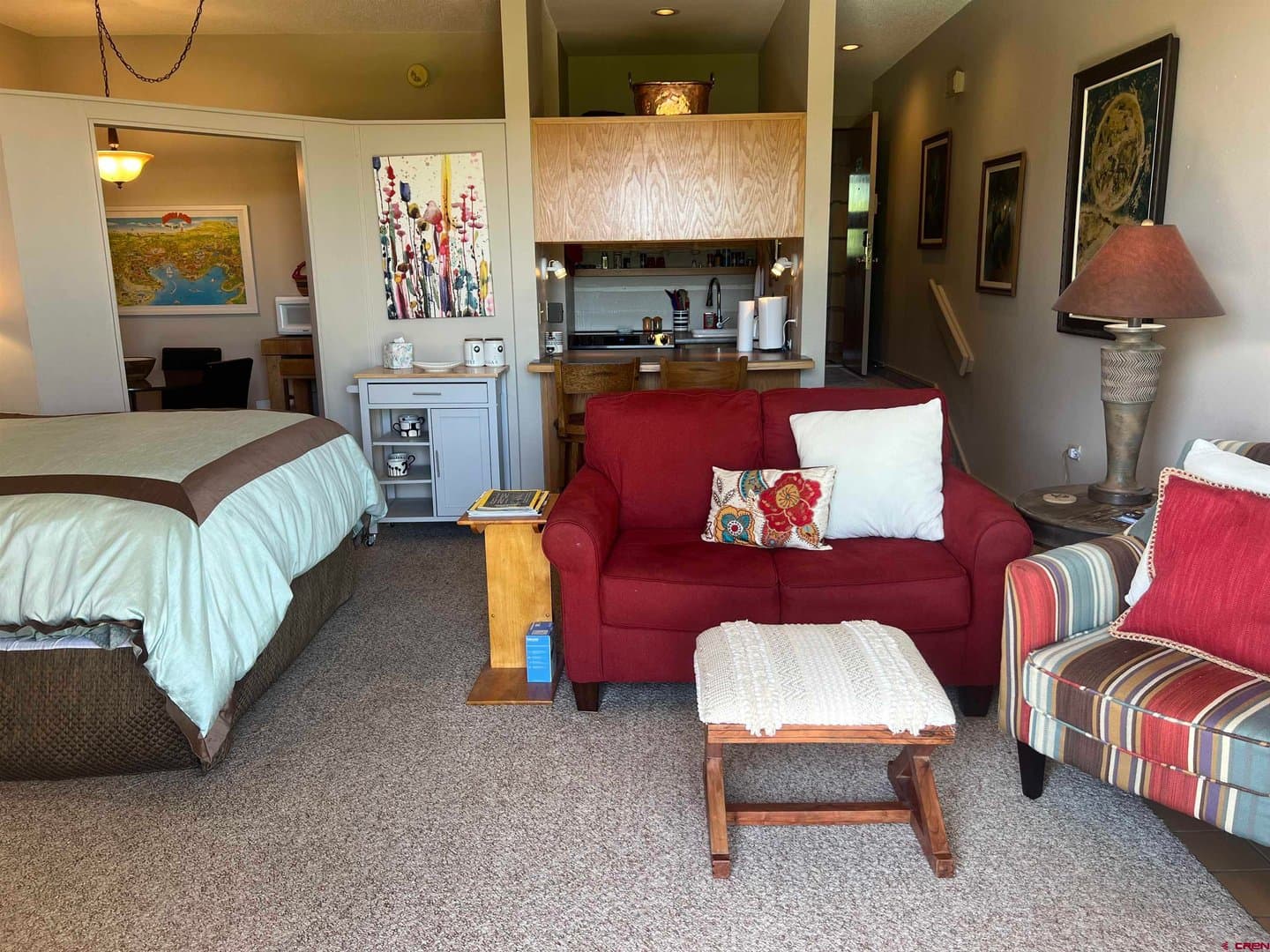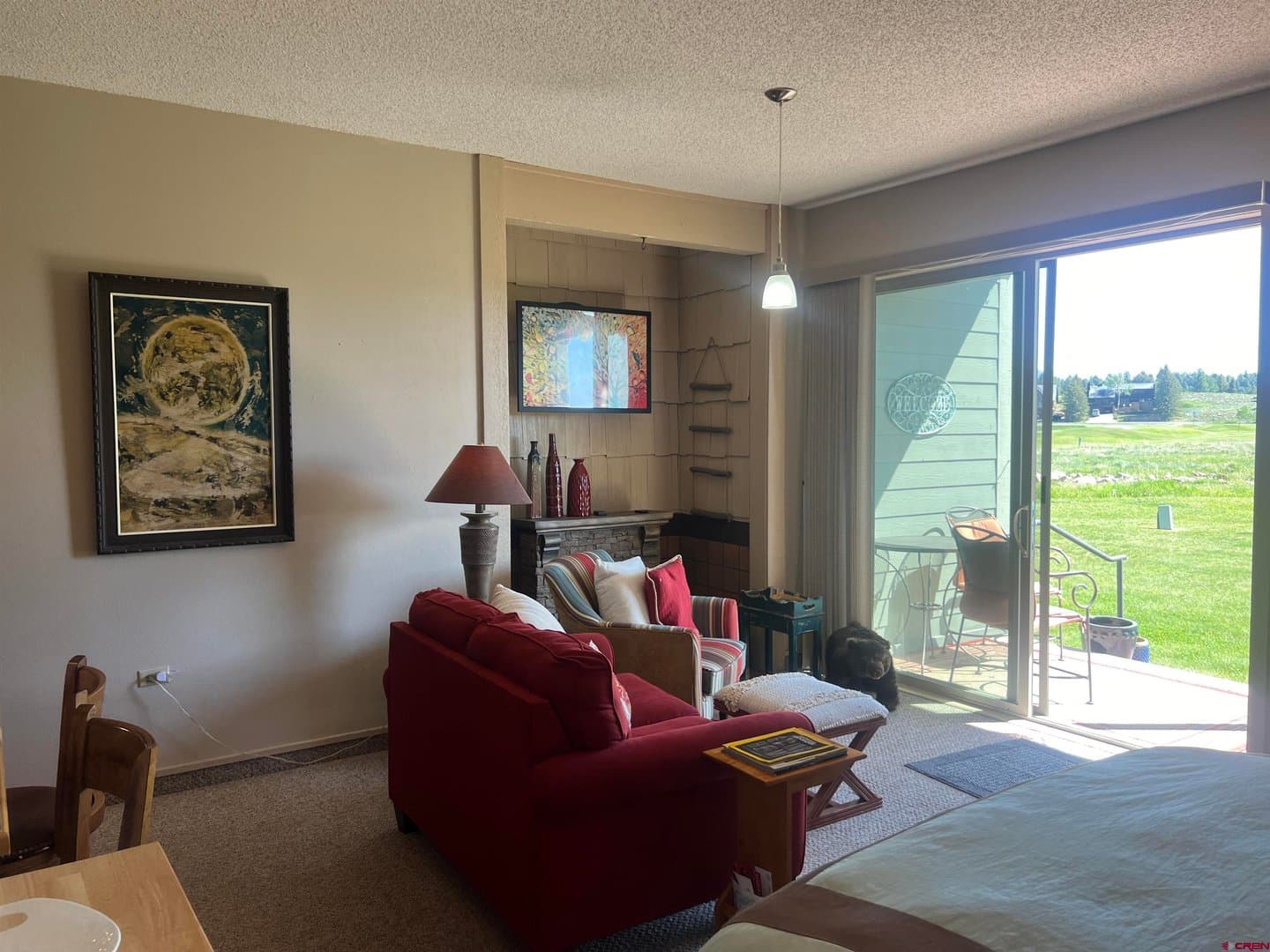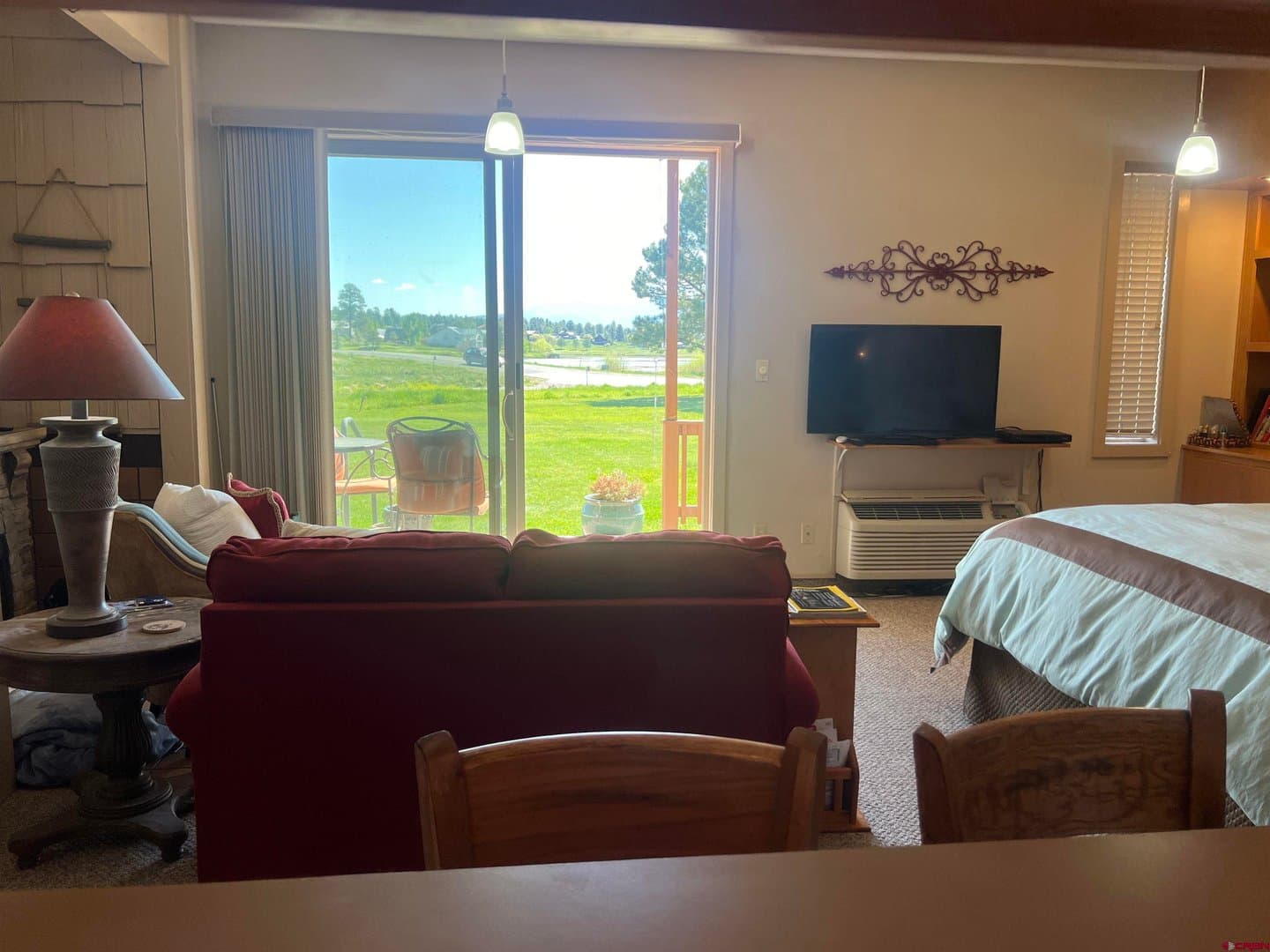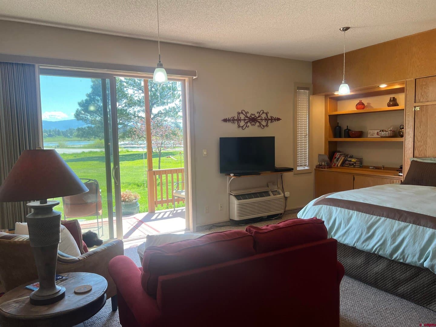 Welcome to your serene retreat in Pagosa Springs, CO! This charming efficiency condo unit offers Pinon Lake and mountain views to the east. The open-concept living space is designed for maximum functionality and comfort, featuring a cozy sleeping area, a well-equipped kitchenette, and a full bathroom and a washer and dryer. A brand new large sliding glass door allows the sunshine to fill the unit with natural light and provide stunning vistas of the surrounding landscape. Step outside to the covered patio to enjoy the peaceful ambiance and take in both the East and North Range views, where you can relax and soak in the magnificent mountain scenery. Conveniently located near outdoor recreational activities, dining, and shopping, this condo is the ideal base for exploring all that Pagosa Springs has to offer. Whether you're looking for a weekend getaway or a low-maintenance home in a picturesque setting, this efficiency condo is a perfect choice. Embrace the Pagosa Springs lifestyle and make this beautiful unit your own!