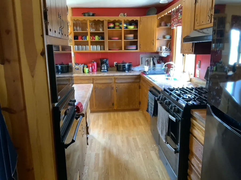 419 SF, it includes a laundry room (though no washer/dryer), one bedroom, one bathroom, and a kitchen. It has baseboard heat and a wood stove.