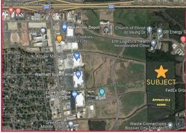 Situated in the heart of North Bossier lies a commercial tract, which boasts approximately 76.5 acres of premium land - a gem for prospective buyers. This prime piece of property, positioned strategically in a rapidly growing region, is teeming with potential and is especially ideal for ambitious industrial development projects. What defines this property is the exclusivity that it offers to potential buyers. Our sellers are open to the subdivision of this expansive area into smaller, more manageable tracts. Located east of the bustling George Dement Boulevard, this property finds itself nestled behind the well-known Kroger's. Retail developments have shaped the eastern horizon, lending this location an undeniable commercial appeal. Barely a mile away from the busy I-220, it offers extensive connectivity options. The well-connected I-220 and I-49 interchange lies just an approximate 6 miles away.