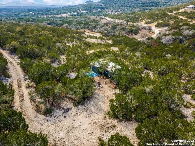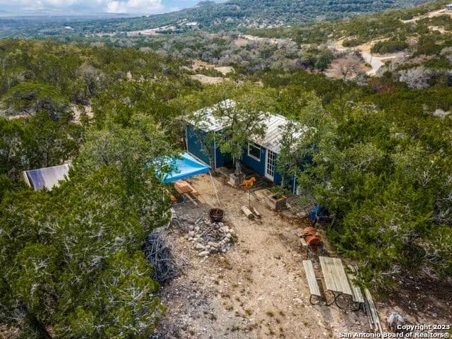 Seeking privacy? Own over 9 acres of beautiful Texas Hill Country! Enjoy the stunning country views, wide open spaces, and abundant American Smoke, Madrone and Oak trees. Calling all hunters and nature lovers; wildlife and deer feeders on-site. This 9.37 acres is partially fenced, has gated entrance into driveway, unfinished 392 sq ft cabin with solar panels to run lights and compost toilet. Peaceful and serene with tons of potential. Bring your builder and build your dream home in this beautiful, country subdivision! Close to Medina Lake and Bandera shopping.