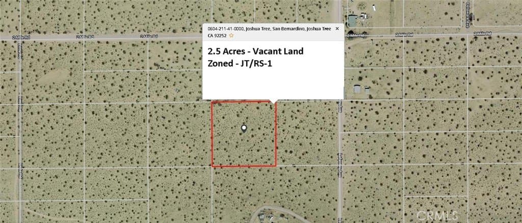 ***Come VIEW and MAKE an OFFER TODAY! Affordable LAND OPPORTUNITY located in scenic Joshua Tree CA. The 2.5 acre parcel is zoned JT/RS-1 and is ideal for anyone looking to develop their own personal ranch or recreation area and enjoy the world famous desert night sky/sunsets. The lot is flat/level and close to utility lines. Secluded location yet not far from Hwy 62 and Joshua Tree town center. A definite must see opportunity before it's too late.***