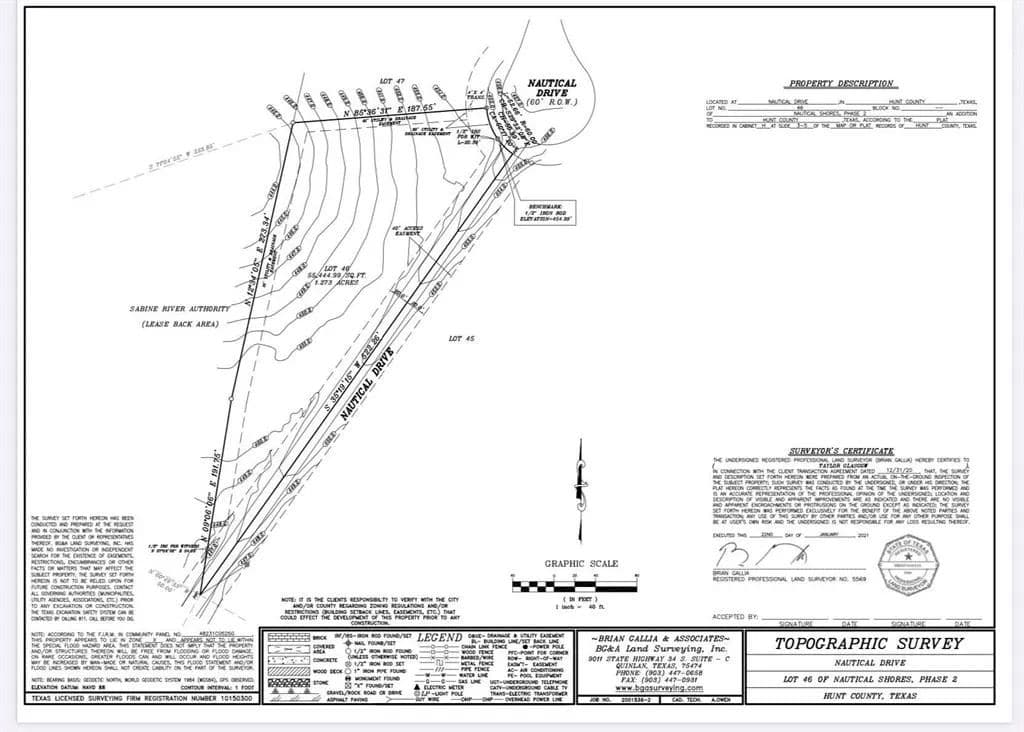 Located less than one hour from Dallas, this beautiful 1.27 acre waterfront homesite is located in the exclusive Nautical Shores neighborhood. Build your dream lake home, dock for your boat, and get ready to enjoy lake living! Spectacular lake views, beautiful sunsets, one of the best fishing lakes, and so much more! Exclusive use of the private 2.21 acre leaseback with 400 feet of shoreline from the SRA for $64 a year. Lot 46A on map. Bring your own builder, no manufactured homes. Yellow lines are approximate & include the leaseback portion. See map in pictures. GPS to 6990 CR 3516, Quinlan, TX 75474, this should get you to the entrance. Water and electric installed. Septic tank will need to be installed. One story homes must be at least 1200 sq ft and 2 stories at least 1800 sq ft. Survey is in the document section but the leaseback portion is not on the survey. Seller has cut down trees at the best building site per engineering. Engineering docs are available per request.