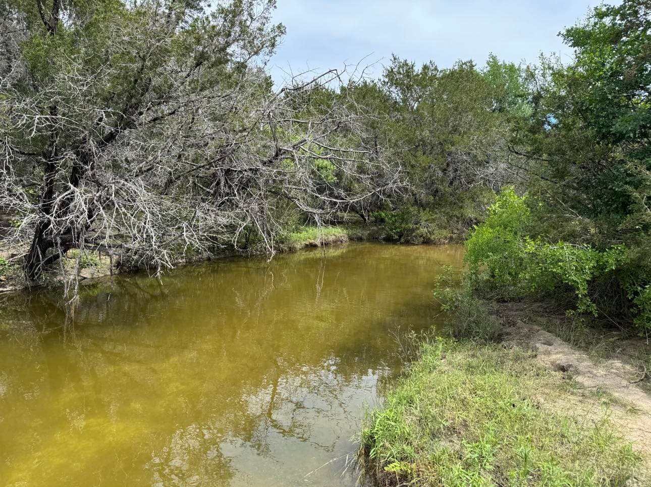 One of the most stunning features of the ranch is a nice flowing spring-fed creek with a rock bottom that holds water year-round. The mixed terrain of the property is a blend of rolling hills, deep valleys, and high mesas, providing breathtaking views from every angle. The ranch is heavily wooded in some parts, with a mix of post oaks, cedar, and mesquite trees, while other parts are open fields, perfect for recreation.