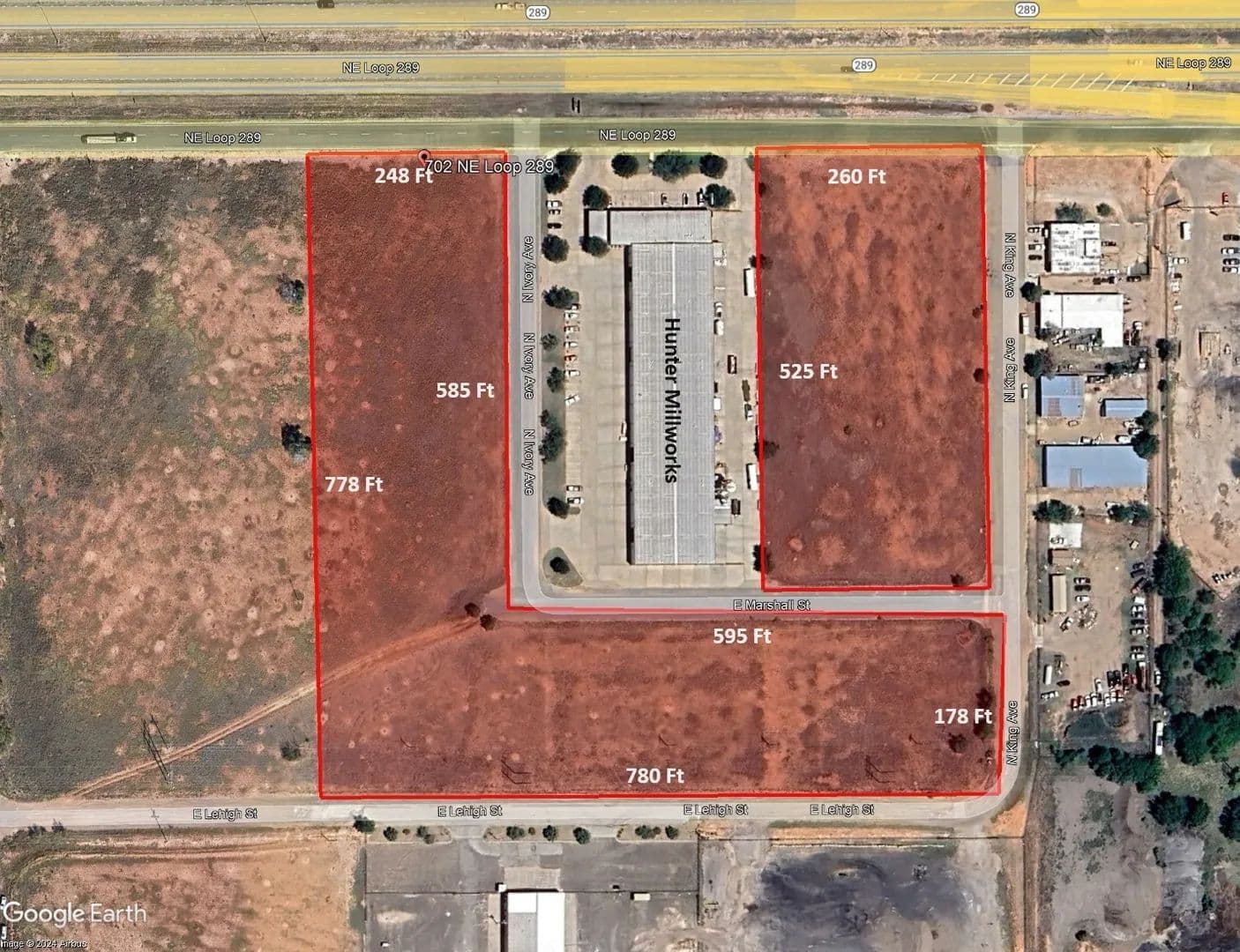 10.46 Acres for Land Loop 289 Frontage Split into two lots - east and west of Hunter Millworks