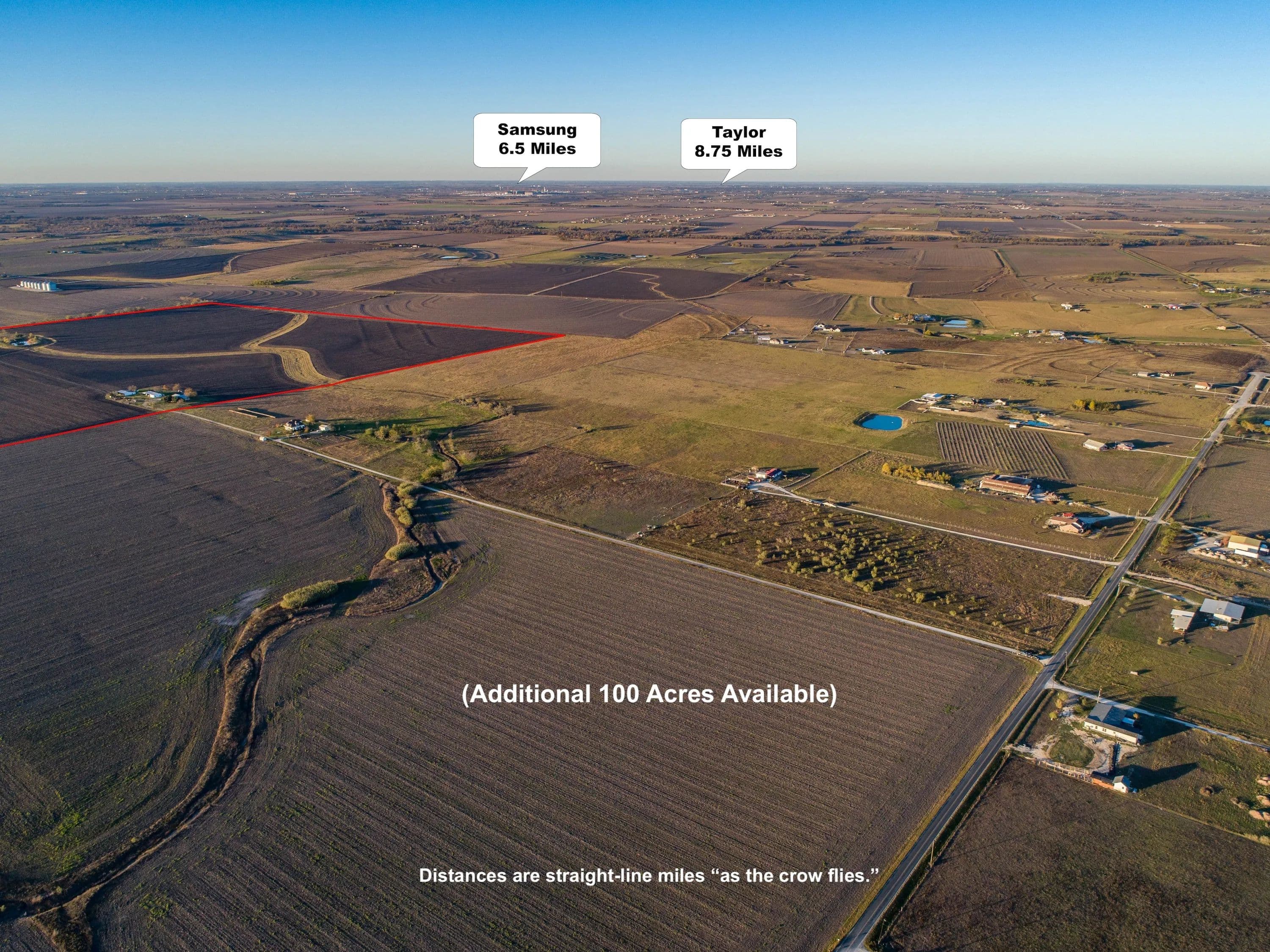 Located in the rapidly growing area southwest of Taylor and minutes away from the massive new Samsung factory, this 231-acre working farm is an investment opportunity in this eastern path of exponential growth in the Austin region. Located within miles of major new industry such as Samsung, Tesla, and the Pflugerville Amazon distribution site, this property provides an opportunity for a long-term hold or with an eye to nearer-term development. With minor elevation changes, the property has panoramic views of the surrounding picturesque farms, the developing countryside, and new ranchettes.