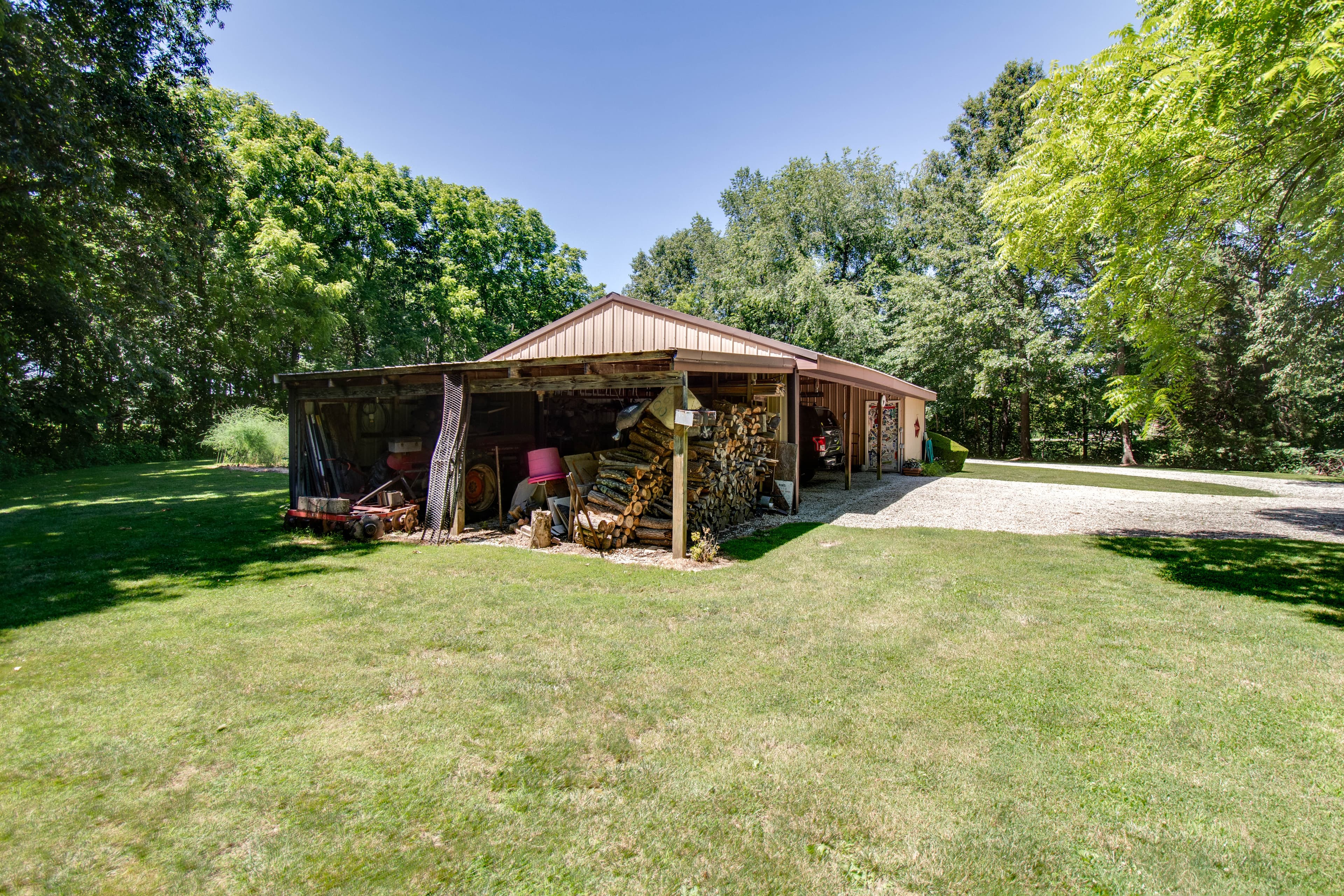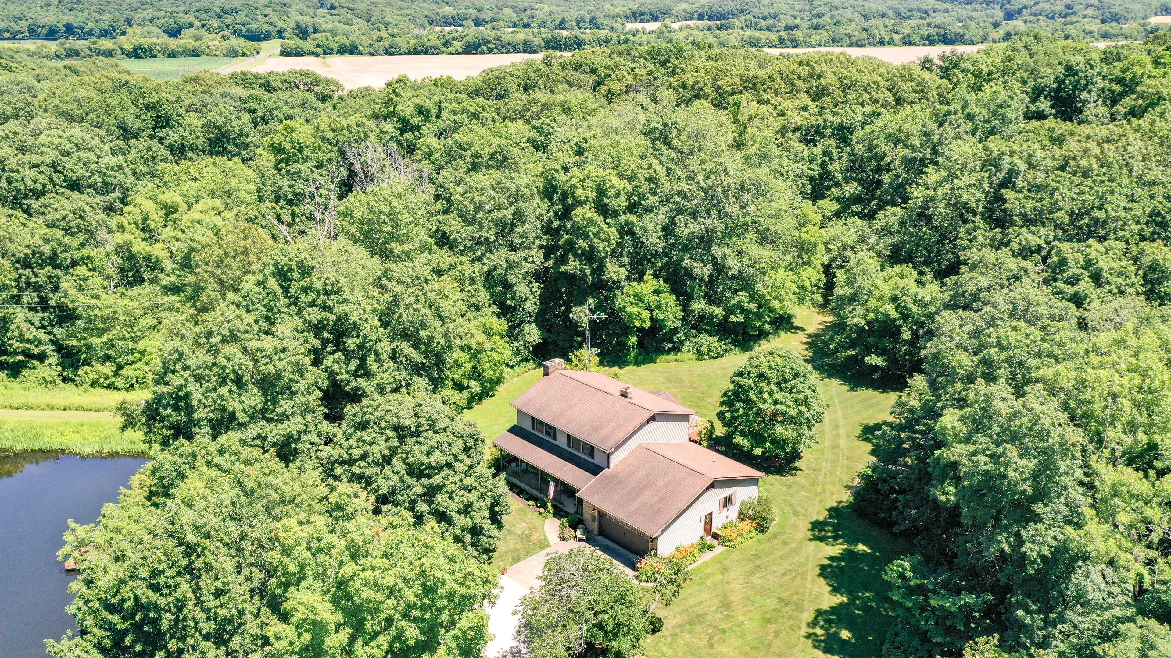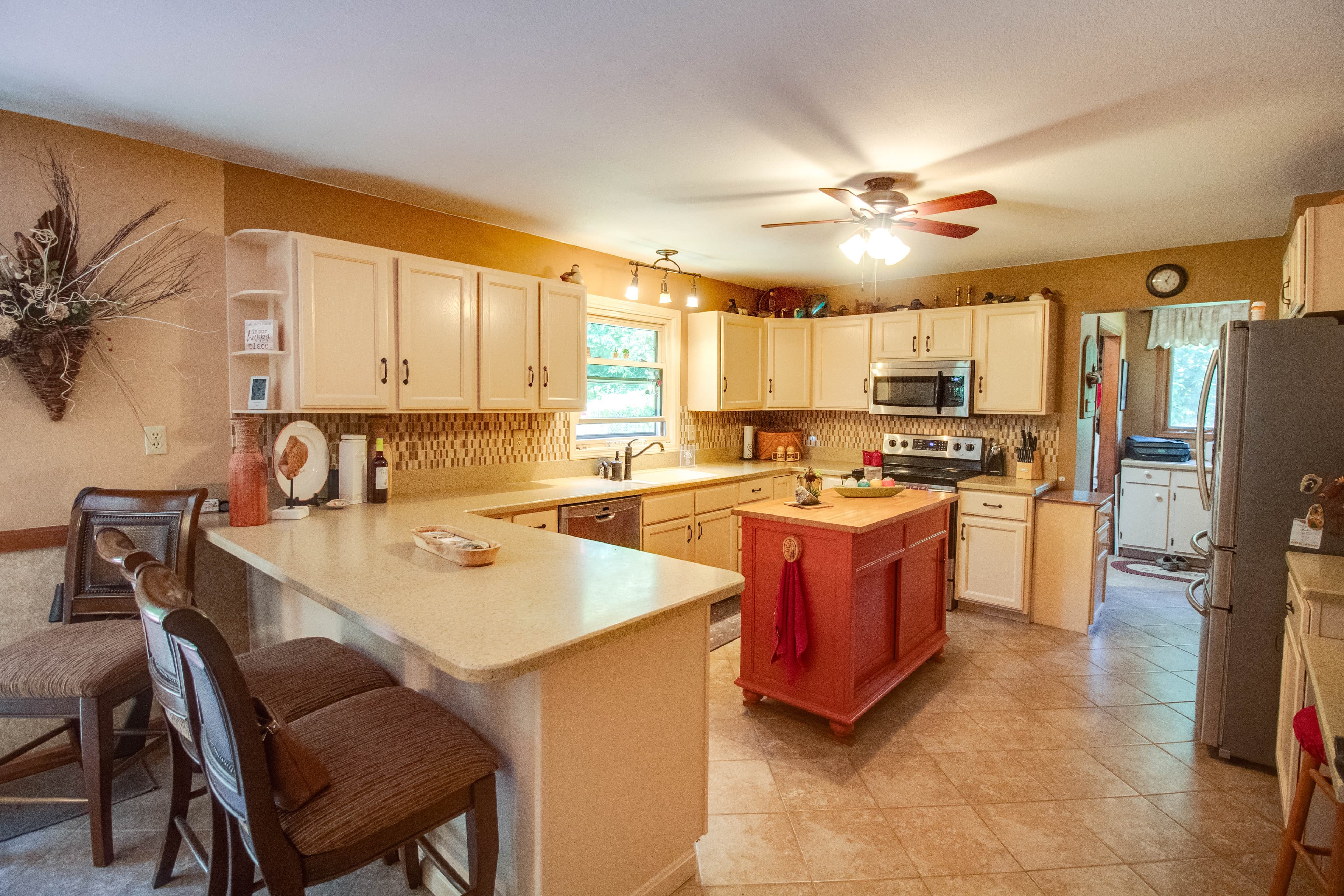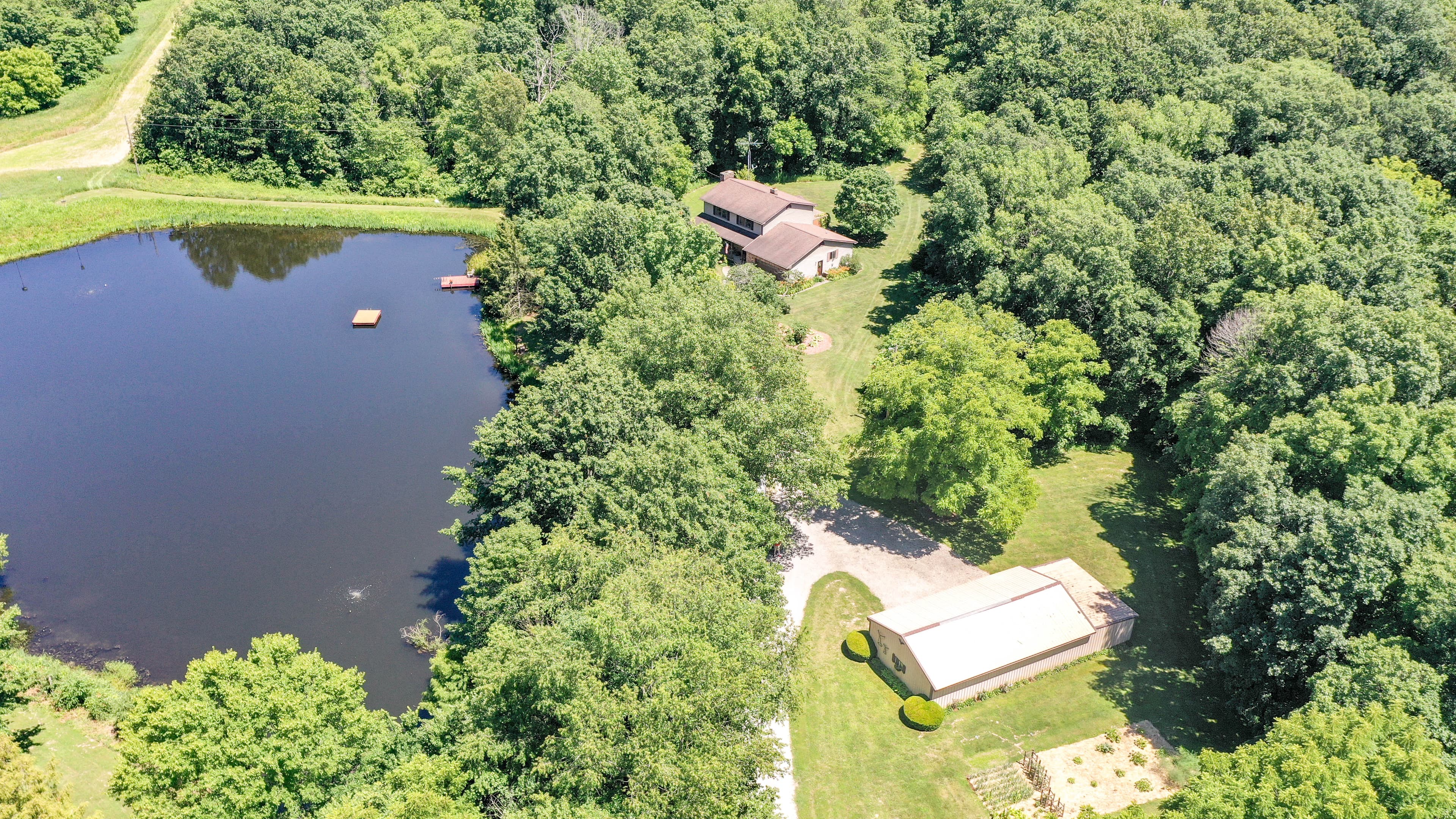 Get your feet on the ground of this 18.52+/- acre property and picture the possibilities. This parcel features a 4 bedroom, 2 and a half bath home, 4-bay, metal, detached workshop space, & a fully stocked pond. The beautiful home features an inviting entryway, and large living room with wood burning fireplace. The living room walks out to screen in covered deck. The breakfast room leads to the well equipped kitchen complete with stainless appliances and pantry. The breakfast room also walks out to pergola covered deck. Convenient main floor laundry/mud room with sink. Spacious upper level primary bedroom with 3/4 bath. The full partially finished, poured concrete lower level boasts a family room, office space, workshop area, and plenty of storage. Gas furnace gas and water heater with an Energy King wood burning furnace as well. The 2 car attached garage measures 20x21. Fully stocked pond with bass and blue gill. Covered front porch. Septic with sand filter. Public water. Call today!