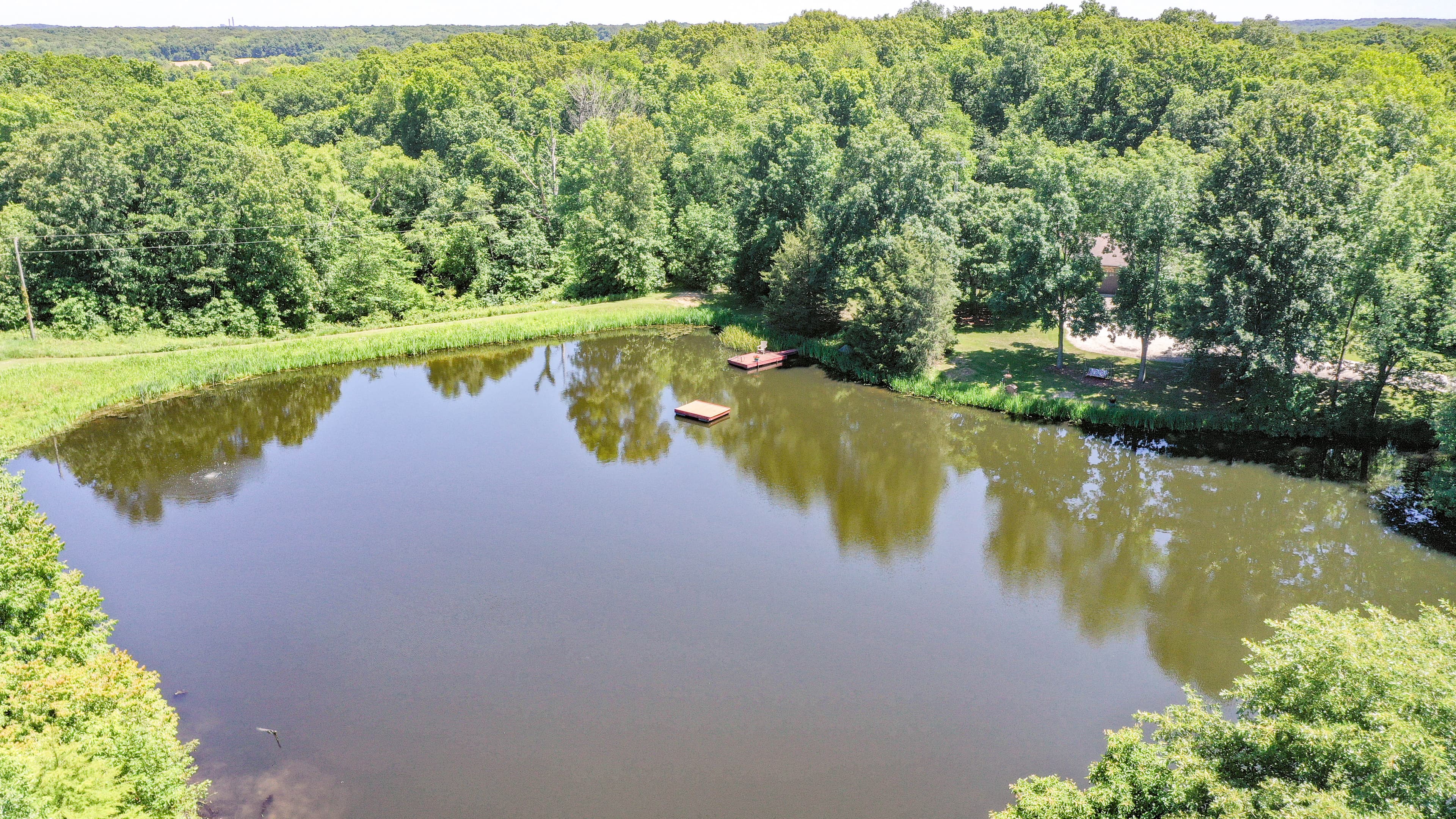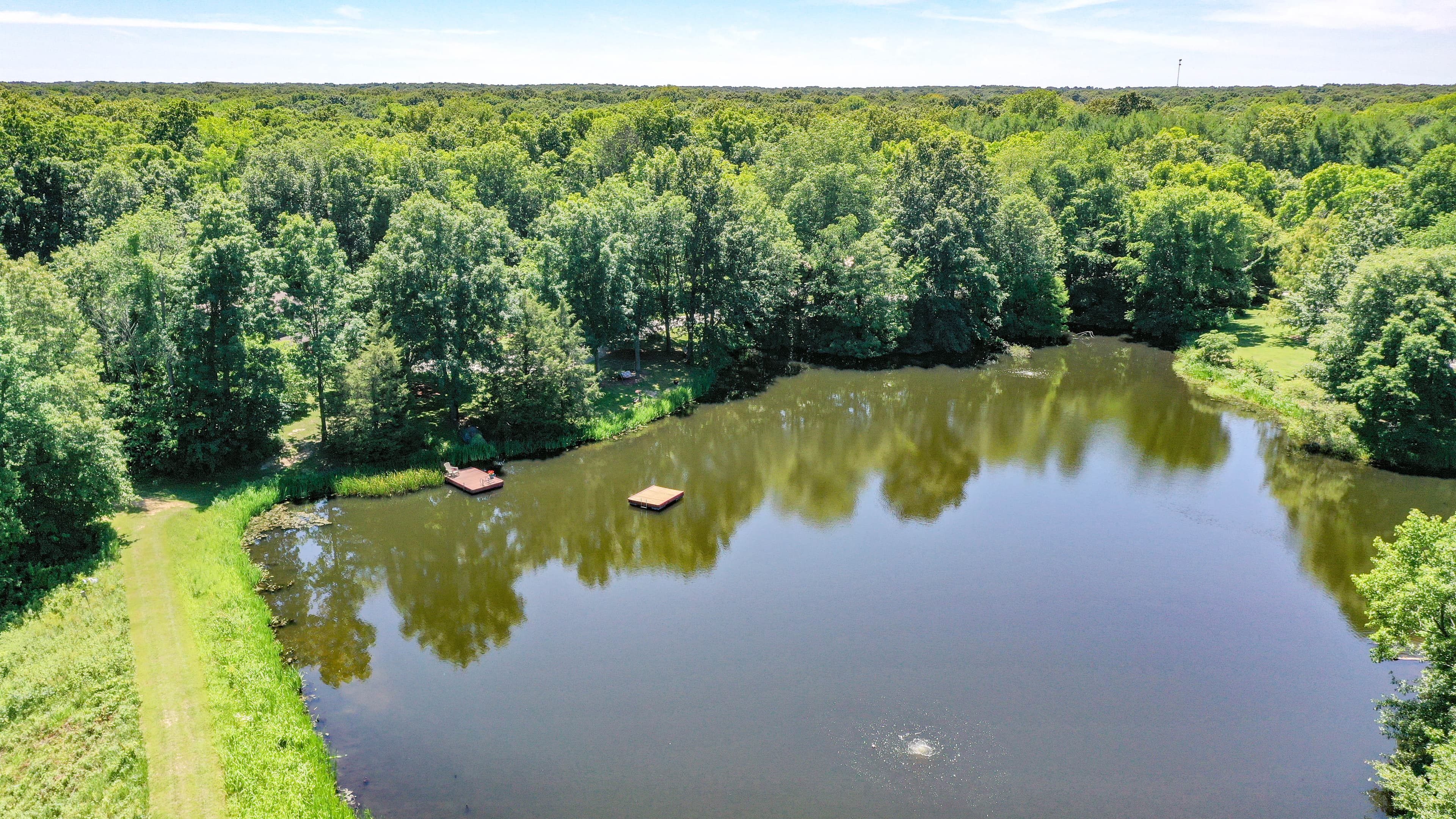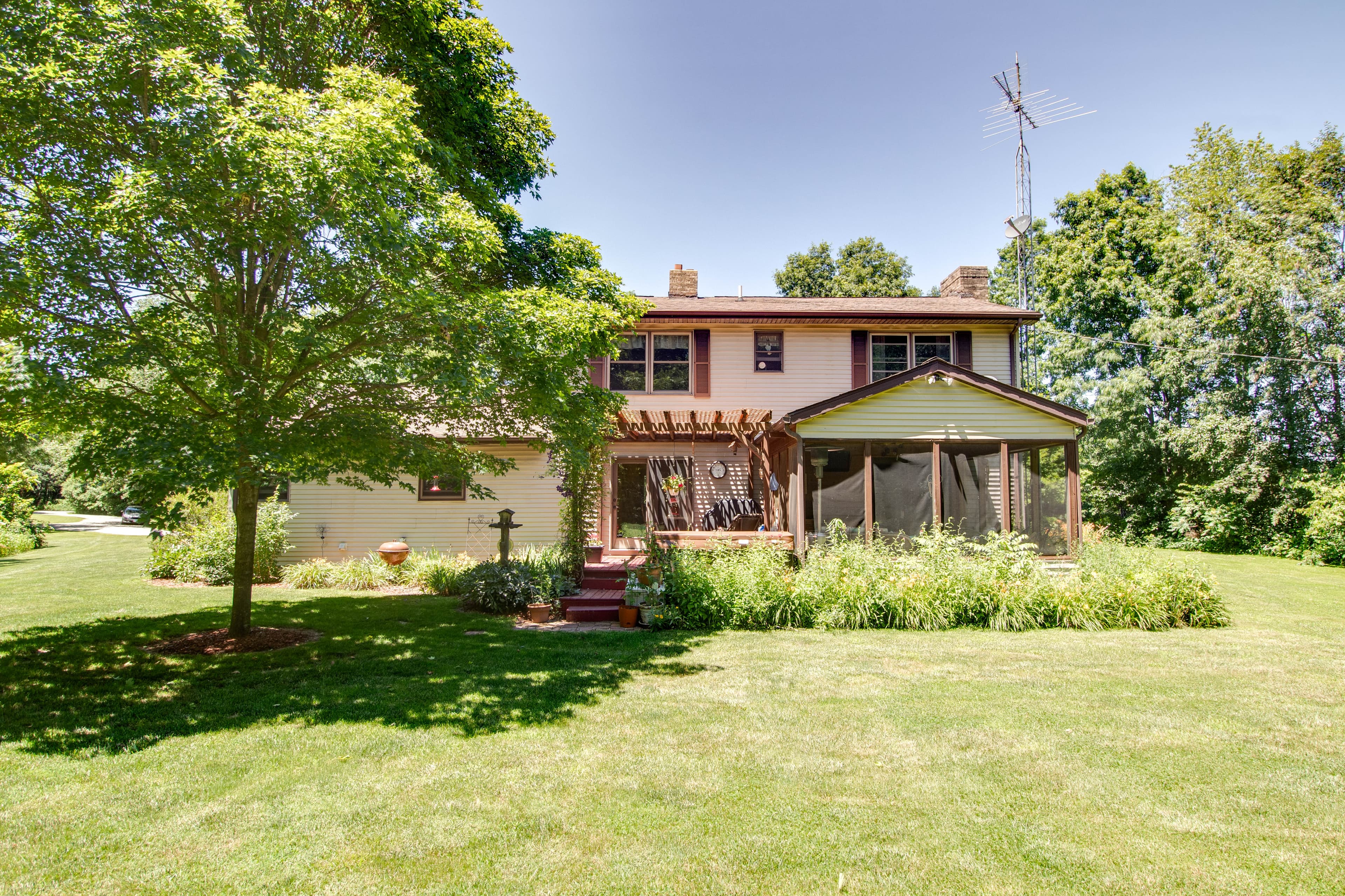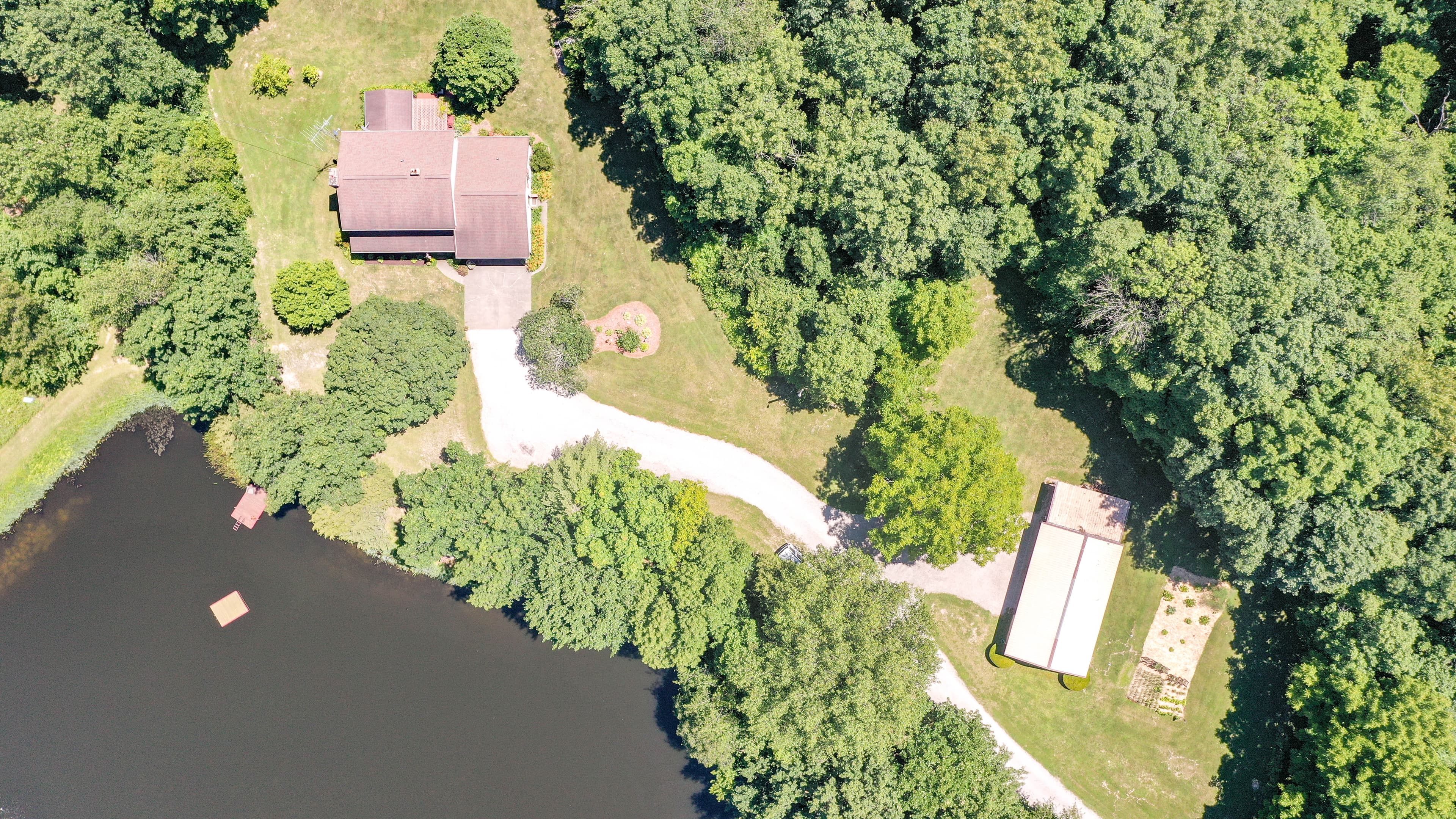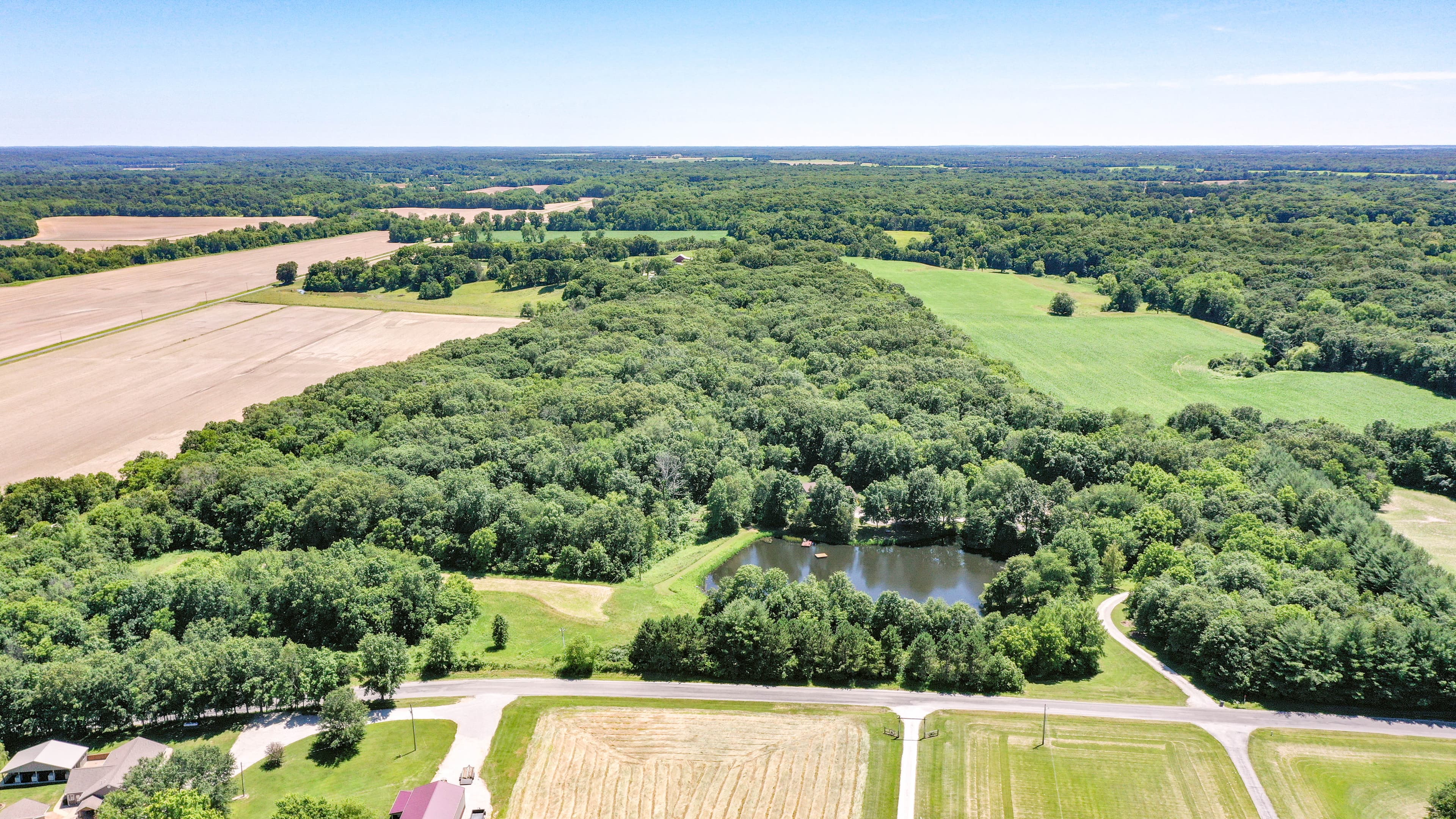 Get your feet on the ground of this 18.52+/- acre property and picture the possibilities. This parcel features a 4 bedroom, 2 and a half bath home, 4-bay, metal, detached workshop space, & a fully stocked pond. The beautiful home features an inviting entryway, and large living room with wood burning fireplace. The living room walks out to screen in covered deck. The breakfast room leads to the well equipped kitchen complete with stainless appliances and pantry. The breakfast room also walks out to pergola covered deck. Convenient main floor laundry/mud room with sink. Spacious upper level primary bedroom with 3/4 bath. The full partially finished, poured concrete lower level boasts a family room, office space, workshop area, and plenty of storage. Gas furnace gas and water heater with an Energy King wood burning furnace as well. The 2 car attached garage measures 20x21. Fully stocked pond with bass and blue gill. Covered front porch. Septic with sand filter. Public water. Call today!