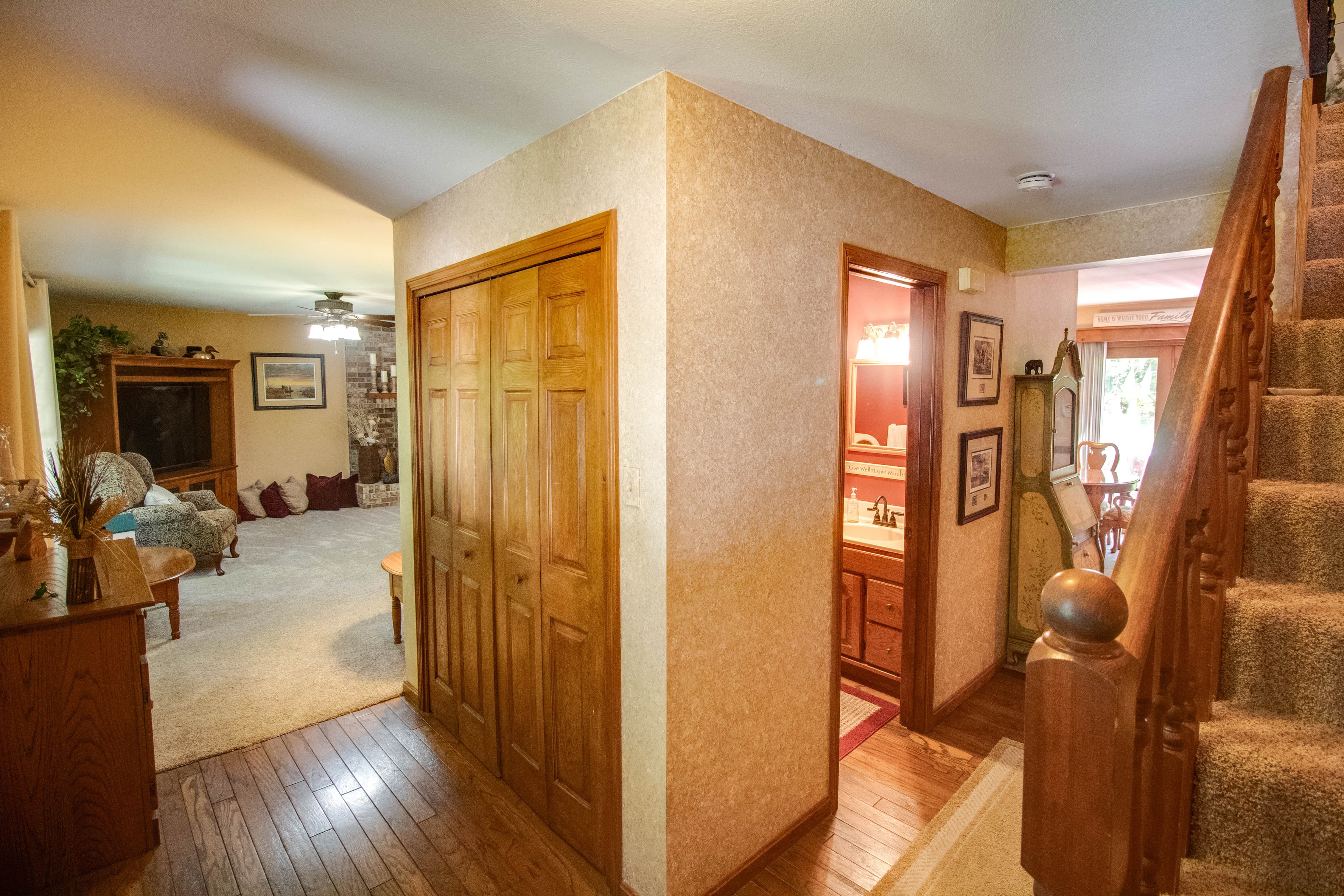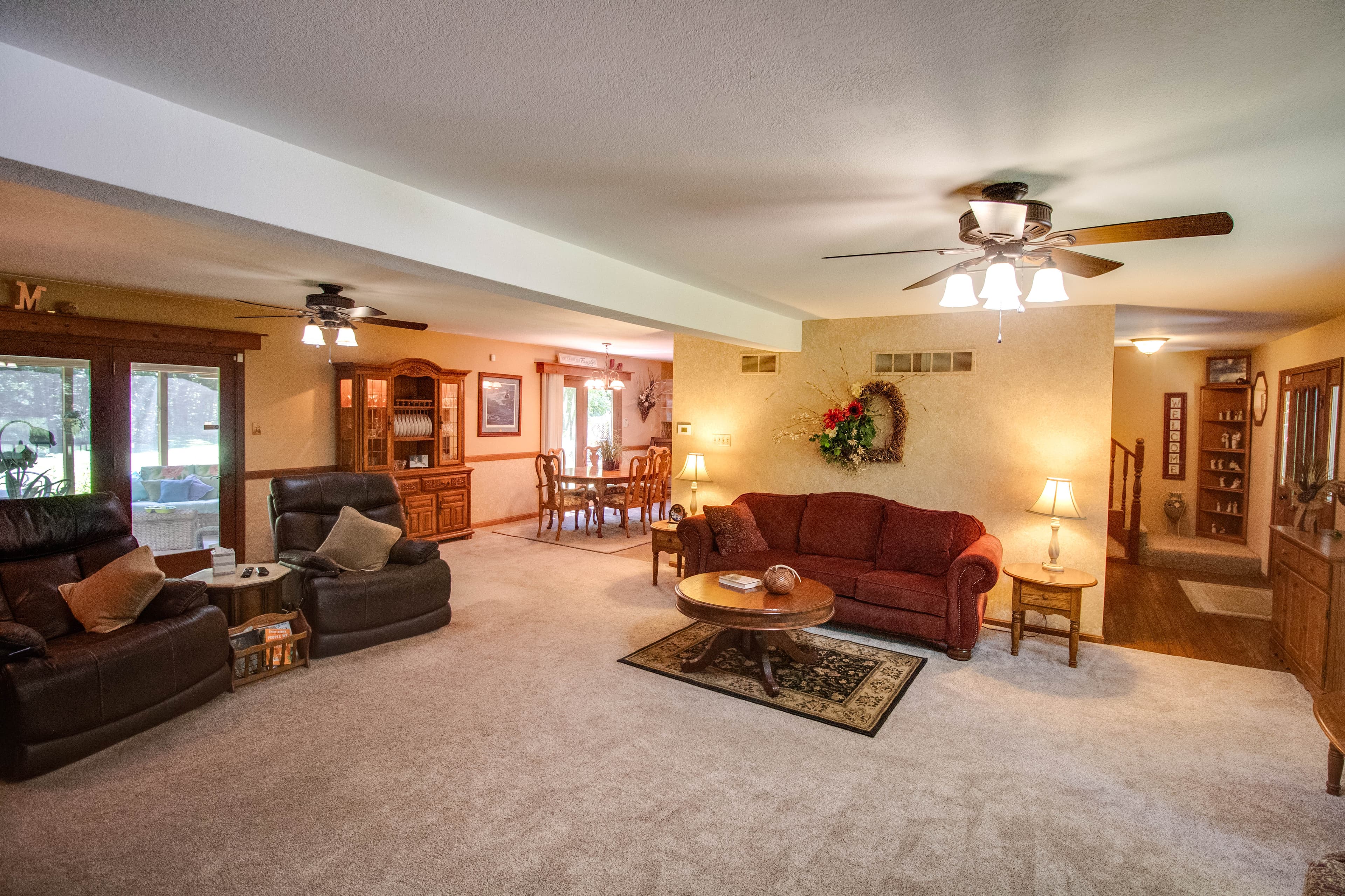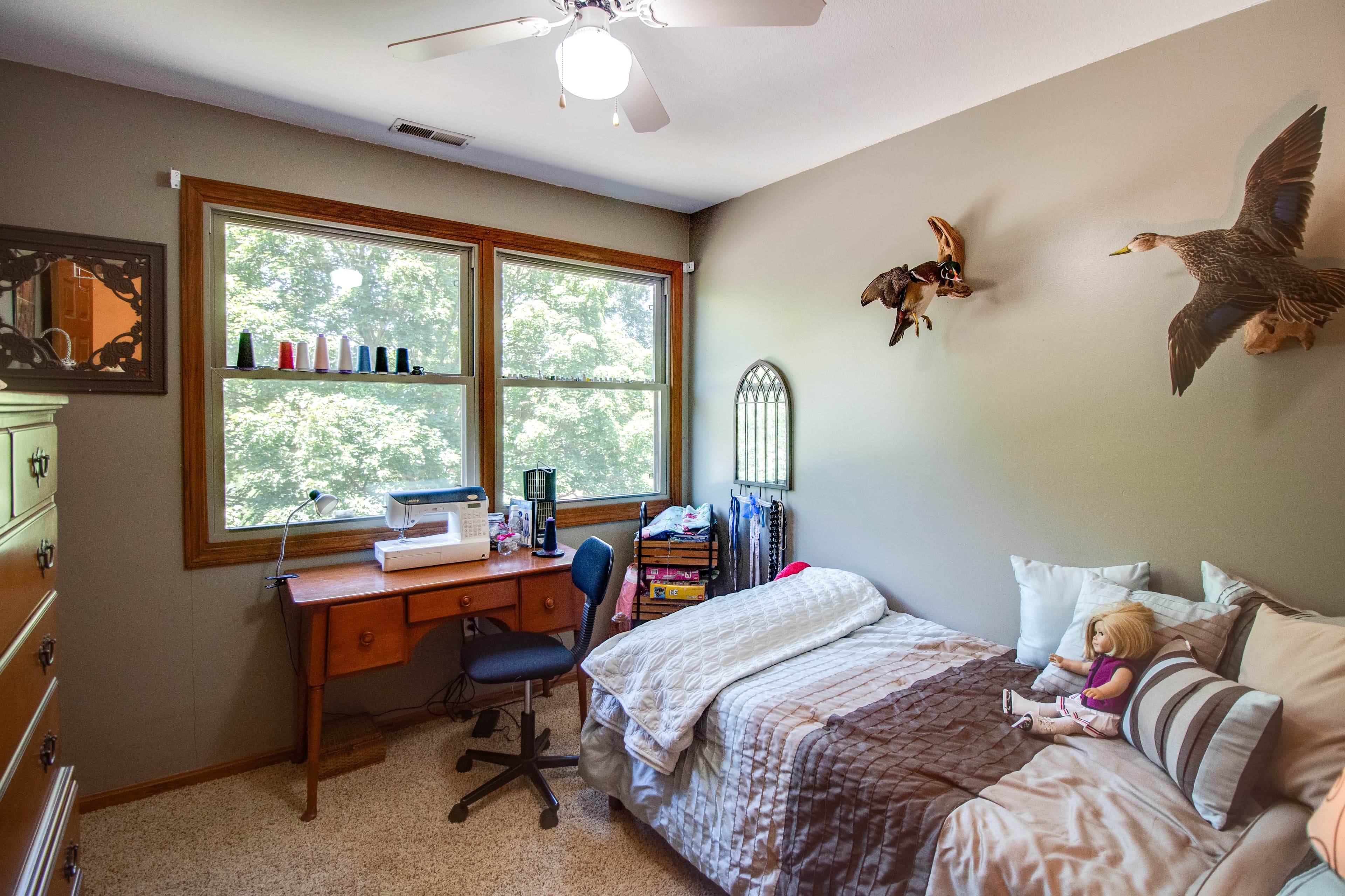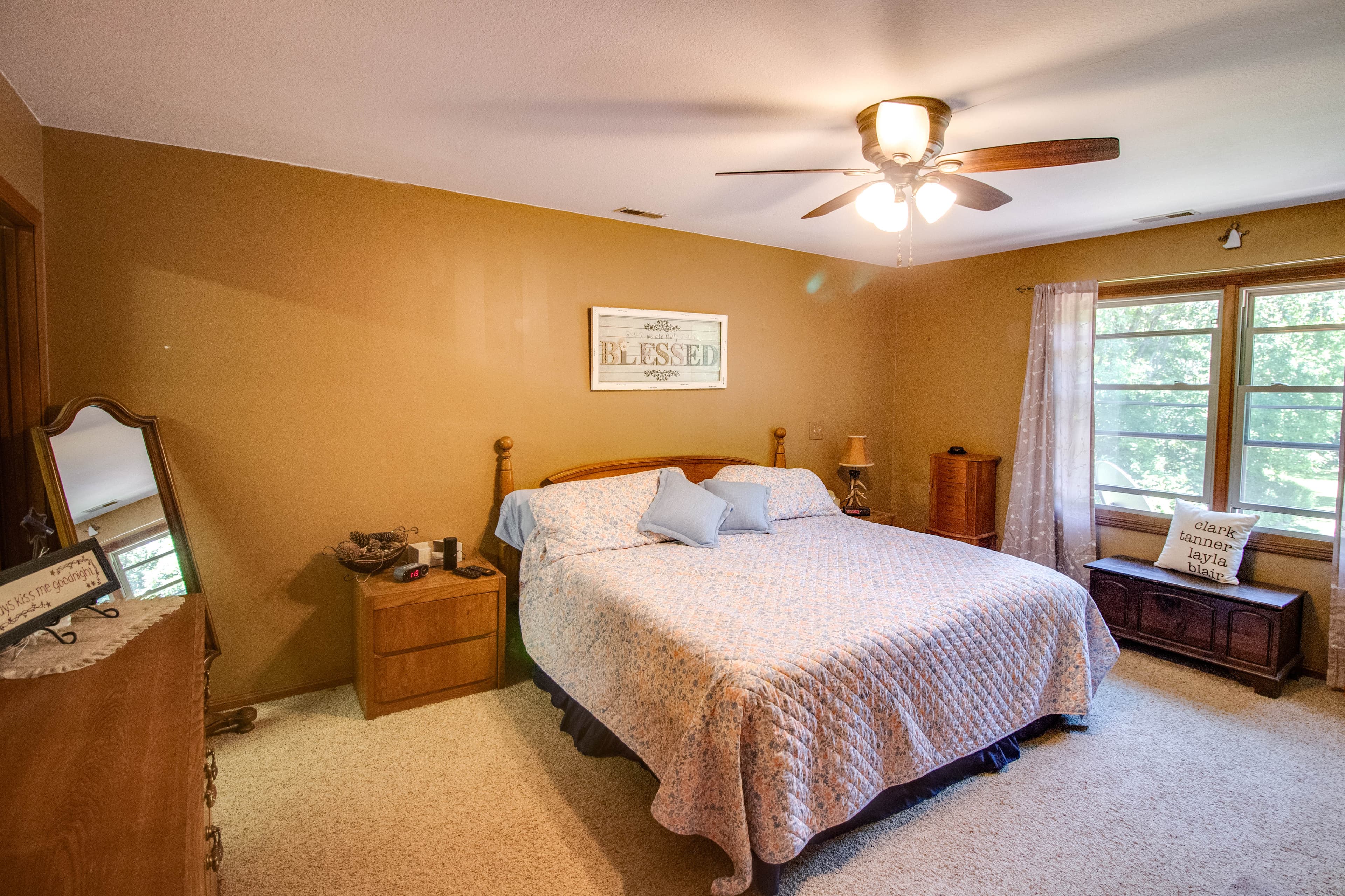Get your feet on the ground of this 18.52+/- acre property and picture the possibilities. This parcel features a 4 bedroom, 2 and a half bath home, 4-bay, metal, detached workshop space, & a fully stocked pond. The beautiful home features an inviting entryway, and large living room with wood burning fireplace. The living room walks out to screen in covered deck. The breakfast room leads to the well equipped kitchen complete with stainless appliances and pantry. The breakfast room also walks out to pergola covered deck. Convenient main floor laundry/mud room with sink. Spacious upper level primary bedroom with 3/4 bath. The full partially finished, poured concrete lower level boasts a family room, office space, workshop area, and plenty of storage. Gas furnace gas and water heater with an Energy King wood burning furnace as well. The 2 car attached garage measures 20x21. Fully stocked pond with bass and blue gill. Covered front porch. Septic with sand filter. Public water. Call today!