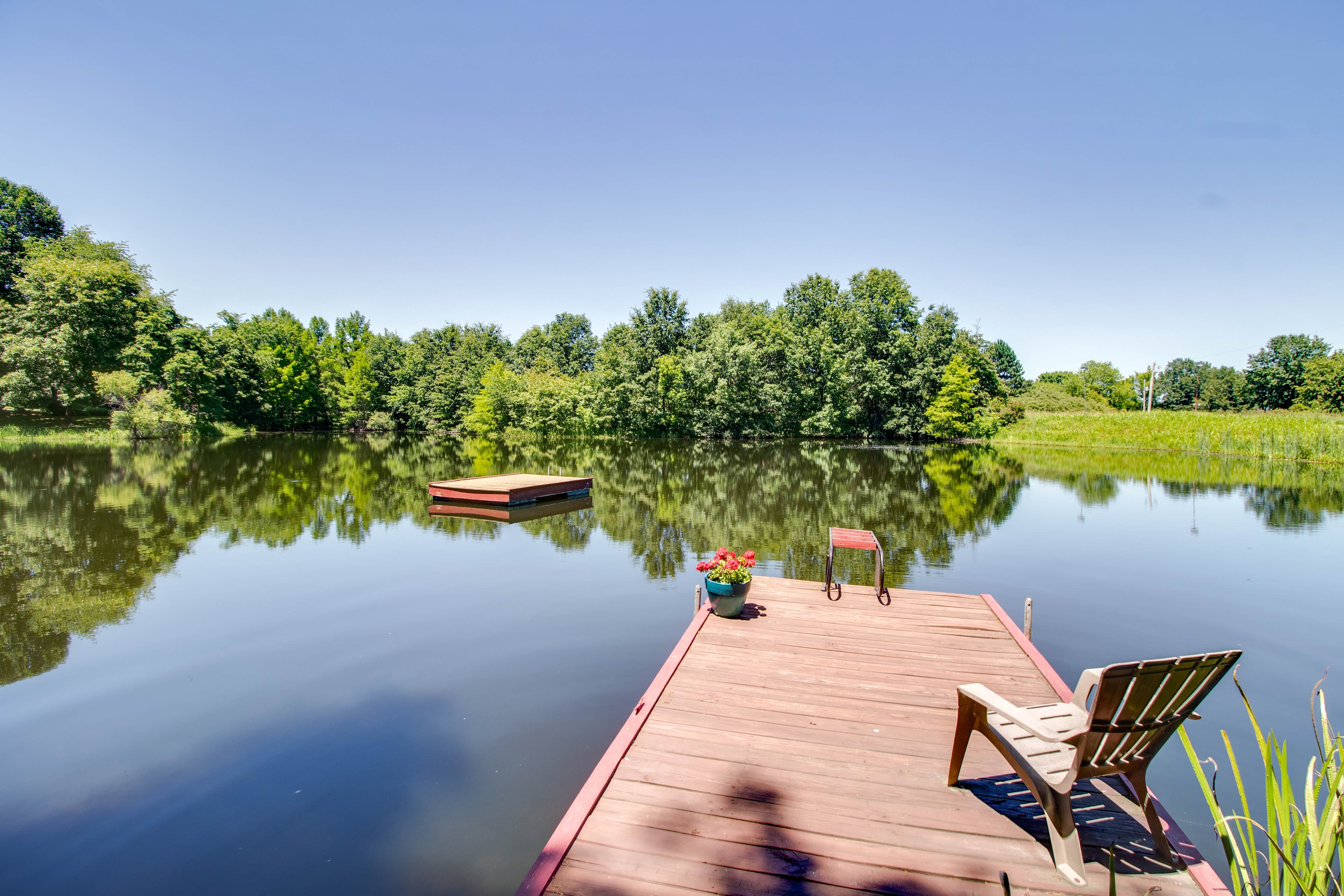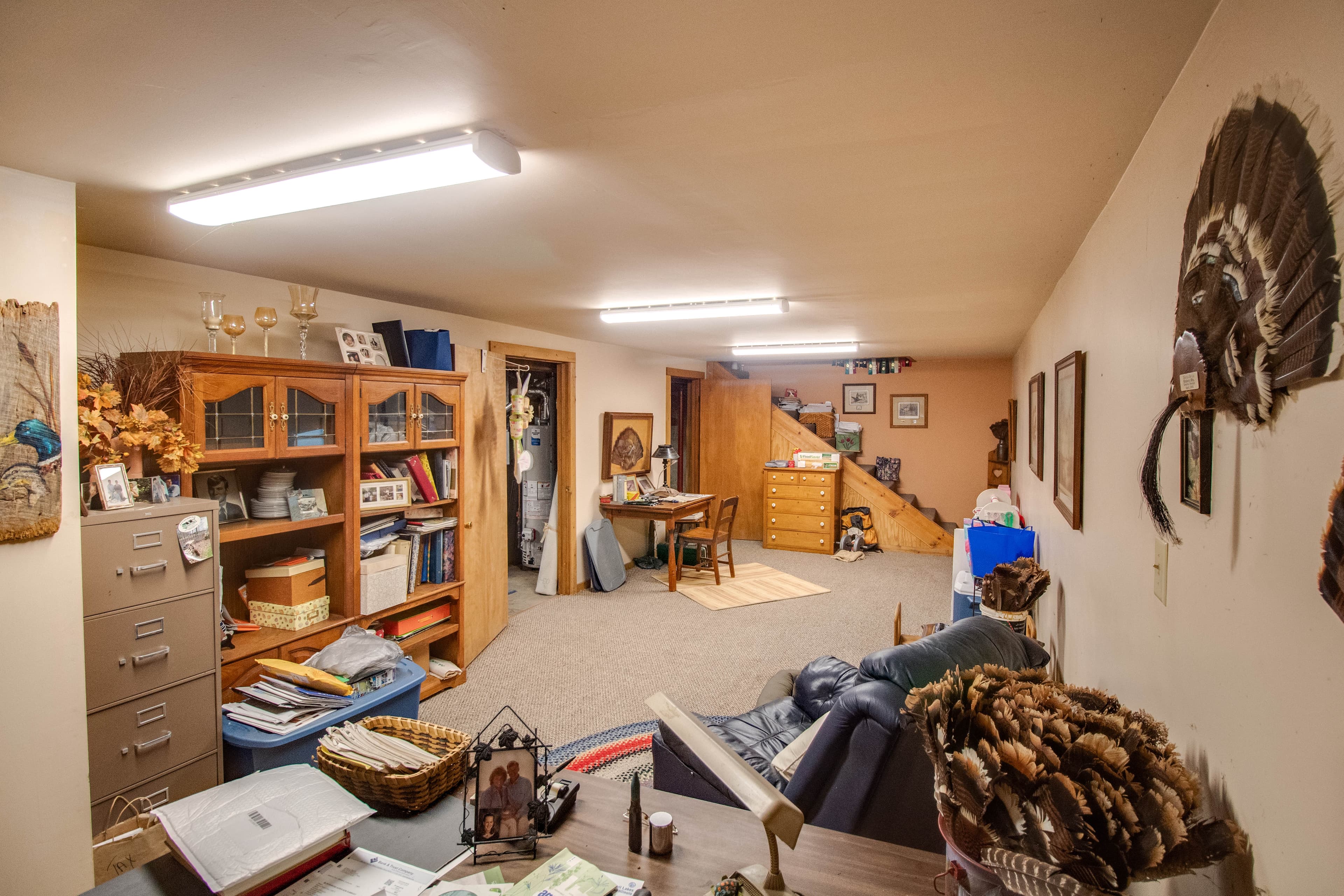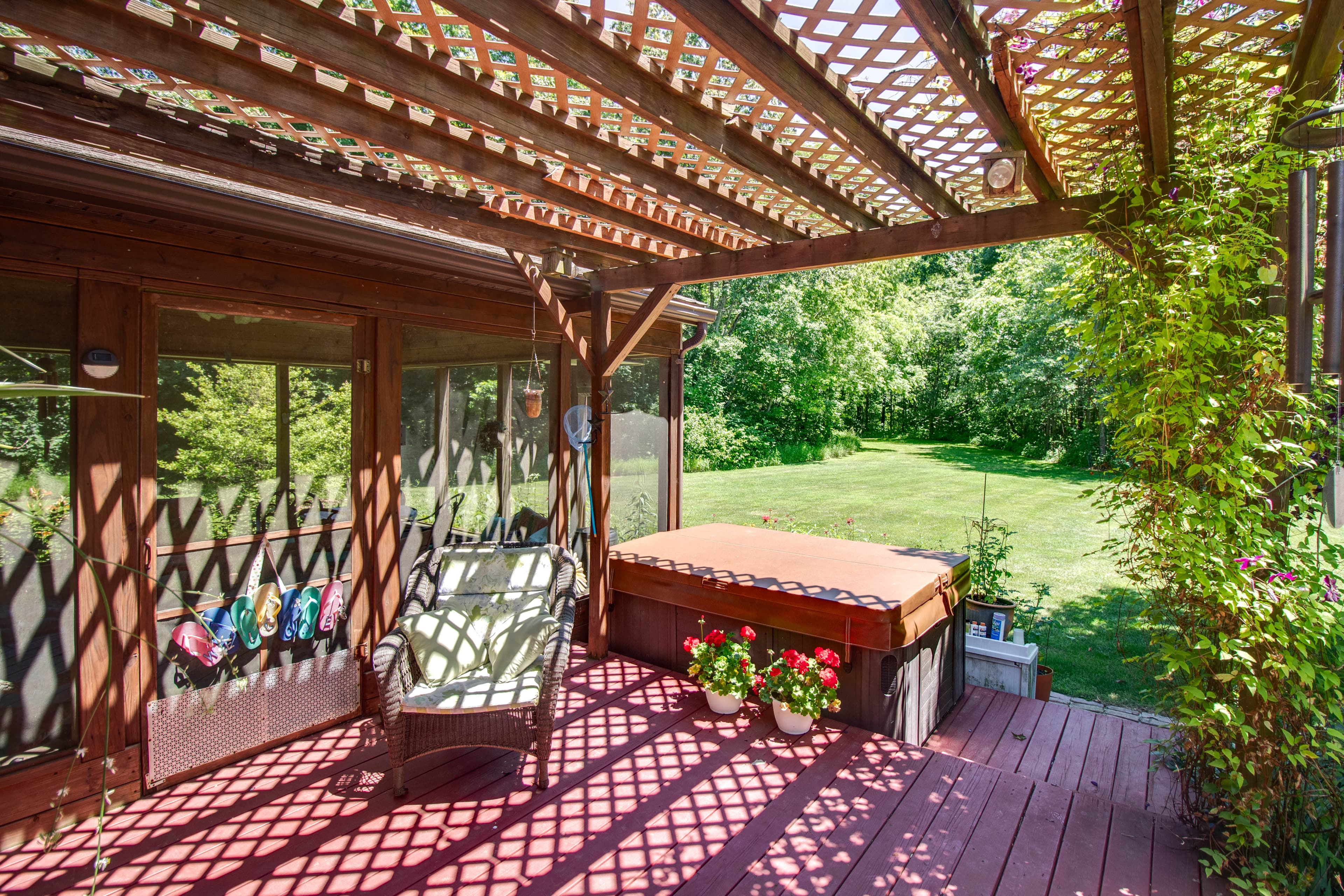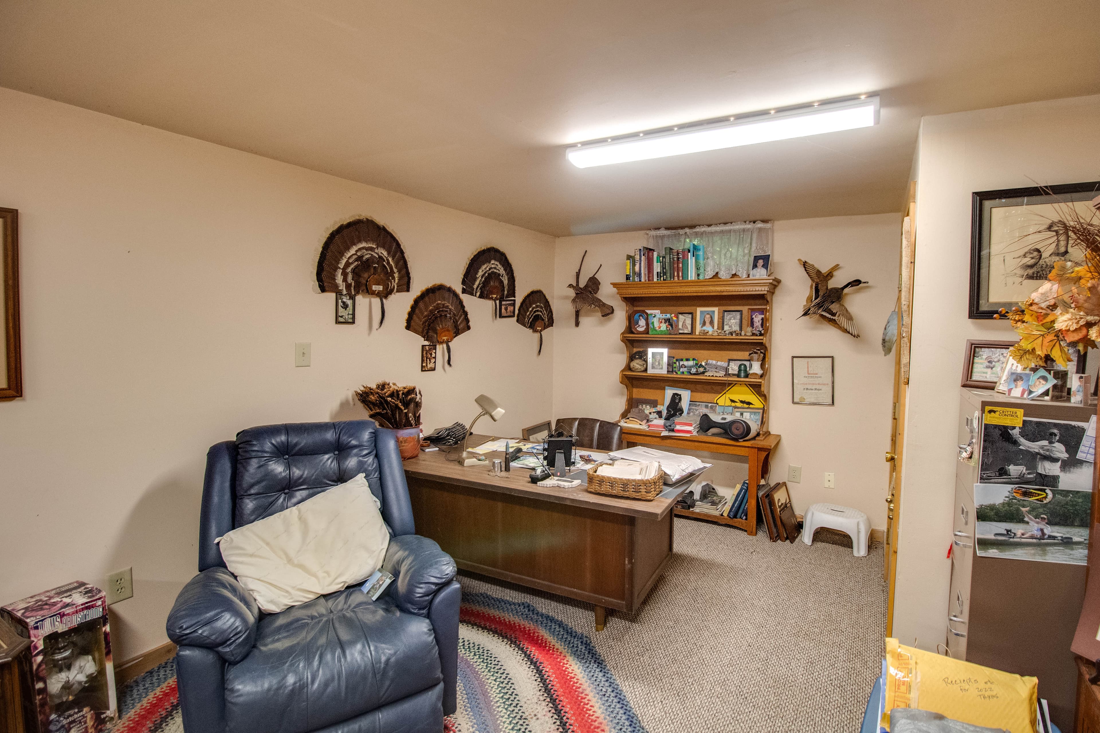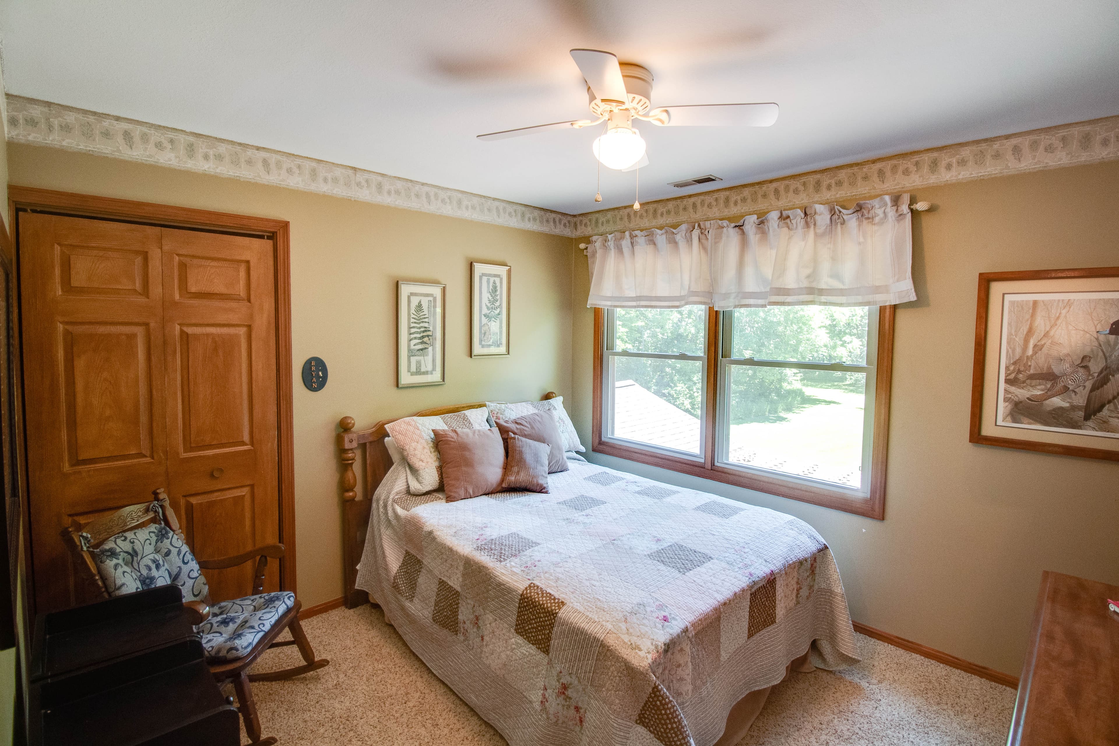 Get your feet on the ground of this 18.52+/- acre property and picture the possibilities. This parcel features a 4 bedroom, 2 and a half bath home, 4-bay, metal, detached workshop space, & a fully stocked pond. The beautiful home features an inviting entryway, and large living room with wood burning fireplace. The living room walks out to screen in covered deck. The breakfast room leads to the well equipped kitchen complete with stainless appliances and pantry. The breakfast room also walks out to pergola covered deck. Convenient main floor laundry/mud room with sink. Spacious upper level primary bedroom with 3/4 bath. The full partially finished, poured concrete lower level boasts a family room, office space, workshop area, and plenty of storage. Gas furnace gas and water heater with an Energy King wood burning furnace as well. The 2 car attached garage measures 20x21. Fully stocked pond with bass and blue gill. Covered front porch. Septic with sand filter. Public water. Call today!