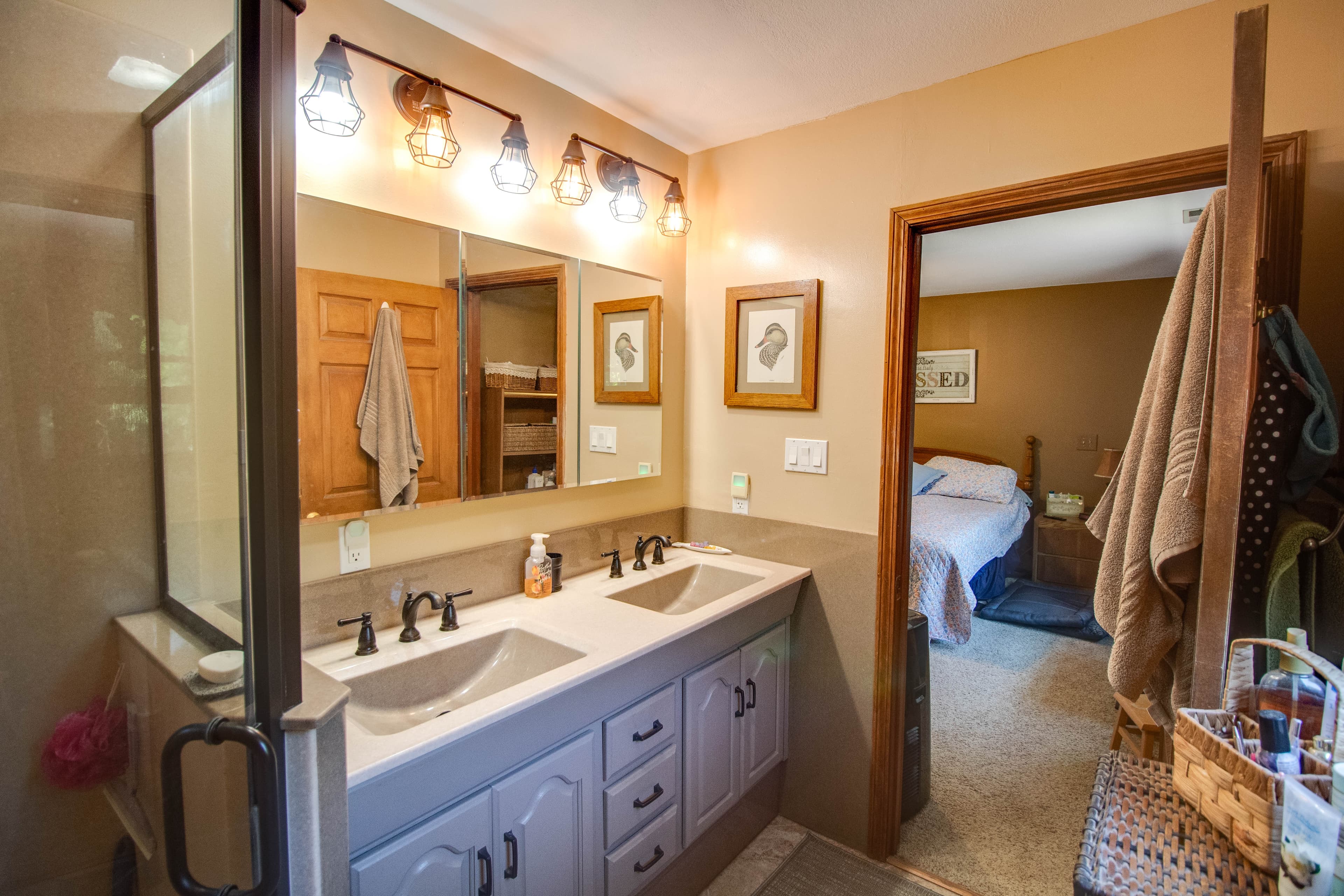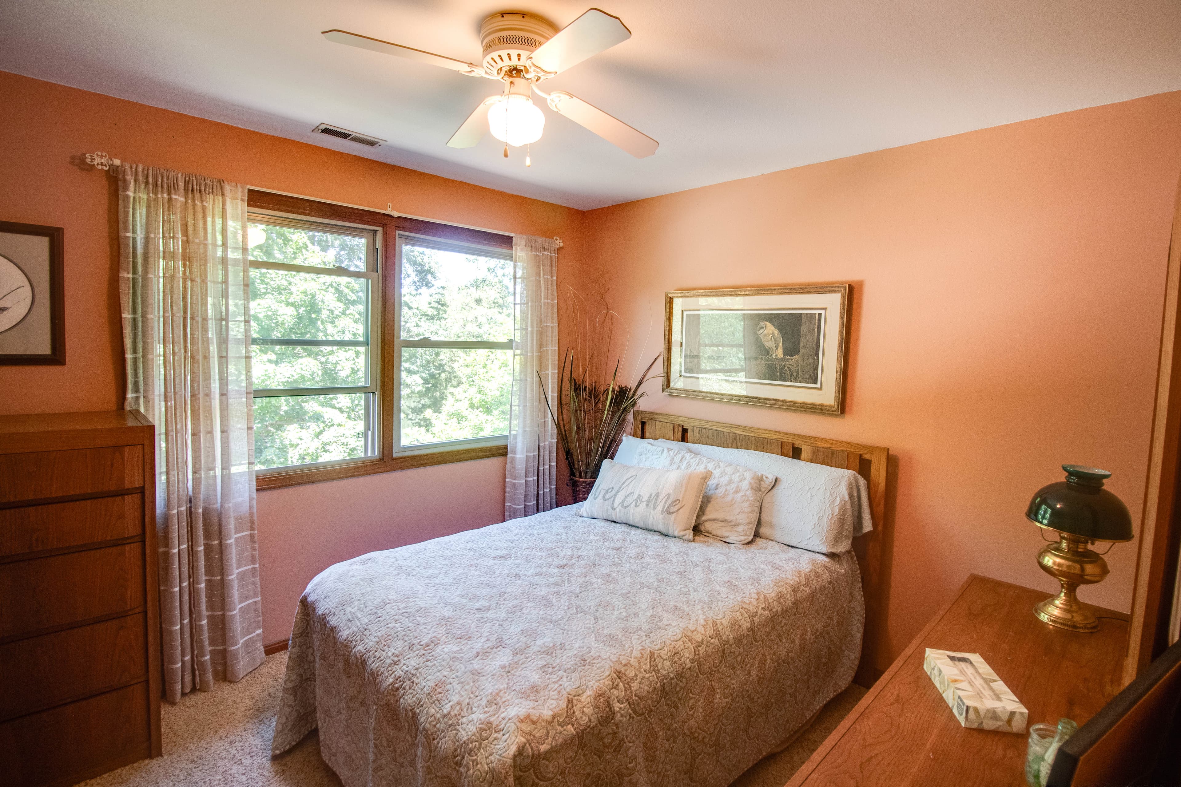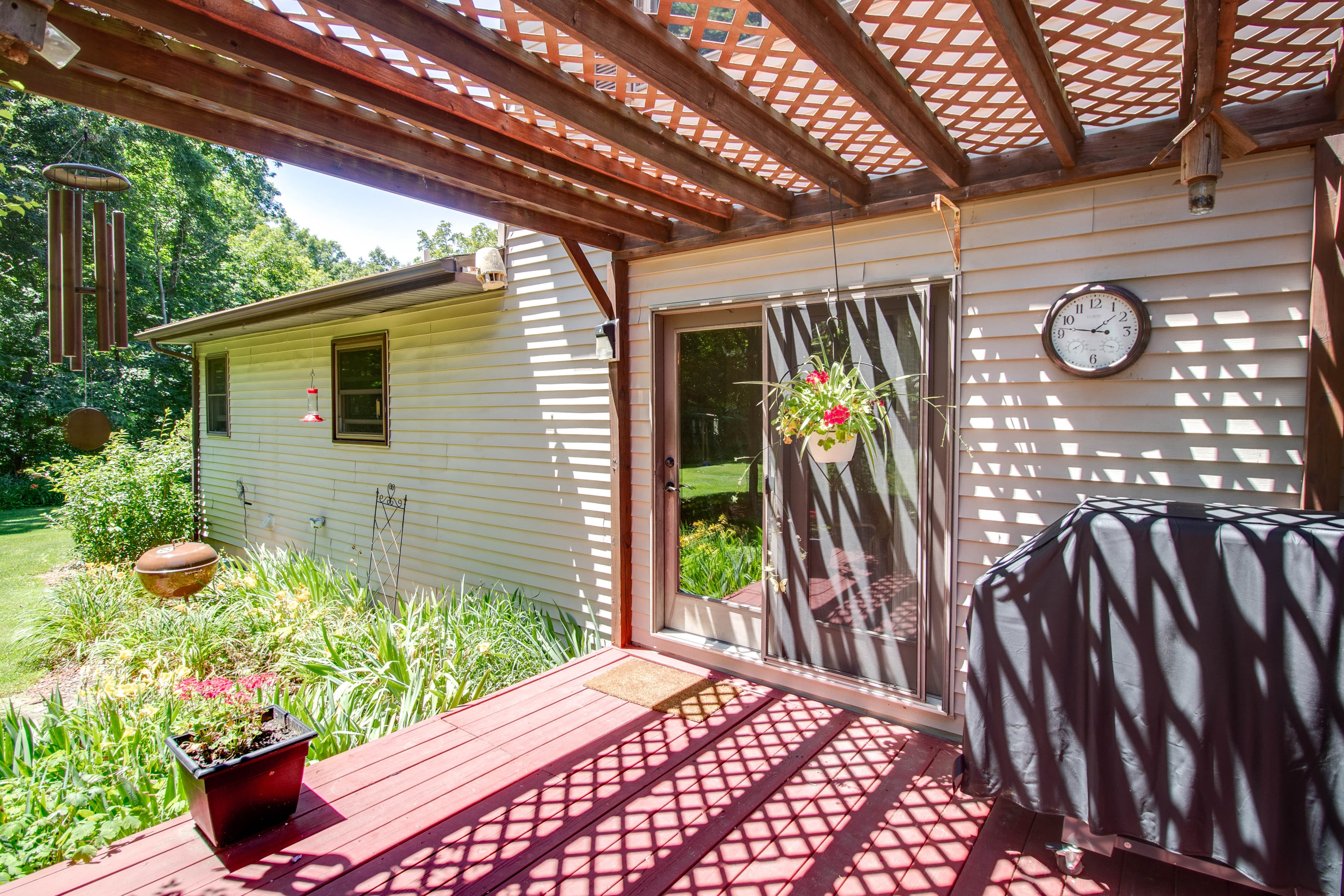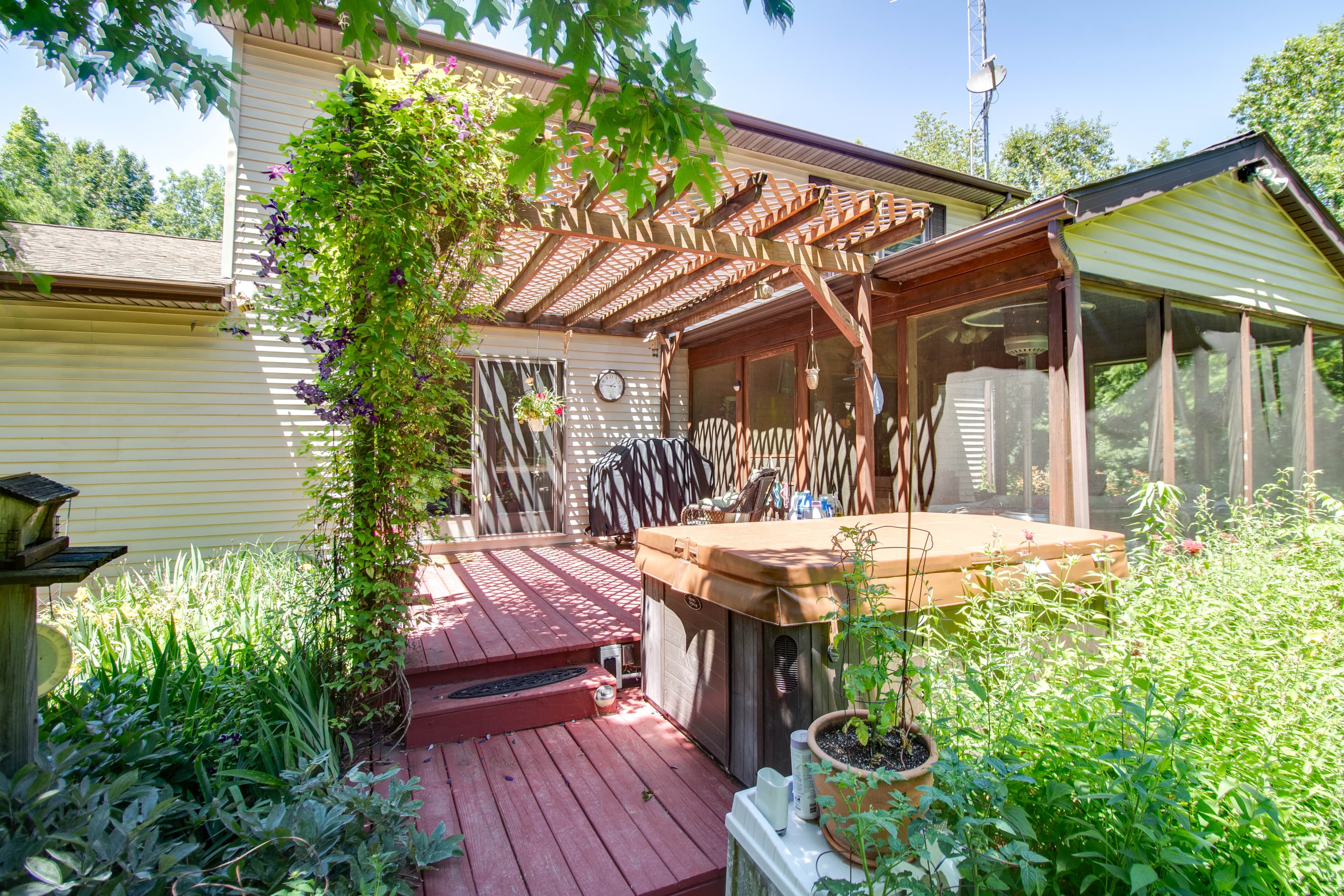 Get your feet on the ground of this 18.52+/- acre property and picture the possibilities. This parcel features a 4 bedroom, 2 and a half bath home, 4-bay, metal, detached workshop space, & a fully stocked pond. The beautiful home features an inviting entryway, and large living room with wood burning fireplace. The living room walks out to screen in covered deck. The breakfast room leads to the well equipped kitchen complete with stainless appliances and pantry. The breakfast room also walks out to pergola covered deck. Convenient main floor laundry/mud room with sink. Spacious upper level primary bedroom with 3/4 bath. The full partially finished, poured concrete lower level boasts a family room, office space, workshop area, and plenty of storage. Gas furnace gas and water heater with an Energy King wood burning furnace as well. The 2 car attached garage measures 20x21. Fully stocked pond with bass and blue gill. Covered front porch. Septic with sand filter. Public water. Call today!
