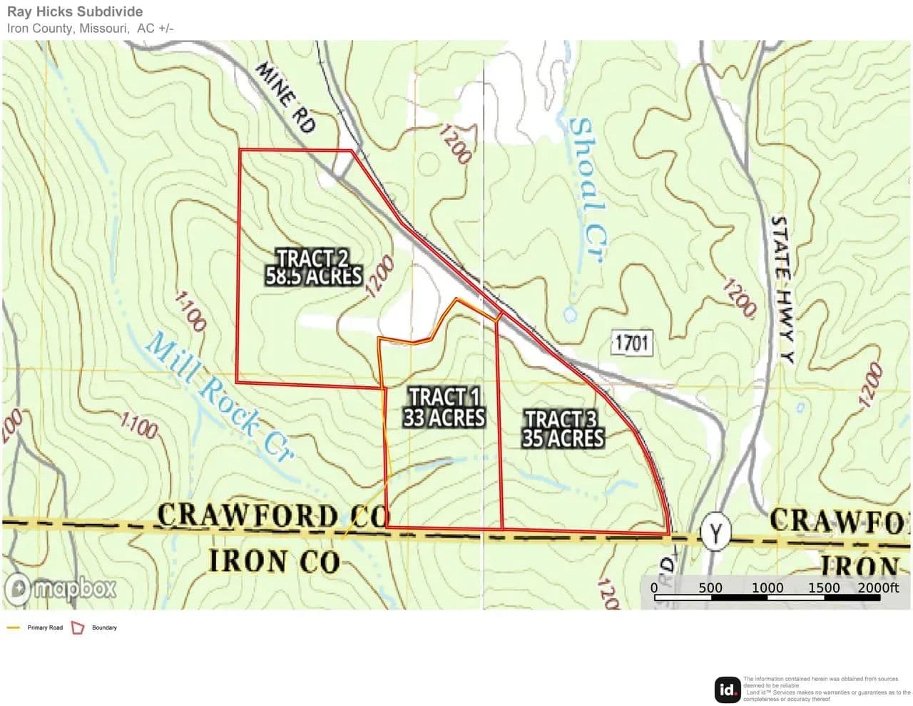 This 58.5ac property offers a unique opportunity for those seeking a tranquil escape or an avid hunter's paradise. The land is divided into 3 parcels, featuring wooded recreational areas & mature timber grounds. Boasting asphalt frontage on Mine Road & located just minutes away from the town of Viburnum, this parcel is an ideal setting for a deer camp or hunting retreat. Imagine waking up to the breathtaking views of surrounding Crawford County, creating a picturesque backdrop for outdoor enthusiasts. The real gem lies in the property's seclusion surrounded by the vast expanse of the Mark Twain National Forest, ensuring a private hideaway. With 58.5 acres of potential hunting grounds, the property is generously stocked with deer and turkey, making it a haven for wildlife enthusiasts. Moreover, the absence of restrictions opens up endless possibilities, whether one envisions a full-time residence or a getaway retreat.
