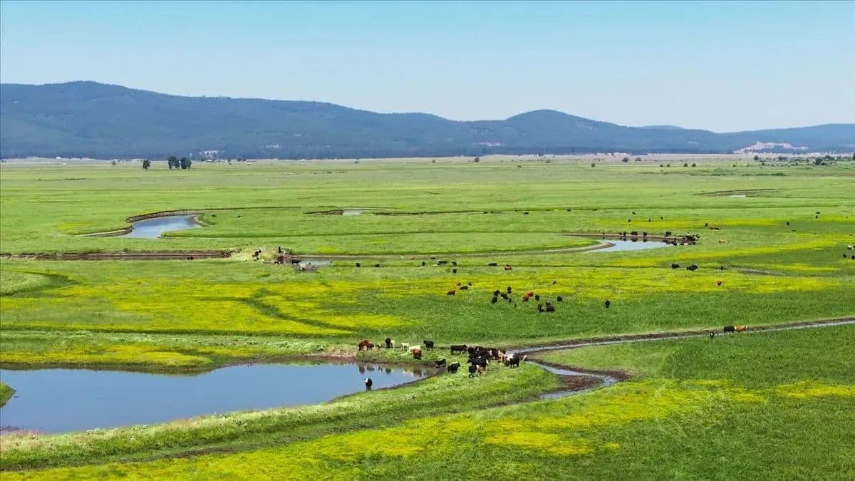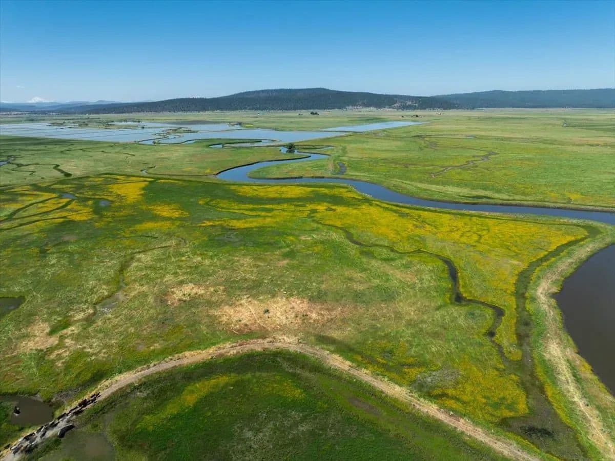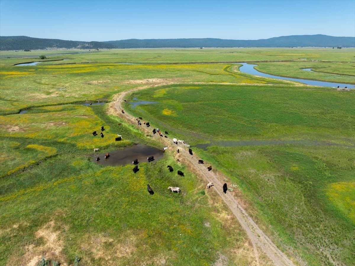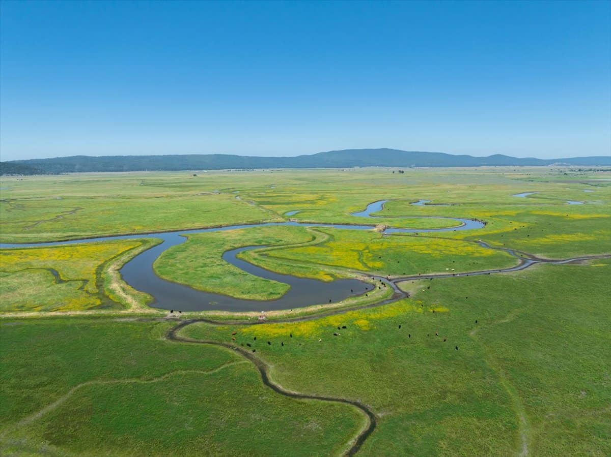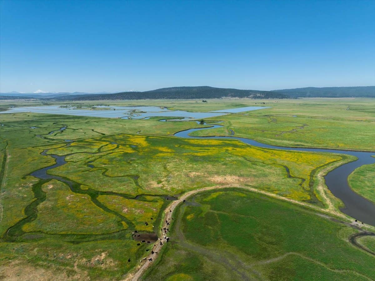 For the cattle rancher, this is a dream come true. 1850 acres of level grazing land, with approximately 1200 acres irrigated. Add a river running through the length of the property for 1.5 miles, two sets of corrals, and cross fencing: you’re looking at a well-set-up operation for around 400 pair and 100 +/- yearlings. That’s not all; the ranch also offers approximately 150 acres of farm ground irrigated with wheel lines. Recreational opportunities are abundant. The ranch qualifies for two landowner tags in the X1 deer zone, and there are several duck blinds along the river, which is perfect for the avid waterfowl hunter. This property has been owned by the same family since the early 1920s and has been used for grazing, hay, and recreation throughout history. What a ranch! APN’S: 001-530-007 160 acres; 001-530-015 320 acres; 001-530-017 160 acres; 001-530-018 640 acres; 001-530-019 320 acres; 001-530-023 90 acres Located in Big Valley near the town of Bieber, at an elevation of 4100 ft. The ranch has two access Roads. Derick Road is directly off HWY 299 just west of Bieber and Punkin Center Road, driving through town and heading South on the right-hand side