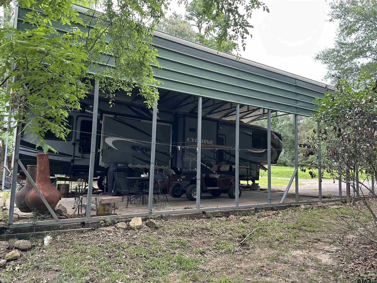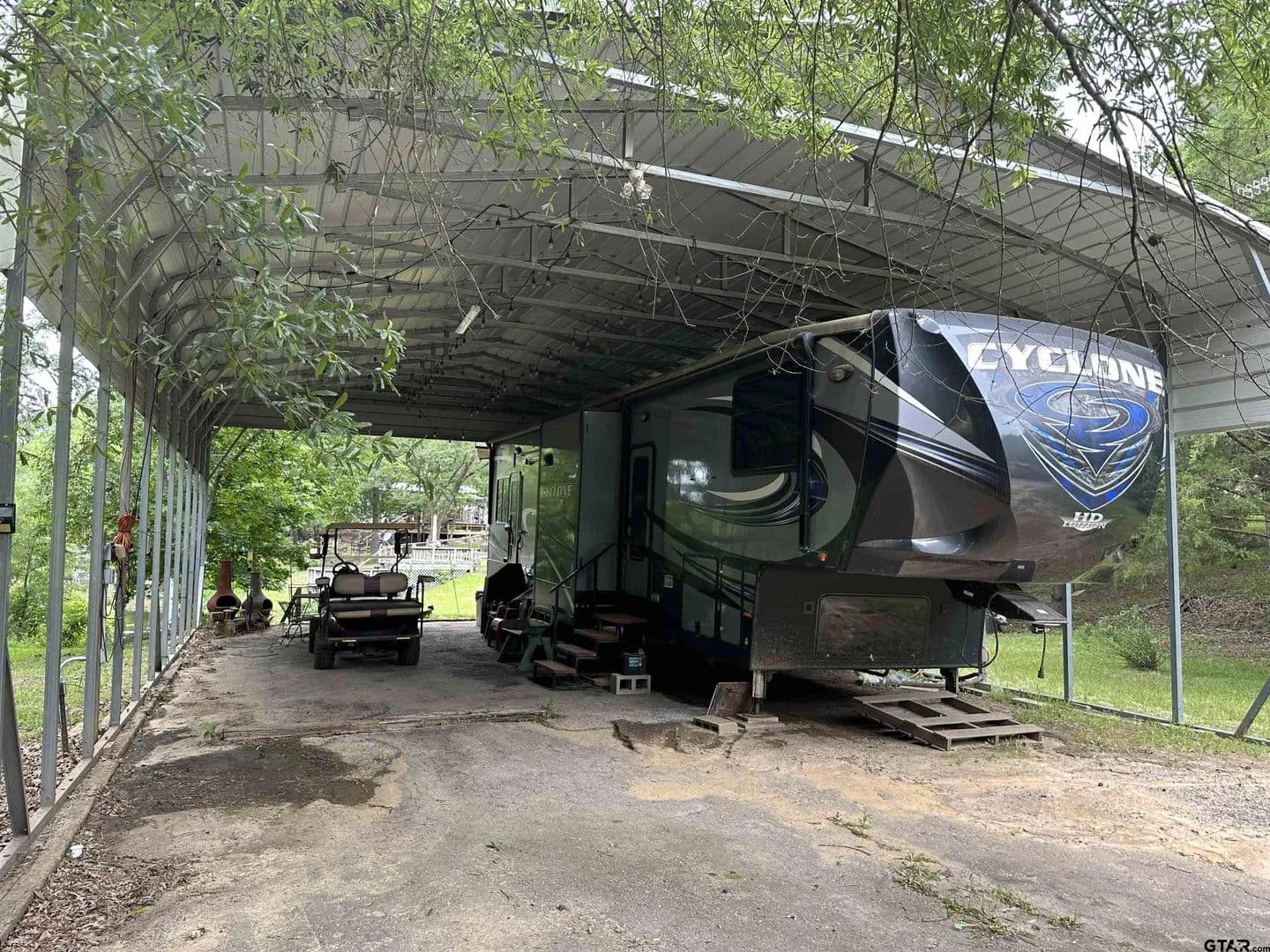This property is 3 lots that back up to a interior bass and catfish pond. This one includes a very nice top of the line 2016 44 FT Cyclone Toy Hauler- set up under cover and ready to go! Trailer is a 2BR, 1 1/2 bath with pleanty of room for the kids and grands, includes internal vacuum, full size fridge, washer/dryer hook ups/ back up generator, 4 TV's , decks that fold down and slide outs. Hidden Village is a one of a kind private gated lake side retreat that provides boat ramp, fishing pier and community pavilion and laundry/shower area. Call me today to view this unique fishing oasis. HOA website : //hiddenvillagepoa.sites.townsq.