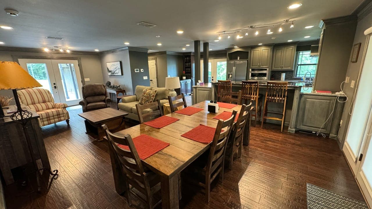 Behind an electric gate, lies the beautiful 3384 sq ft home sitting lakefront on the renowned Moores Lake. This is a 120 acre managed trophy fishing lake. The current owners wife landed a 10.26 pound bass this past year. Did I mention Crappie? Moores Lake is full of those as well! The home has 4 bedrooms and 2.5 custom bathrooms. The kitchen is all granite with high end appliances. A 10x10 fully concrete safe room is a great addition to ease your mind in case of bad storms. A nice wood burning fireplace with propane makes for a cozy place to warm your bones after a successful hunting or fishing trip. Wifi is available to accomodate any business or TV streaming that may be needed. There is also a nice 18x26 heated and cooled shop to store your things or work on a hobby of choice. I can go on and on, but this is truly a need to see impressive home.