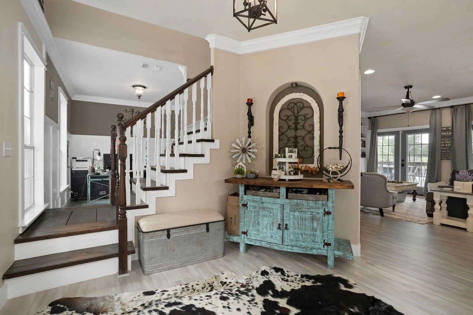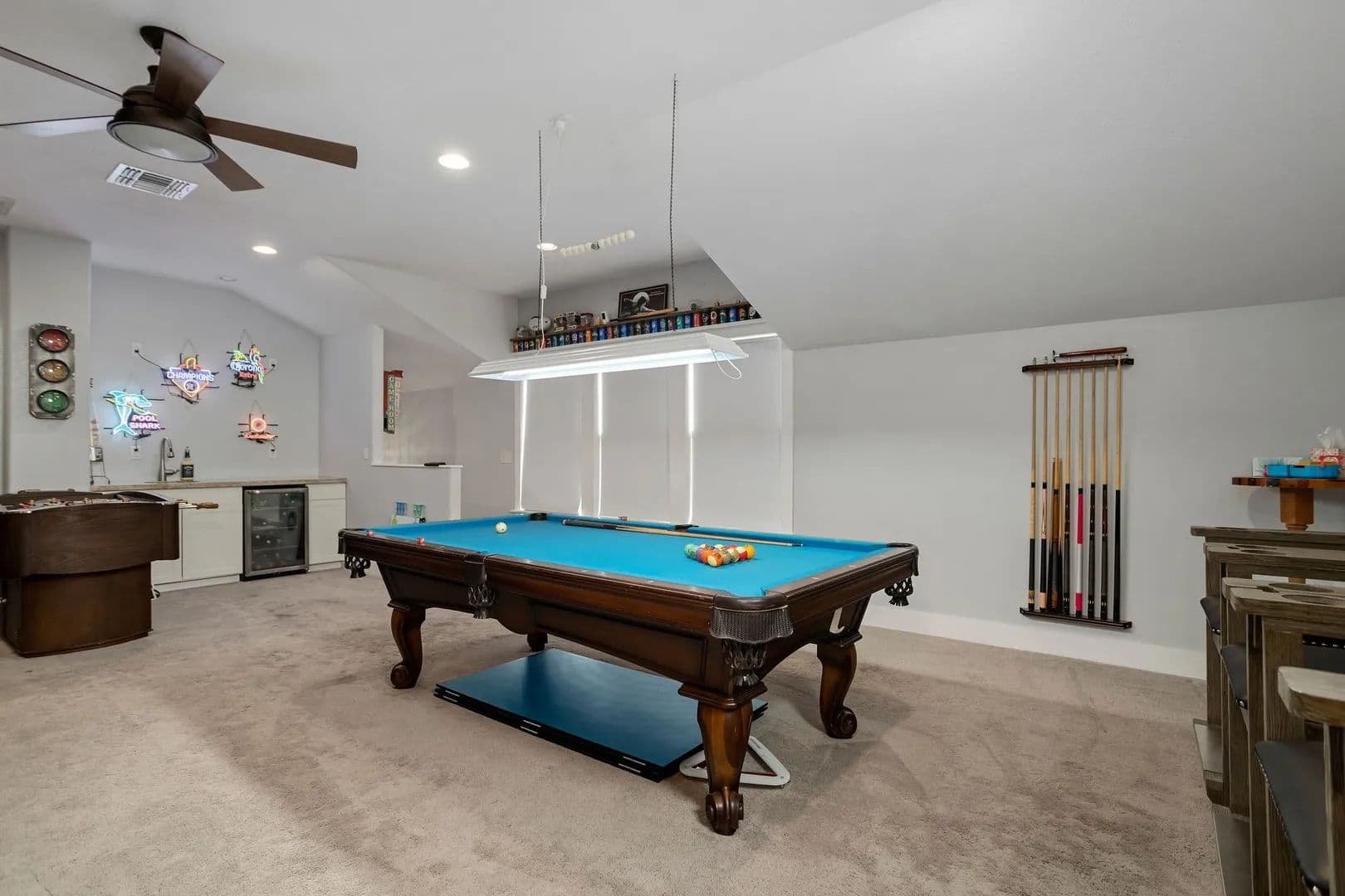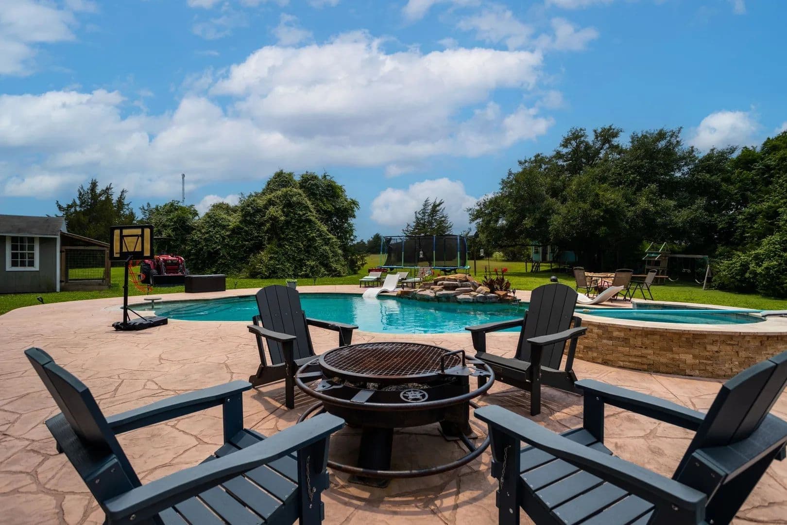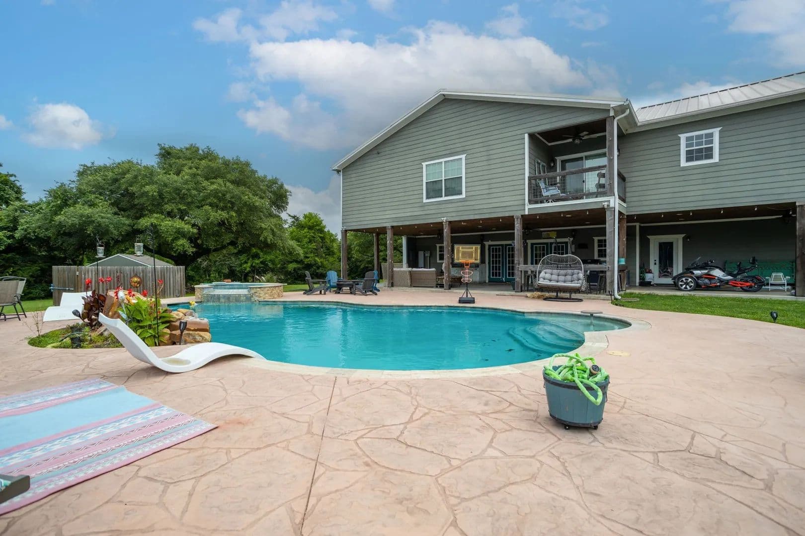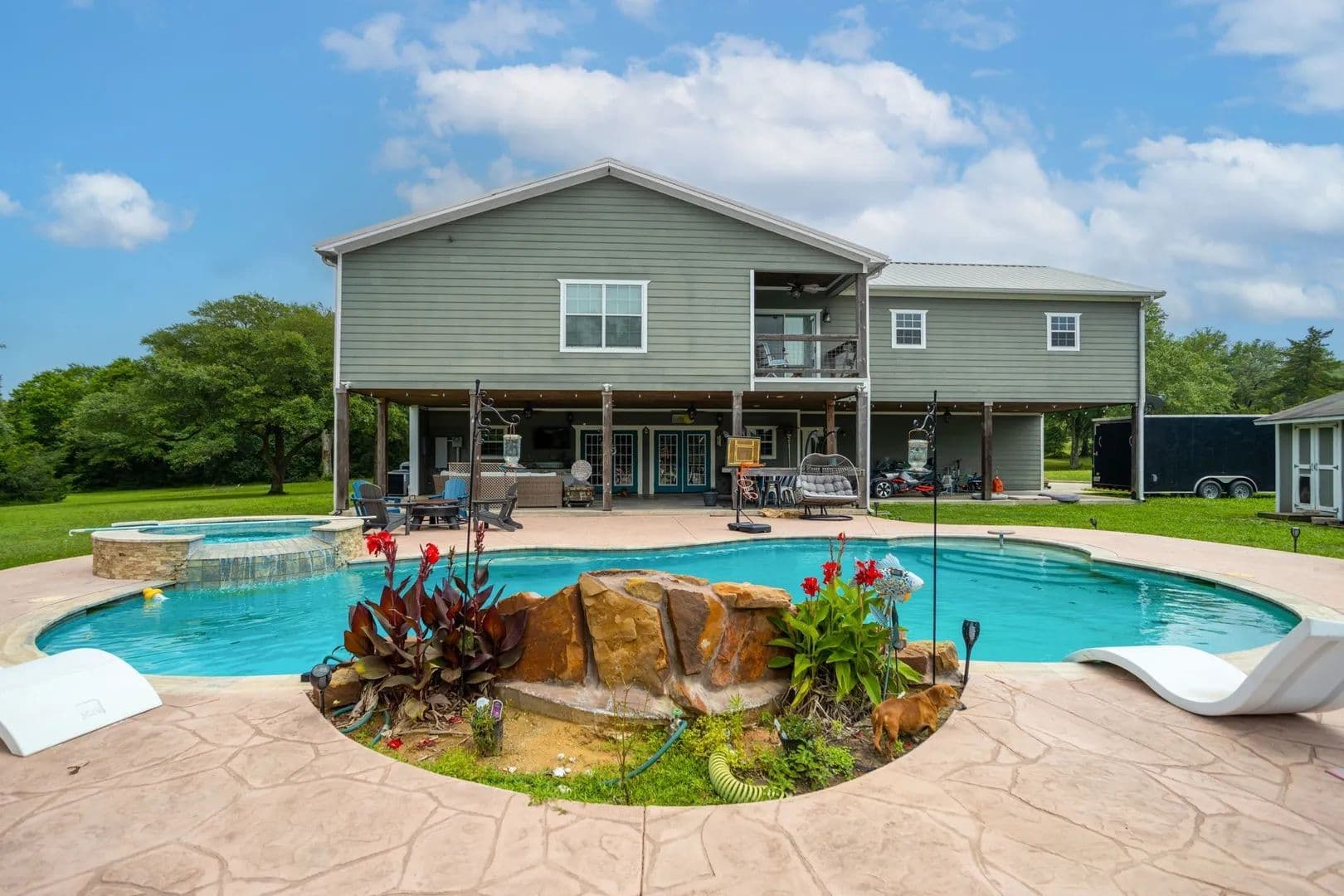 This grand home has so much to offer you will never want to leave! Situated just minutes outside of town this home boasts over 4400sf featuring 4 br, 4.5 ba, game room, theater and swimming pool! Upon entry you are greeted with a formal dining room and beautiful wooden stairwell w/ lots of natural light. Beautiful kitchen opens up to the family room featuring granite countertops, island and ample storage space. Double staircases (one at entry and one near laundry room) leading up and this is where the fun begins! Bonus room featuring wet bar and full bathroom. This is a huge open area that would make a perfect craft room, home schooling room, man cave or home gym! The next room, you will enter will be your very own home theater! (Theater set up may be purchased.) Primary bedroom w/ private patio overlooking the pool. Primary bathroom w/double sinks, soaking tub, walk-in shower and his and hers closets. Outback you can unwind from the day with your own private pool and hot tub.