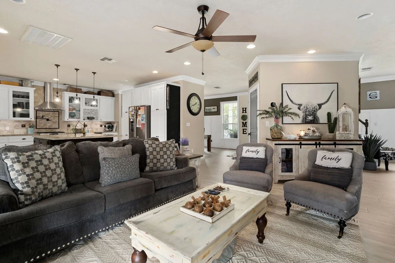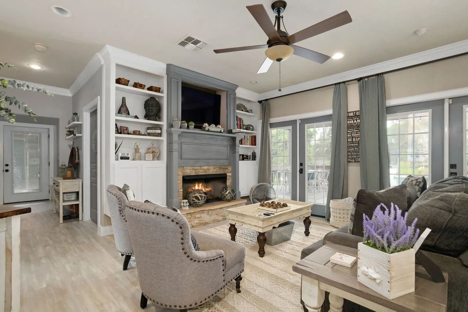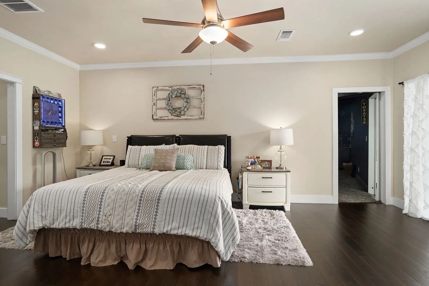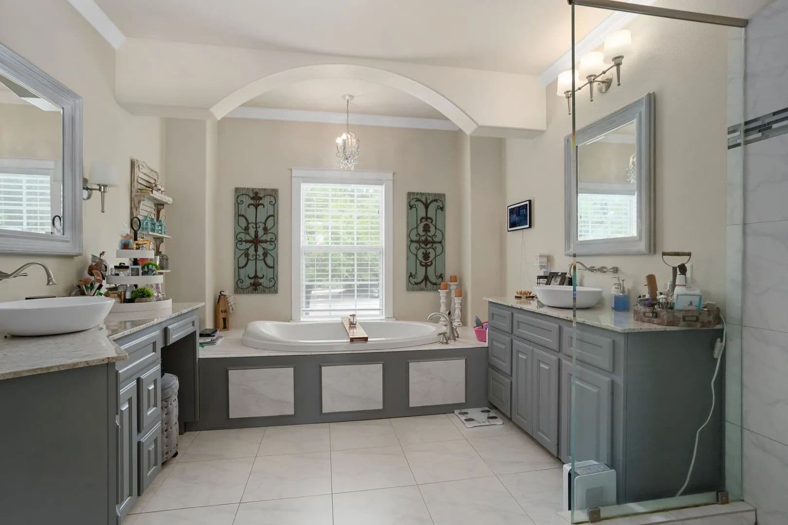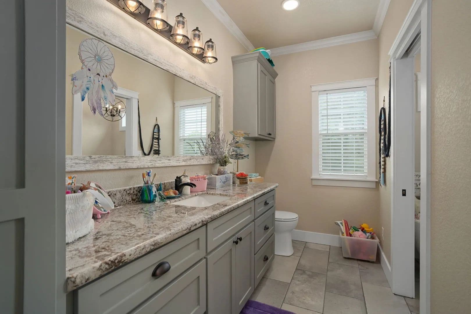 This grand home has so much to offer you will never want to leave! Situated just minutes outside of town this home boasts over 4400sf featuring 4 br, 4.5 ba, game room, theater and swimming pool! Upon entry you are greeted with a formal dining room and beautiful wooden stairwell w/ lots of natural light. Beautiful kitchen opens up to the family room featuring granite countertops, island and ample storage space. Double staircases (one at entry and one near laundry room) leading up and this is where the fun begins! Bonus room featuring wet bar and full bathroom. This is a huge open area that would make a perfect craft room, home schooling room, man cave or home gym! The next room, you will enter will be your very own home theater! (Theater set up may be purchased.) Primary bedroom w/ private patio overlooking the pool. Primary bathroom w/double sinks, soaking tub, walk-in shower and his and hers closets. Outback you can unwind from the day with your own private pool and hot tub.