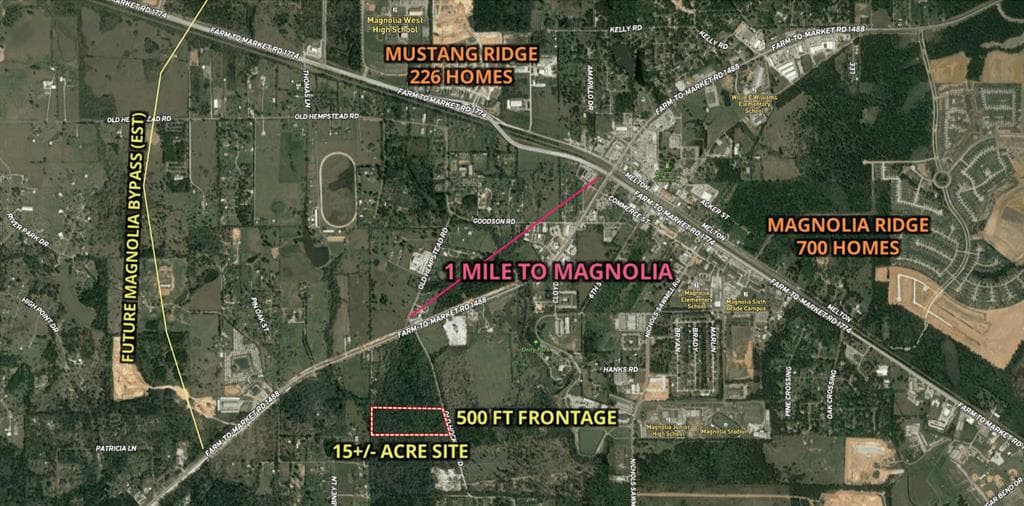 FULLY CLEARED 15+ Acres with 500' of road frontage on Old Hockley road. Located one mile from Magnolia with easy quick access to FM 1488, which is now under construction for widening to be completed soon. New survey and Topo upon request. Light civil engineering site work completed.