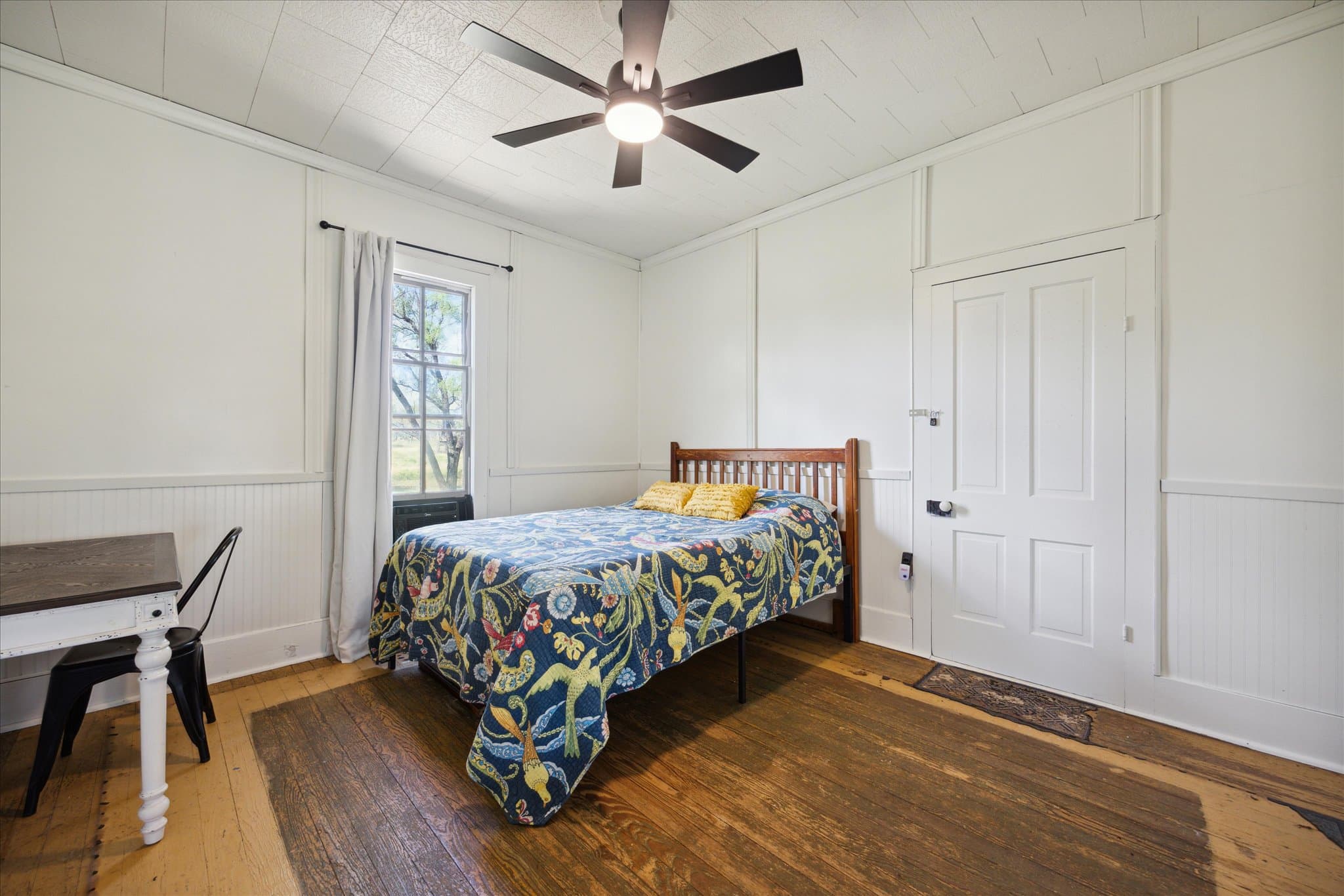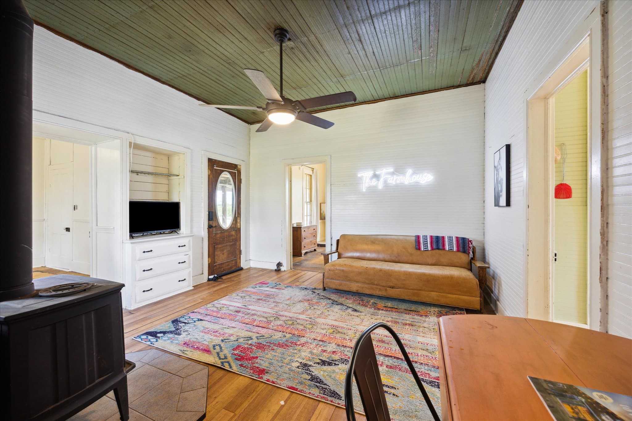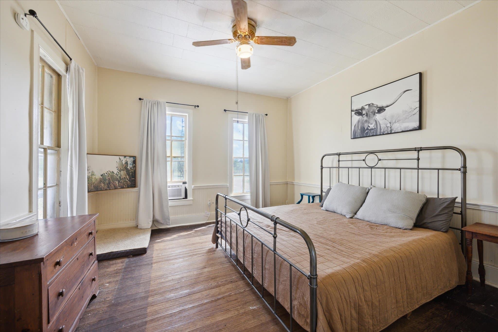 Welcome to Bee Creek Rd in Mason, Texas(formally 3518 Old Pototoc)! This charming property offers a 3-bedroom, 1-bathroom farmhouse spanning 1375 sq ft. Situated on a sprawling 32+/- acres of picturesque land, this property is a true gem. The farmhouse boasts modern amenities and conveniences while retaining its classic appeal. The property also features two fully furnished container homes that are currently utilized as Airbnb rentals, providing additional income opportunities or guest accommodations. Just minutes away from the city limits of Mason, this location offers both tranquility and convenience. The land itself is a nature lover's paradise, with gently rolling terrain showcasing deep sandy loam soils. The landscape is adorned with majestic post oak trees, mesquite, and brush, 4 Aberdeen cows, 3 female and 1 bull, and a donkey which convey with the property giving you the true farm feel. A small pond and creek runoff traverse the property, enhancing its natural beauty and providing potential recreational opportunities. The property benefits from an impressive 80-gallon per minute main well (as per log) ensuring ample water supply for various needs. For added peace of mind, a two-room below-ground concrete bunker is also present on the property, serving as a potential storm shelter or secure storage space. The perimeter of the property is fenced, offering security and privacy to its residents. Don't miss this incredible opportunity to own a piece of Texas Hill Country paradise . Strong well pressure measured at 80 gpm.