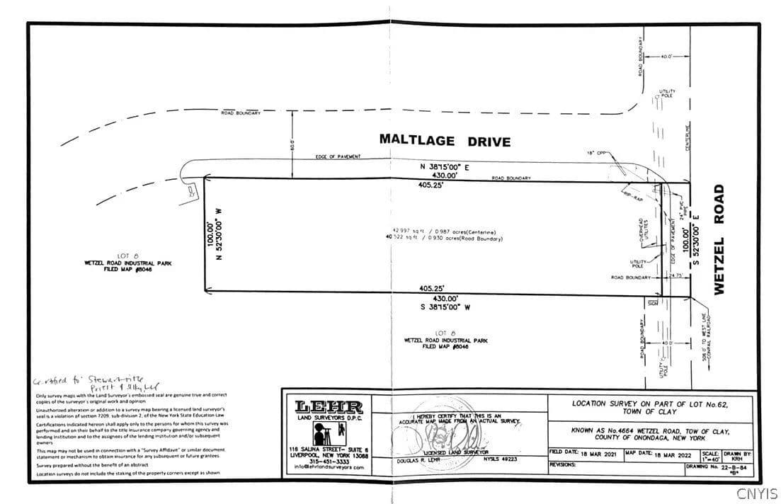 Nestled at the intersection of Wetzel Road and Maltage Road, this expansive industrial vacant lot spans just under 1 acre of prime real estate. With dimensions of 100 feet of frontage on Wetzel Road and extending back 400 feet along Maltage Road, the lot offers ample space for various industrial or commercial developments. The property is well-equipped with essential utilities, making it highly suitable for immediate development. It boasts access to municipal water and sewer lines, electric power, natural gas supply, and high-speed internet. The surrounding area is characterized by a mix of industrial and commercial establishments, contributing to a vibrant business environment. The lot's strategic location provides easy accessibility for transportation and logistics, enhancing its appeal for manufacturing, warehousing, or distribution operations. Overall, this industrial vacant lot presents a lucrative opportunity for investors or businesses with its combination of size, utilities, and accessibility makes it a compelling choice for a range of industrial and commercial endeavors.