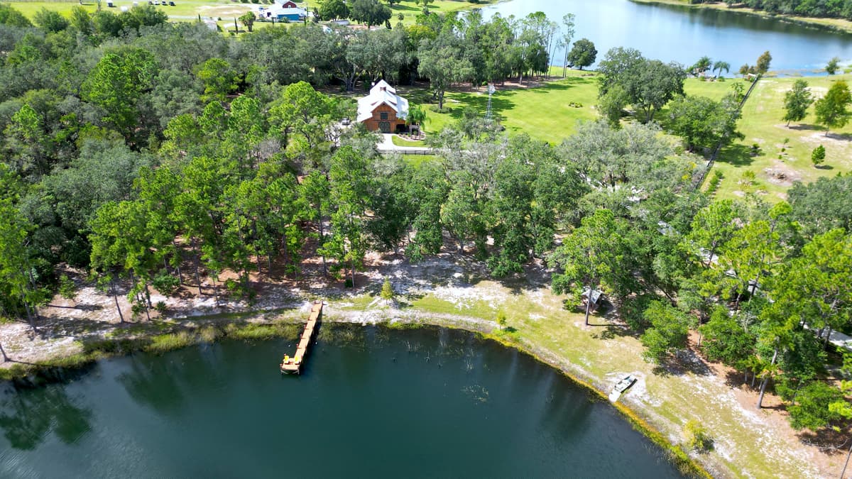 Real Country, city close, if you're a classic car enthusiast, a second home buyer, or seeking a stunning waterfront building site to realize your dream home, this property is perfect for you. Situated just outside "The Villages," this site offers 19+ acres of private family retreat with access to 2 crystal clear lakes. The property boasts an entertainment barn/classic car storage with 3,500+/- SF that can accommodate seating for 50 people. The barn also includes a loft apartment and bunk room. Additionally, there's a 26' x 50' utility barn, 2 private docks, a gazebo, a lakefront firepit, a clatter bridge, a windmill, and fencing with all utilities already on-site for your new home. Horses are welcome! The property has been meticulously improved and maintained by its current owner and is in impeccable condition. Countless features make this property exceptional. Don't miss the opportunity to start living your dream of a country waterfront lifestyle. Less than 3 miles to the Fire Safety Station and the Auto Museum.